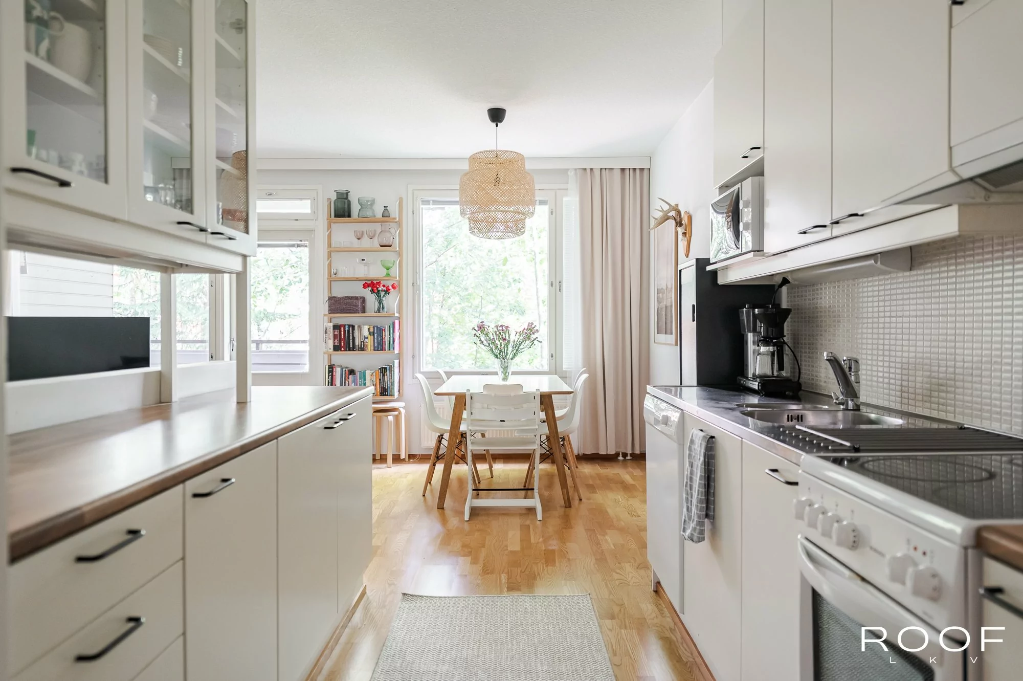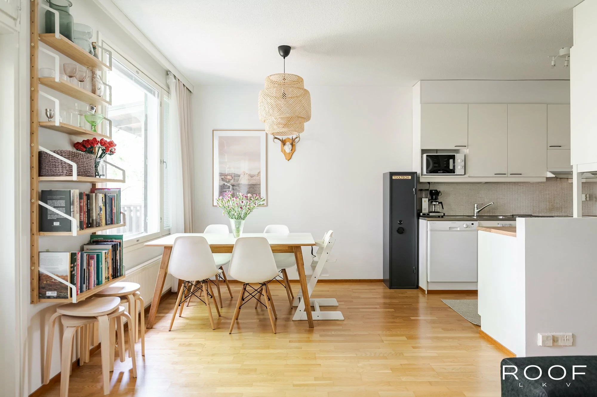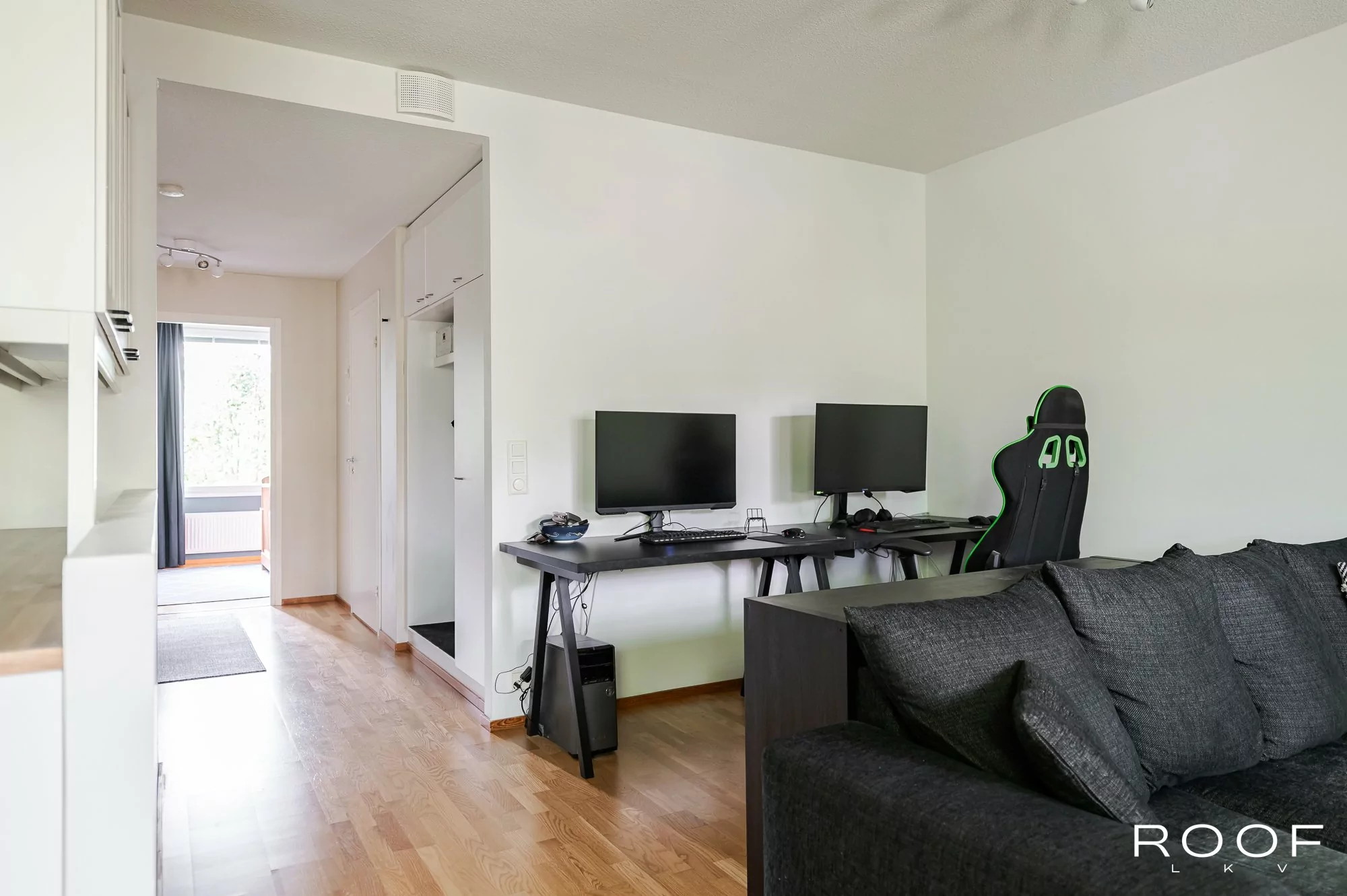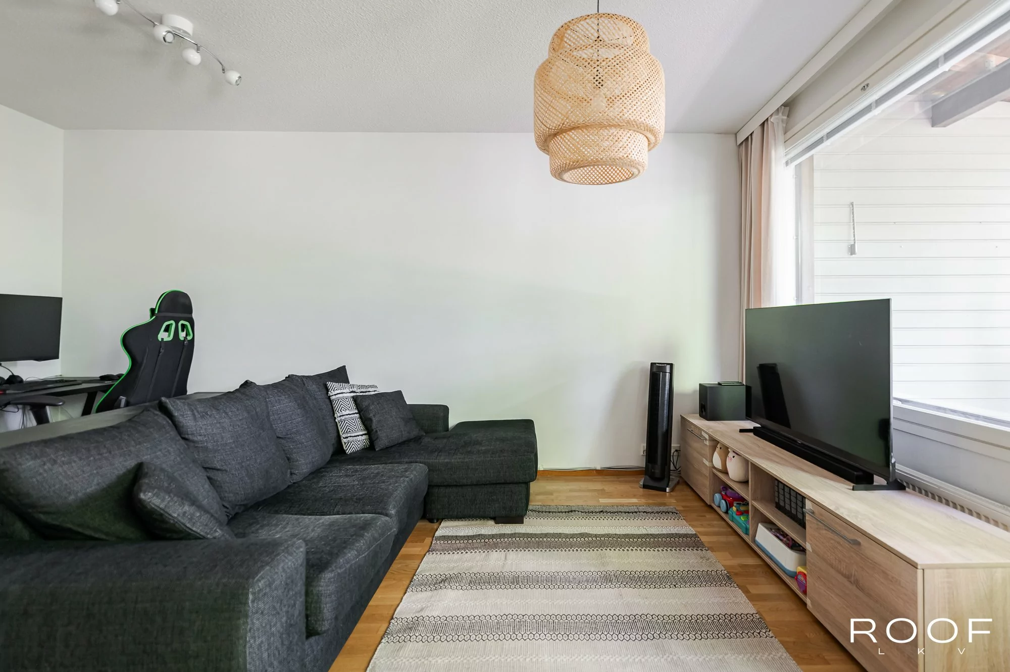 Asuntoon sisään tultaessa huomio kiinnittyy avoimeen ja tilavaan keittiö/olohuone yhdistelmään. Olohuoneesta ja parvekkeelta on kauniit vehreät maisemat. Kodissa on myös iso makuuhuone, toimiva kylpyhuone ja ikioma sauna.