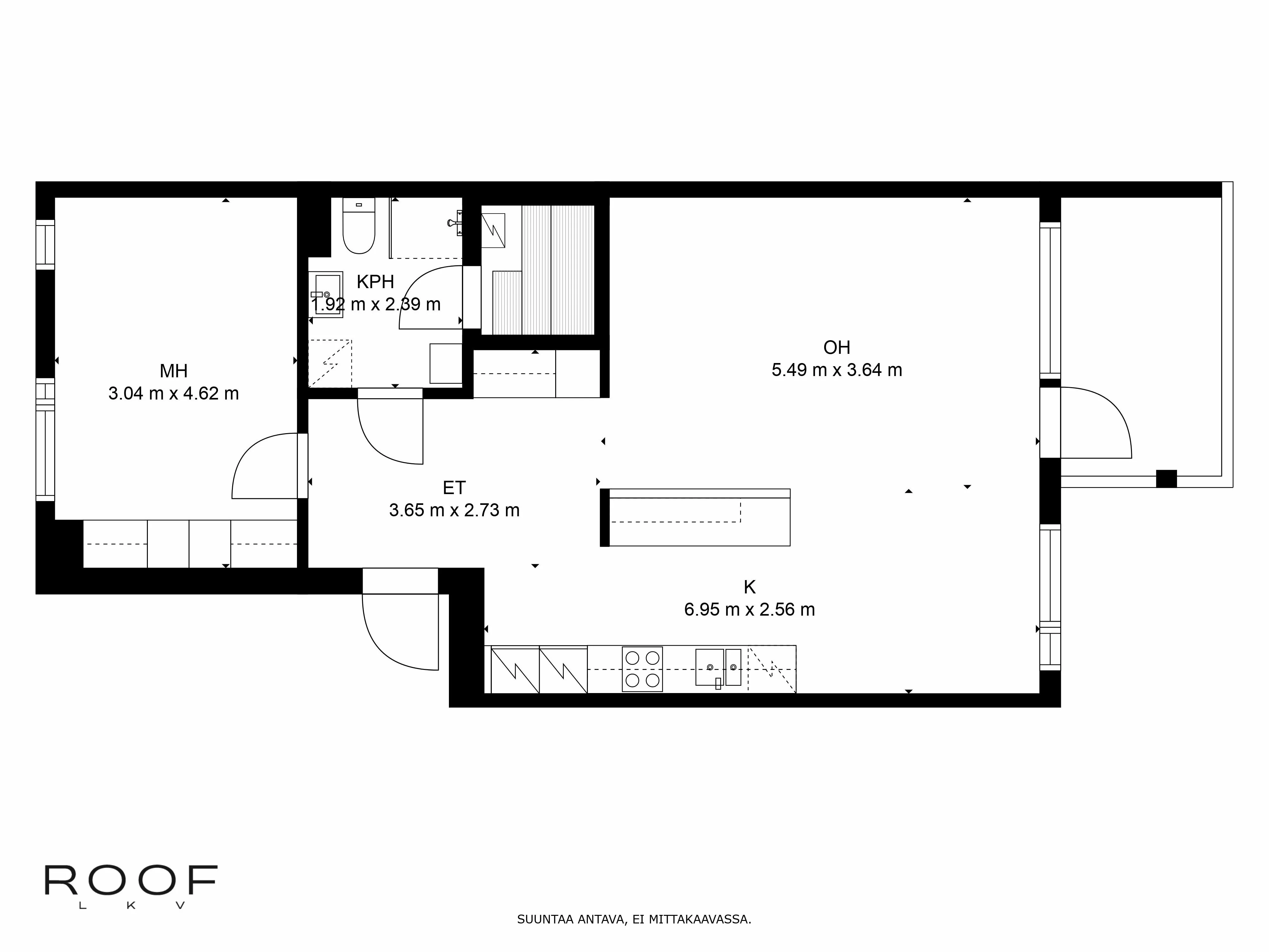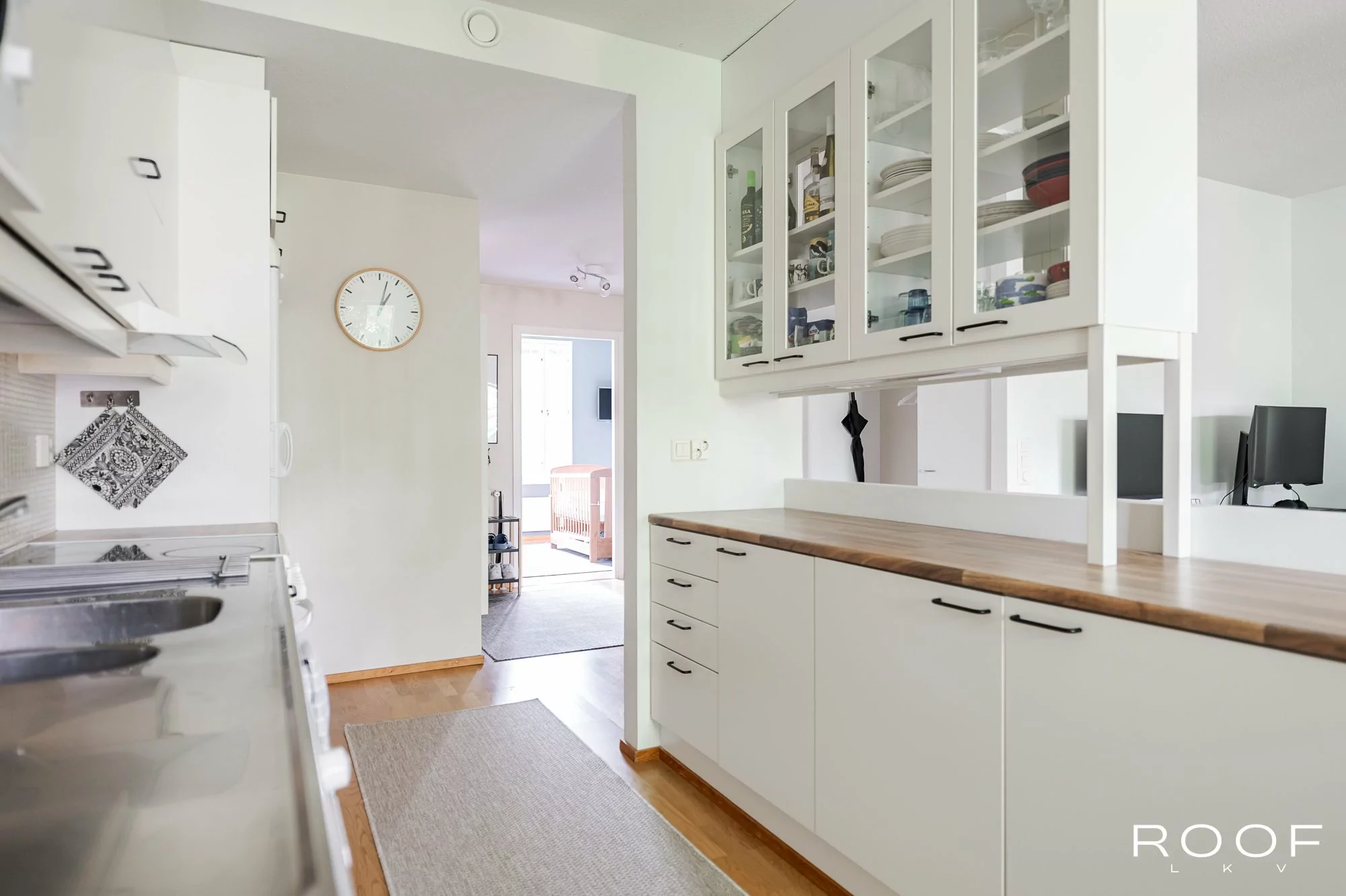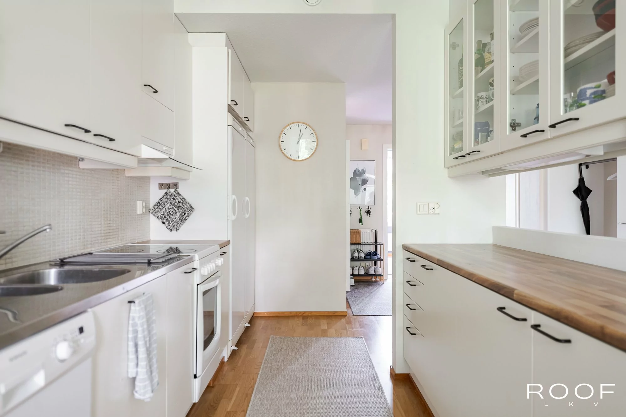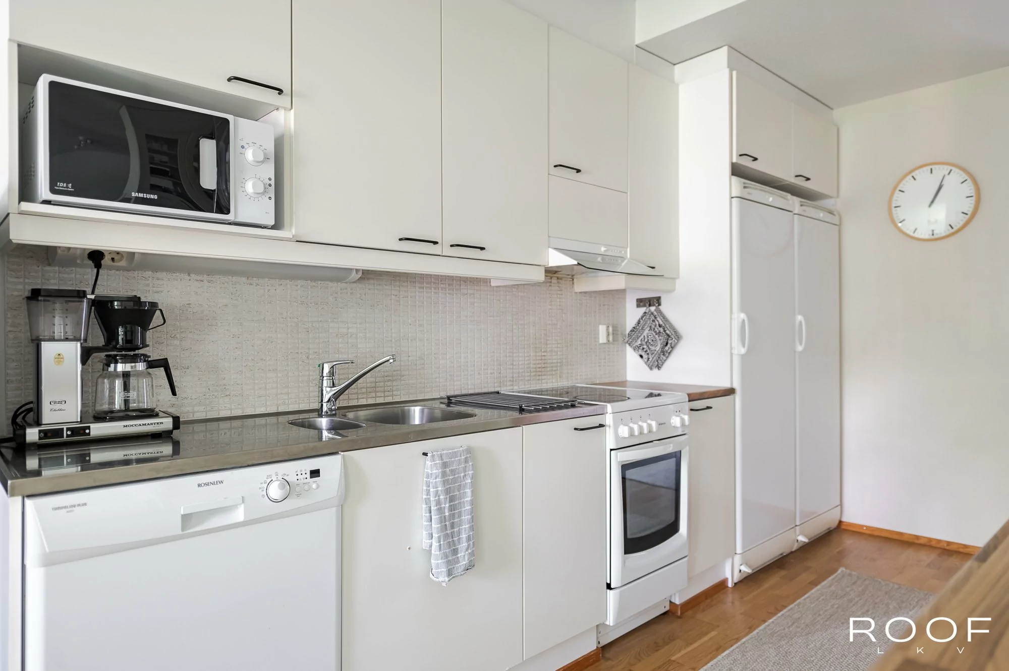 Asuntoon sisään tultaessa huomio kiinnittyy avoimeen ja tilavaan keittiö/olohuone yhdistelmään. Olohuoneesta ja parvekkeelta on kauniit vehreät maisemat. Kodissa on myös iso makuuhuone, toimiva kylpyhuone ja ikioma sauna.