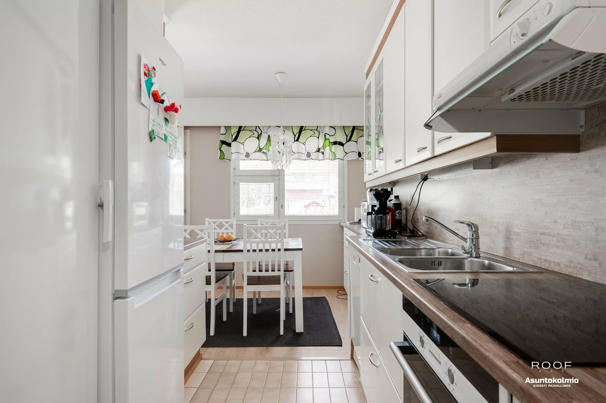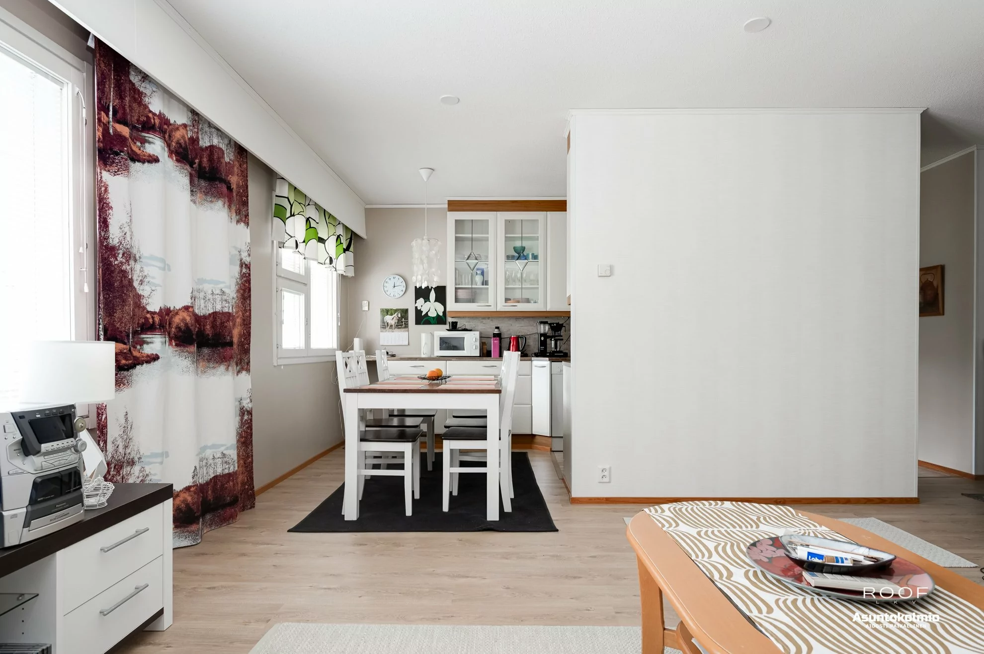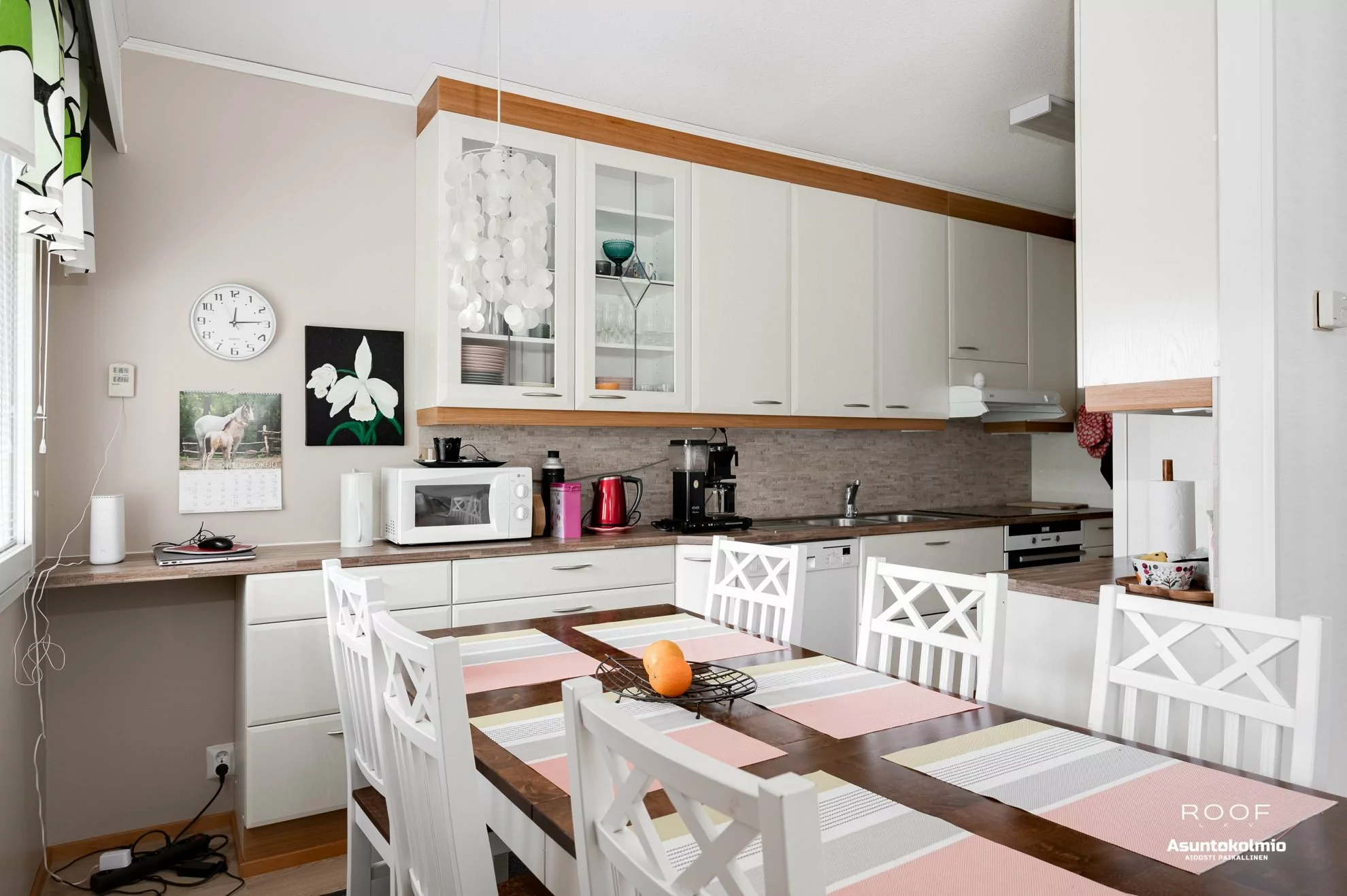 Tämä valoisa ja avara rivitalokoti Oulun Iinatin rauhallisella asuinalueella tarjoaa mukavaa asumista luonnon läheisyydessä. Vuonna 1988 valmistunut asunto on hyväkuntoinen ja sen 61 neliötä on suunniteltu tehokkaasti. Kodin sydän on vuonna 2011 remontoitu keittiö, jossa on modernit kodinkoneet ja tyylikäs laminaattityötaso. Keittiö ja olohuone ovat valoisaa ja lähes yhtenäistä tilaa. Olohuoneen suuret ikkunat tuovat runsaasti luonnonvaloa sisään, luoden viihtyisän tunnelman. Olohuoneesta on myös kulku suurelle takapihan terassille. Kodin vaaleat lattiapinnat on uusittu vuonna 2022. Asu...