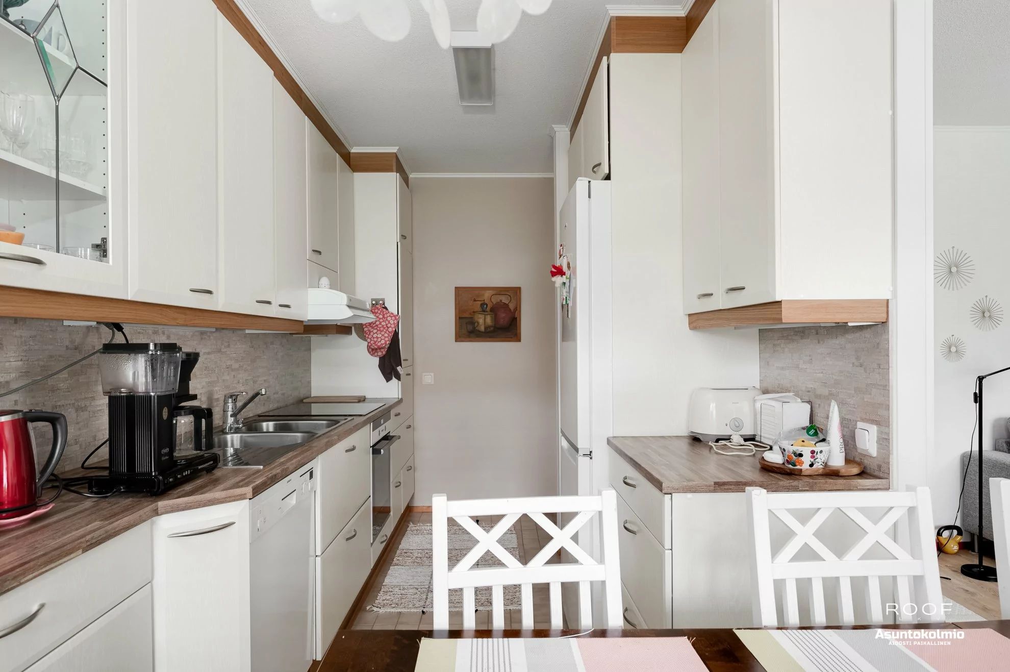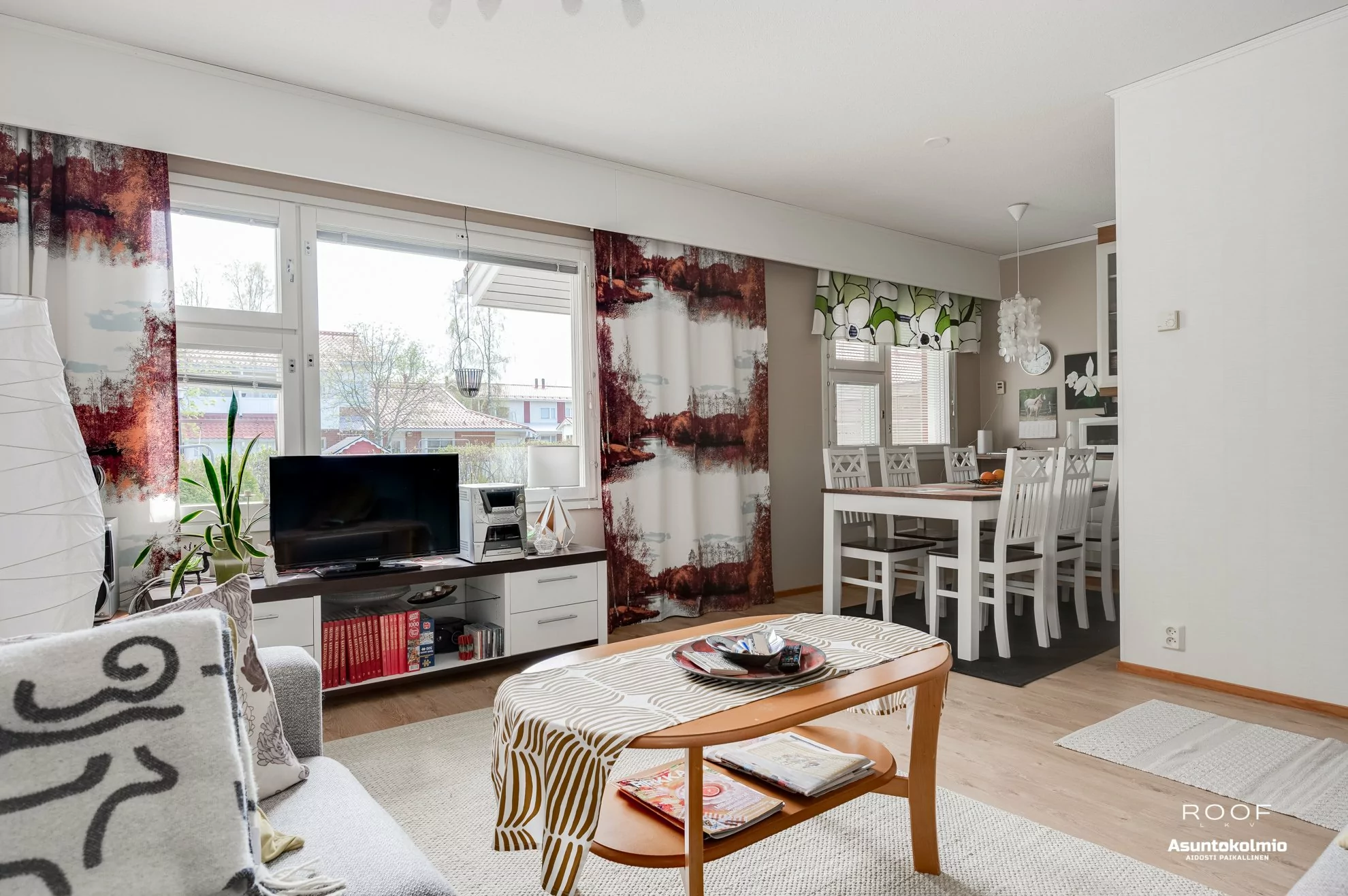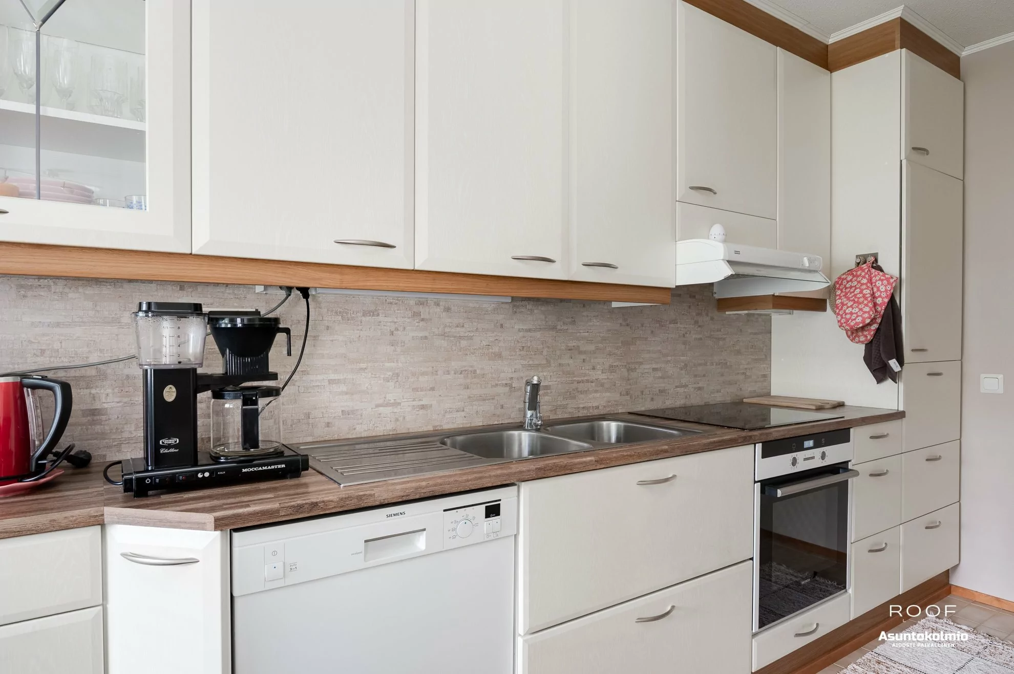 Tämä valoisa ja avara rivitalokoti Oulun Iinatin rauhallisella asuinalueella tarjoaa mukavaa asumista luonnon läheisyydessä. Vuonna 1988 valmistunut asunto on hyväkuntoinen ja sen 61 neliötä on suunniteltu tehokkaasti. Kodin sydän on vuonna 2011 remontoitu keittiö, jossa on modernit kodinkoneet ja tyylikäs laminaattityötaso. Keittiö ja olohuone ovat valoisaa ja lähes yhtenäistä tilaa. Olohuoneen suuret ikkunat tuovat runsaasti luonnonvaloa sisään, luoden viihtyisän tunnelman. Olohuoneesta on myös kulku suurelle takapihan terassille. Kodin vaaleat lattiapinnat on uusittu vuonna 2022. Asu...