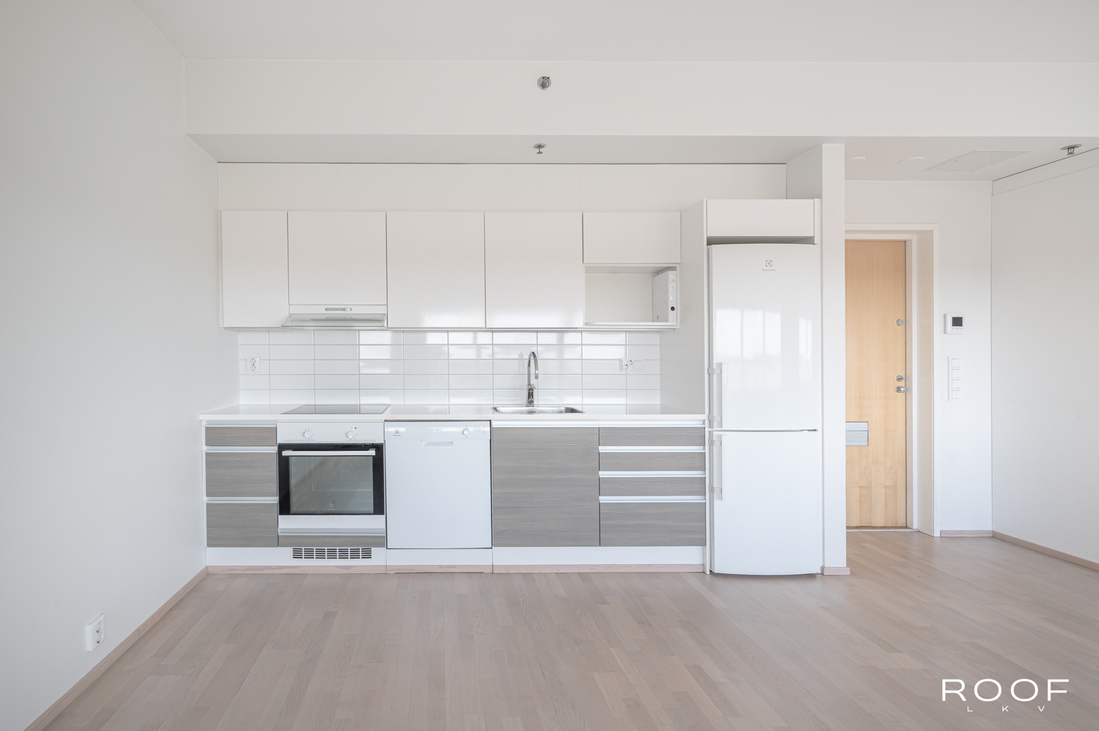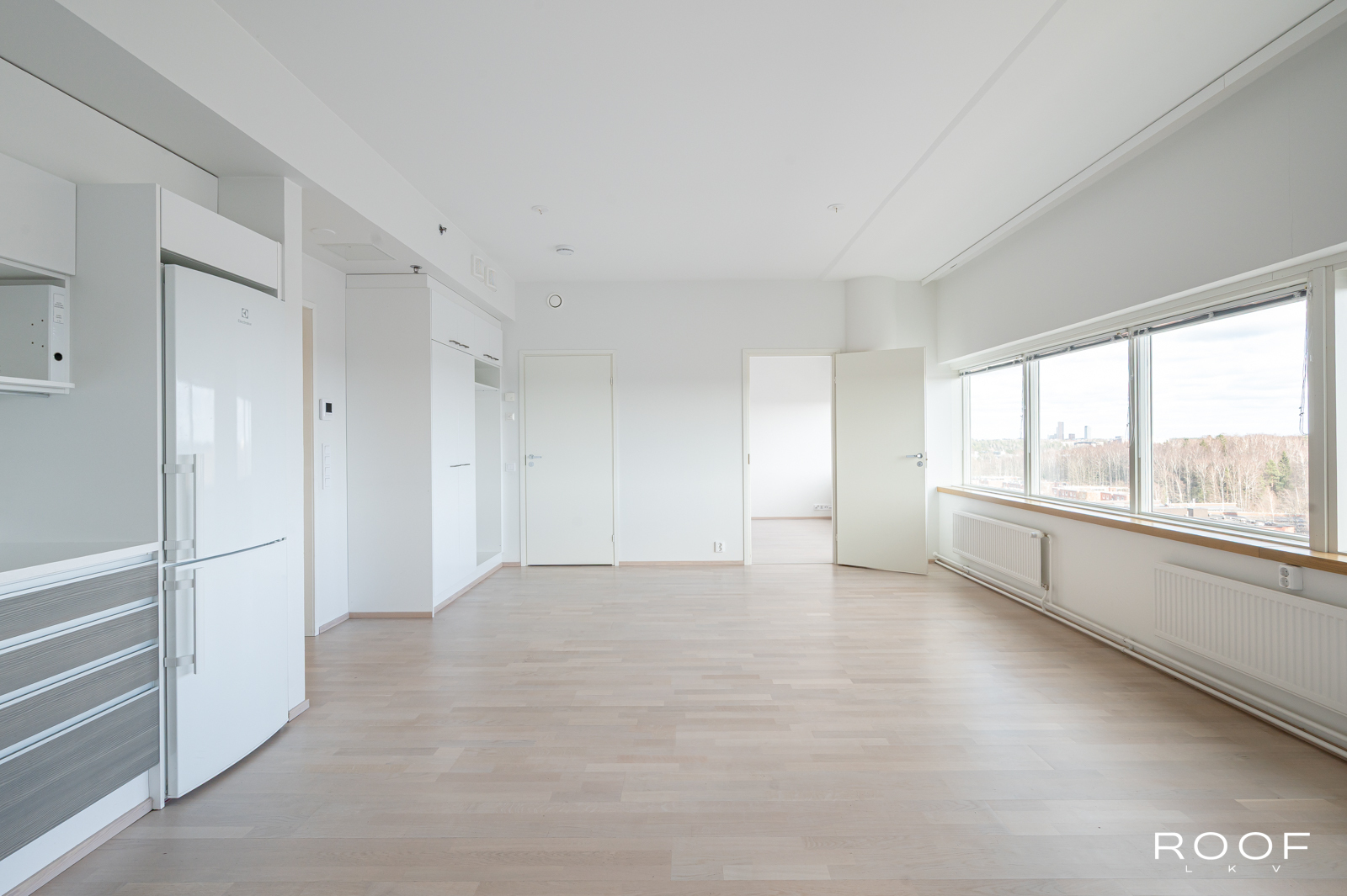 Tilava kaksio koko olohuoneen levyisillä ikkunoilla! Upeat maisemat 11. kerroksesta!
