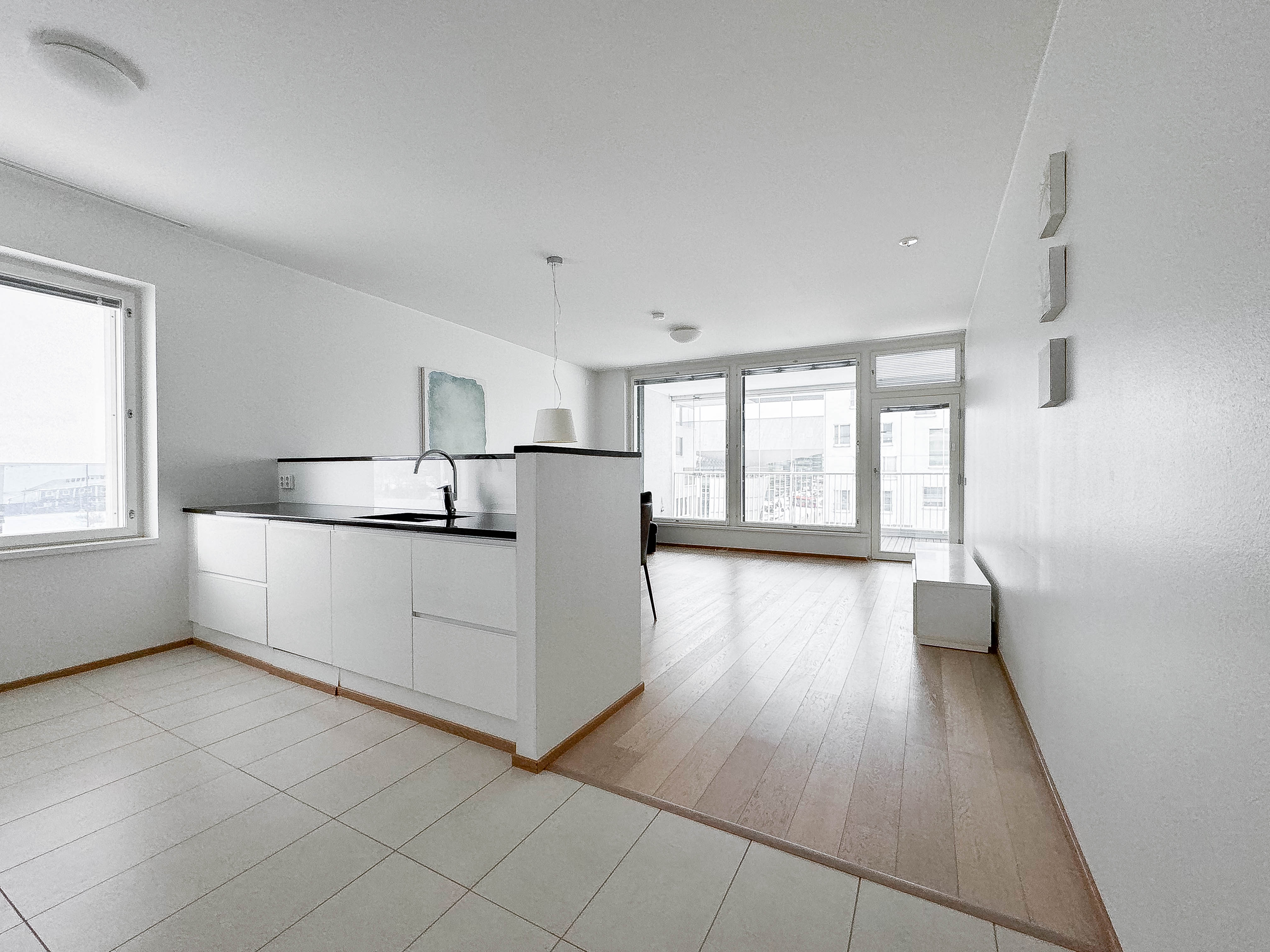 Tässä kaksiossa on erittäin toimiva pohjaratkaisu. Asunnosta löytyy makuuhuone, olohuone, pesuhuone ja avoikeittiö, jossa on hyvin lasku-ja kaappitilaa. Parveke on suunnattu lähikaupalle, joka on Prisma.