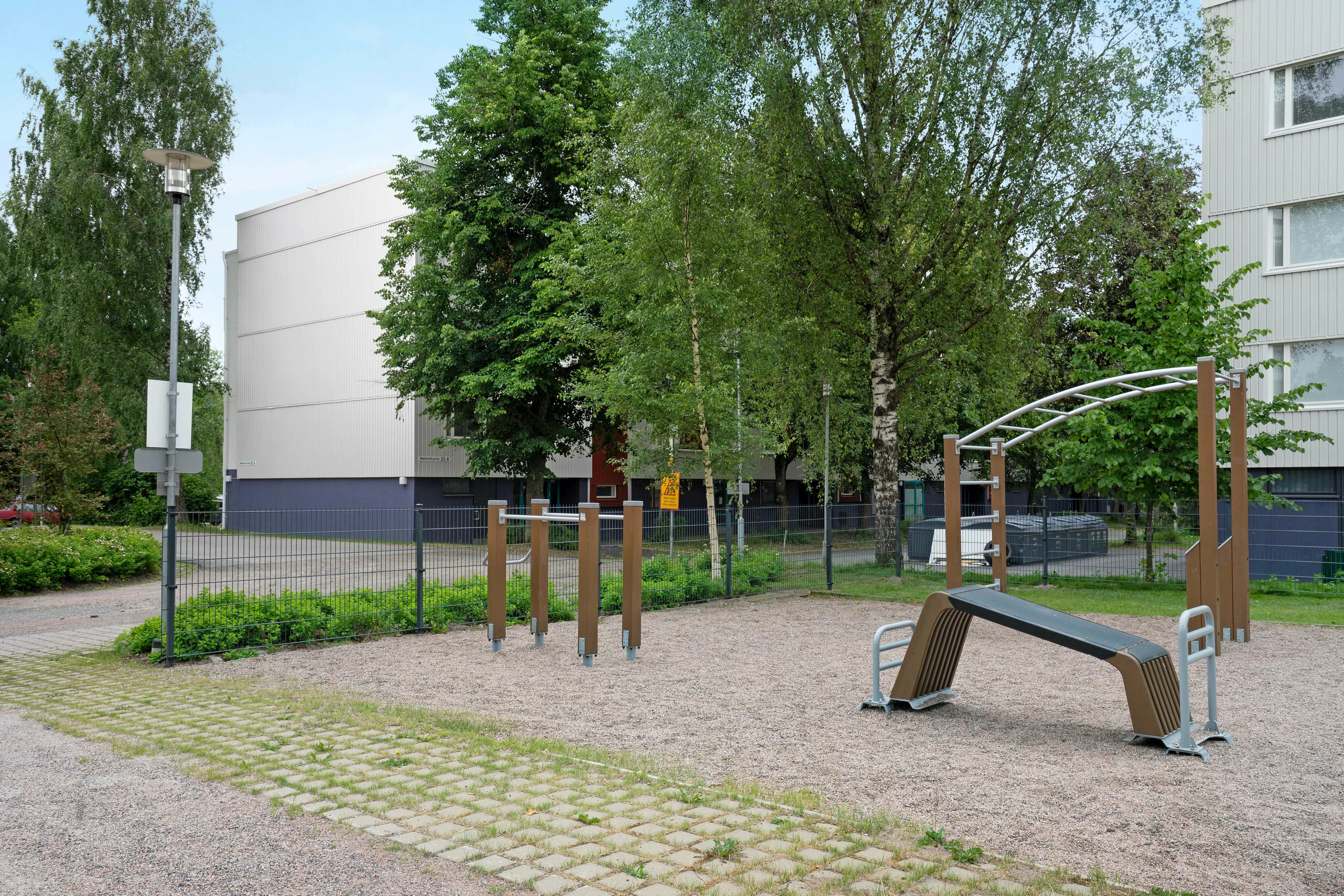 Ulkoilumahdollisuudet alueella ovat erinomaiset. Lähistöltä löytyy frisbeegolfradan ja puiston lisäksi pururata, jonne talvella ajetaan erinomaiset hiihtoladut. Lähimmälle bussipysäkille matkaa on n. 450m päässä ja Leinelän juna-asemalle on matkaa n. 1km.