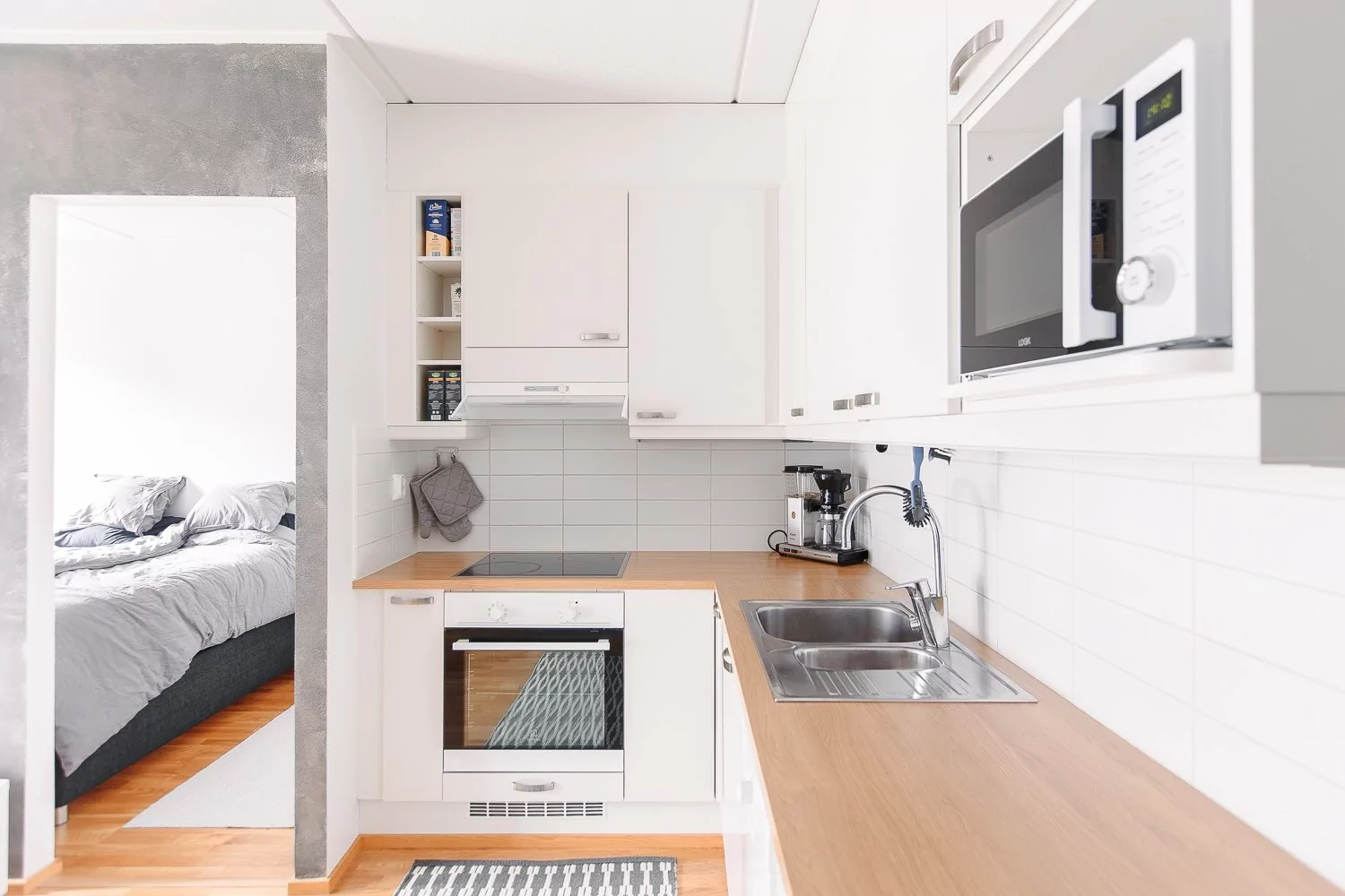 Asunnossa on kylpyhuone, avokeittiö, olohuone, lasitettu parveke ja makuuhuone. Makuuhuoneen yhteydessä on vaatehuone, joka tuo lisää säilytystila...