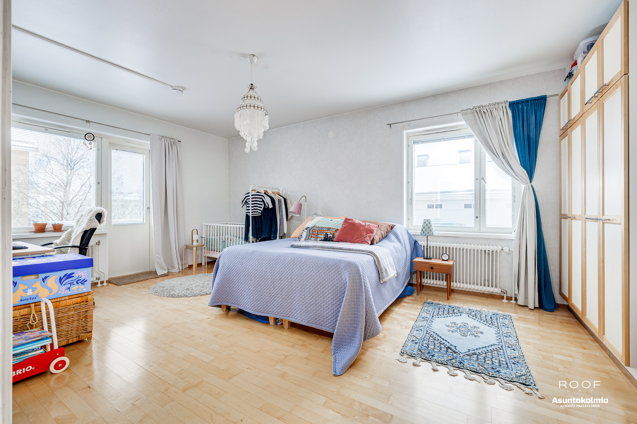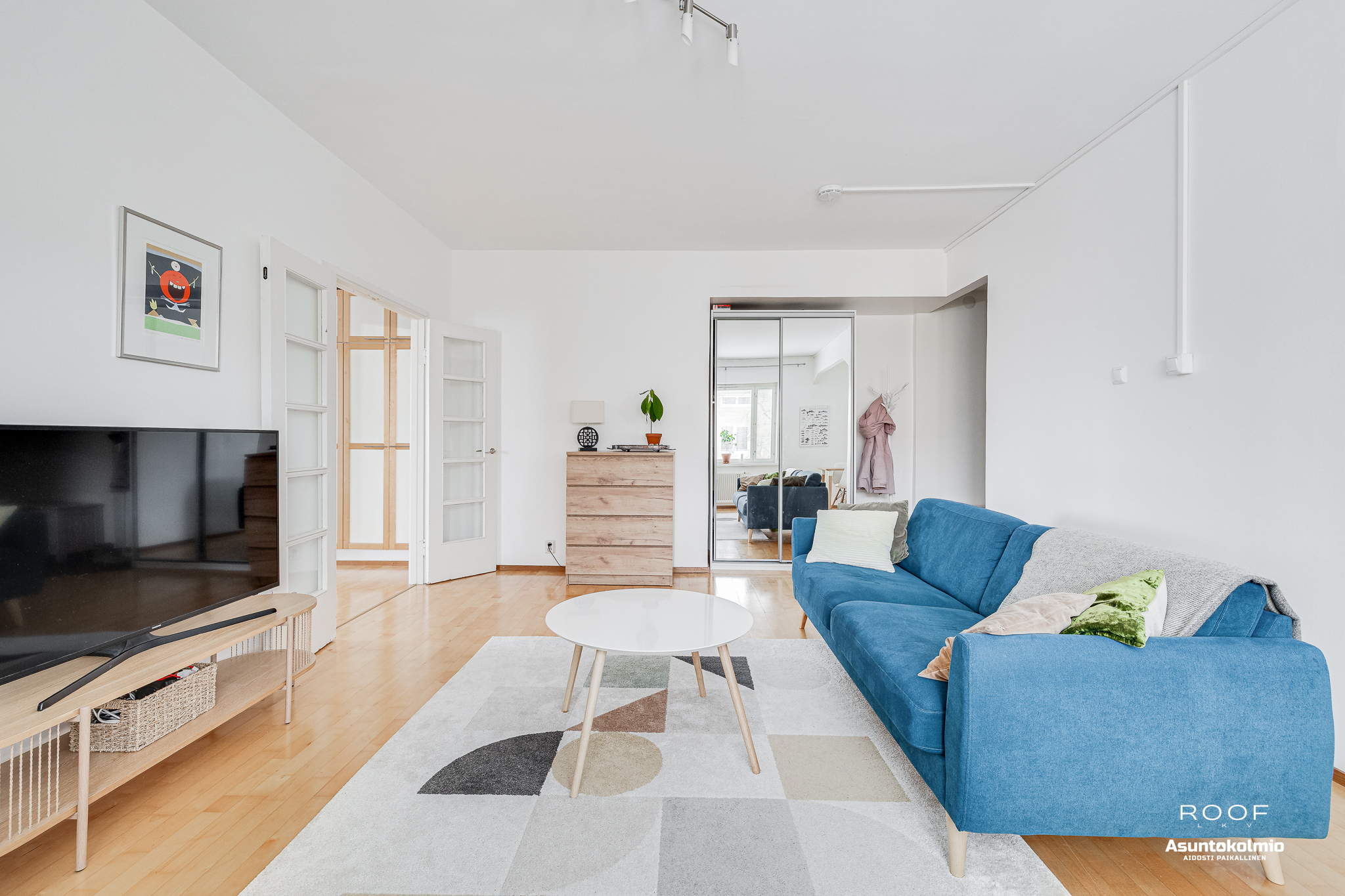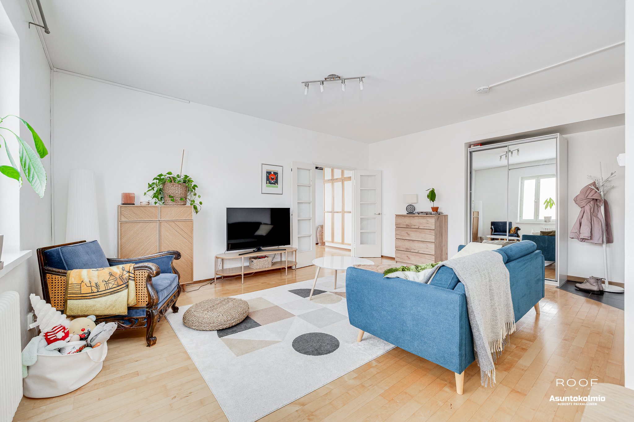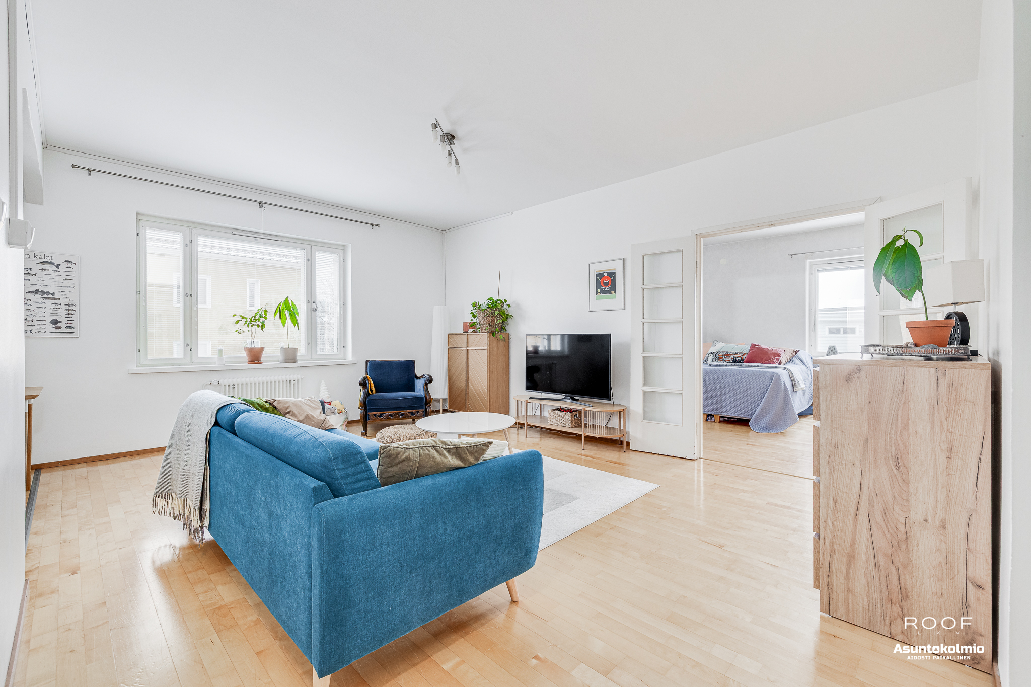 Reilun kokoinen, valoisa kaksio Oulun Keskustasta! Tästä asunnosta ei tila lopu kesken. 2015 remontoitu kylpyhuone on hyvän kokoinen ja samana vuonna remontoitu keittiö yhdistyy isoon olohuoneeseen. Olohuoneesta on käynti upeiden 50-luvun henkisten pariovien kautta isoon makuuhuoneeseen. Asunnosta löytyy myös runsaasti säilytystilaa eteisen ja makuuhuoneen kaapistojen sekä varastojen myötä.