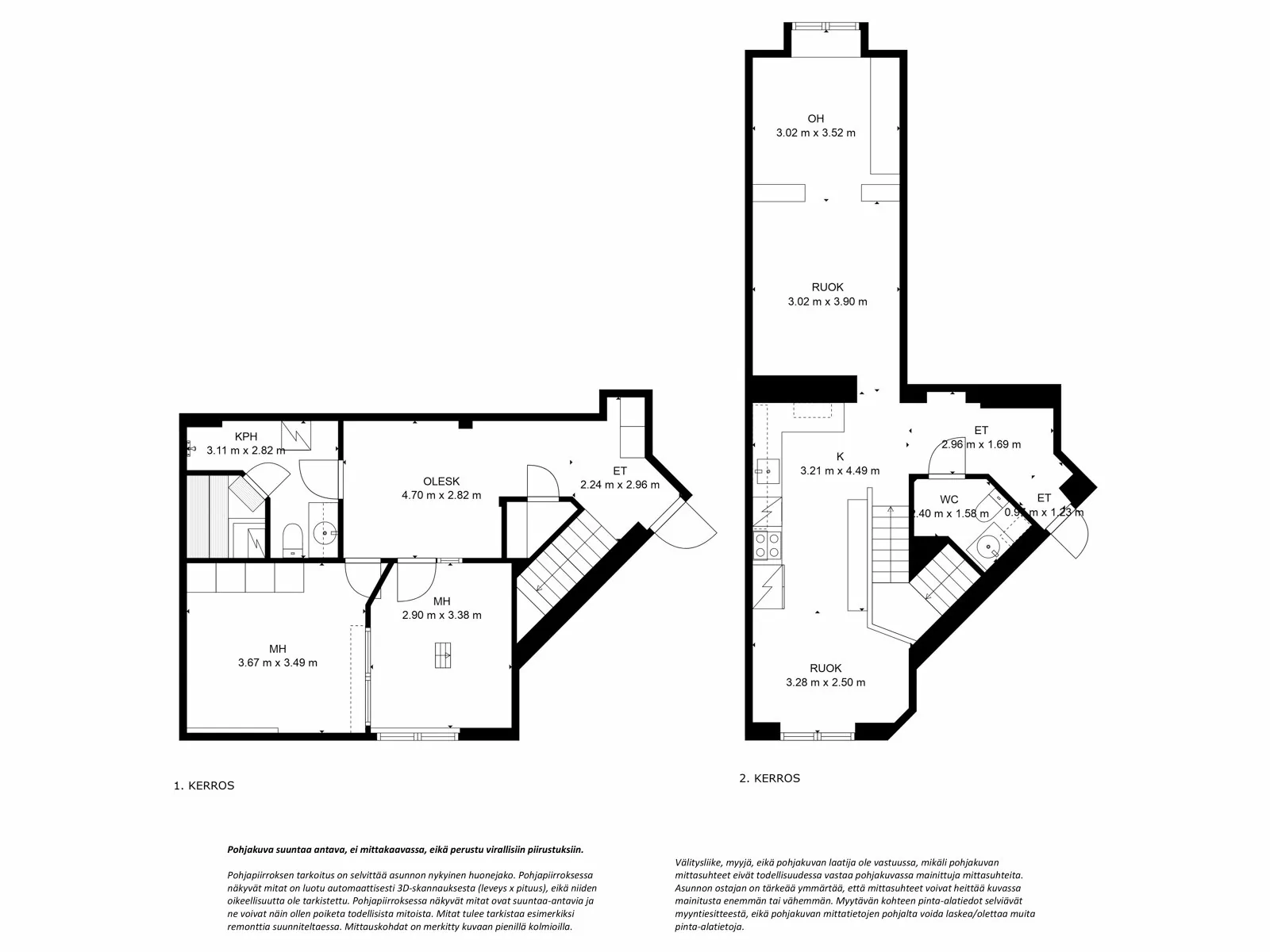3-4 h+k+wc+kph/wc+s, huoneisto kahdessa tasossa