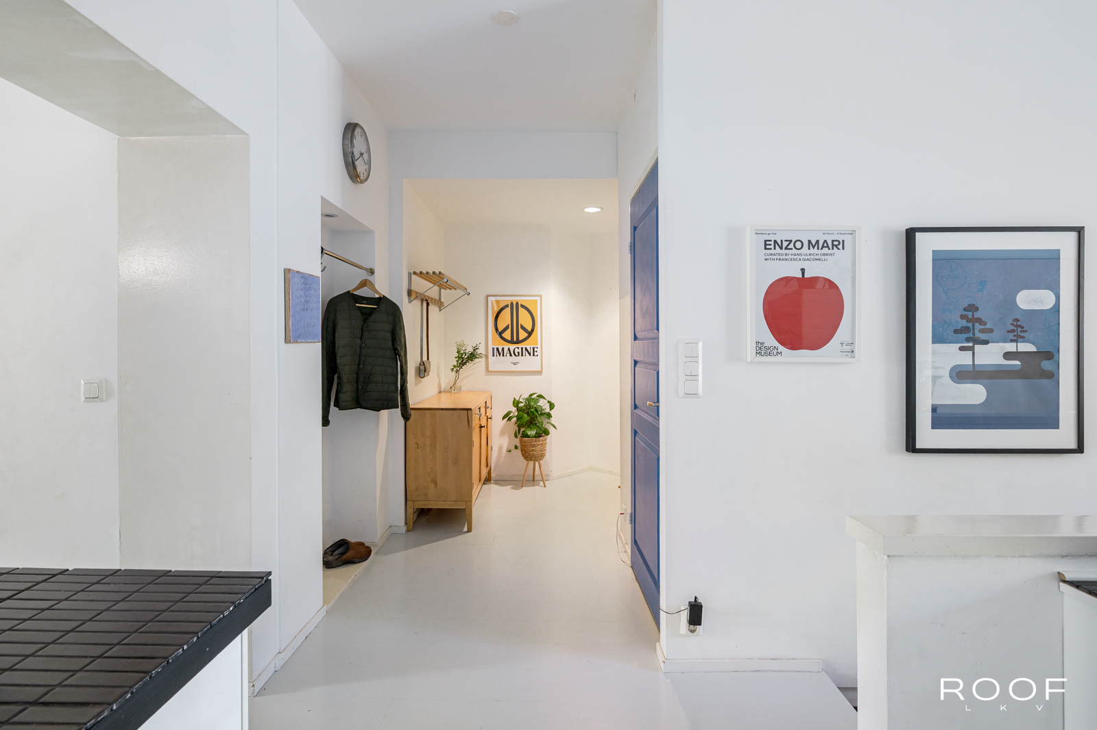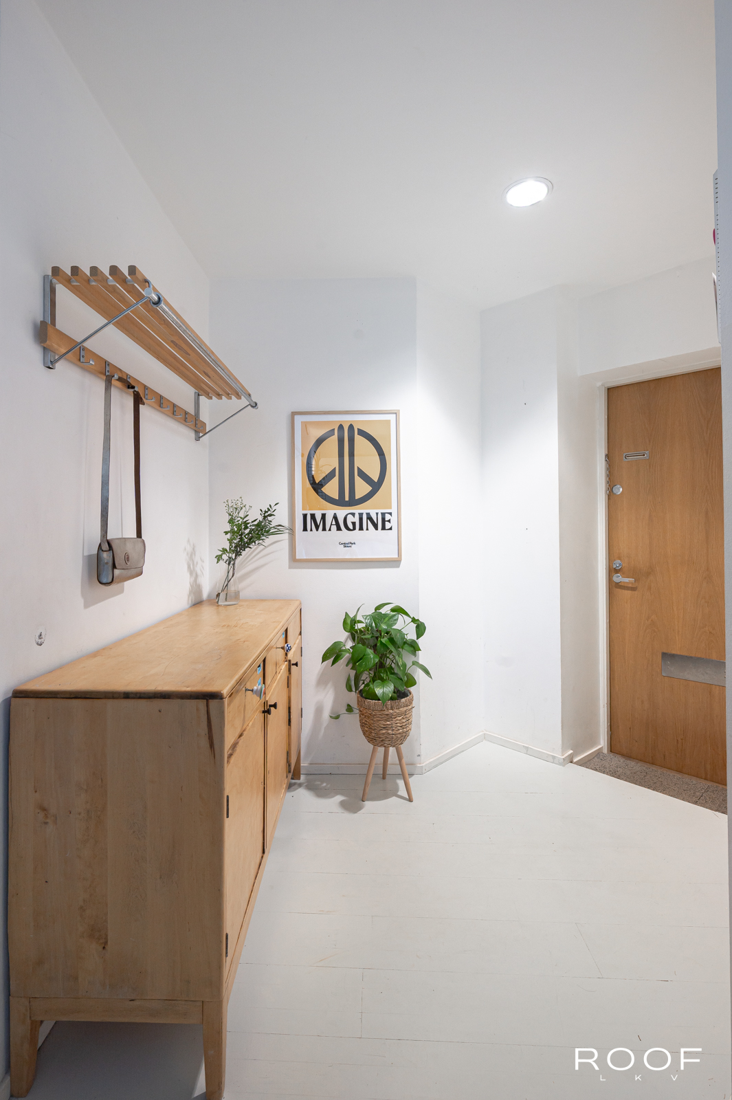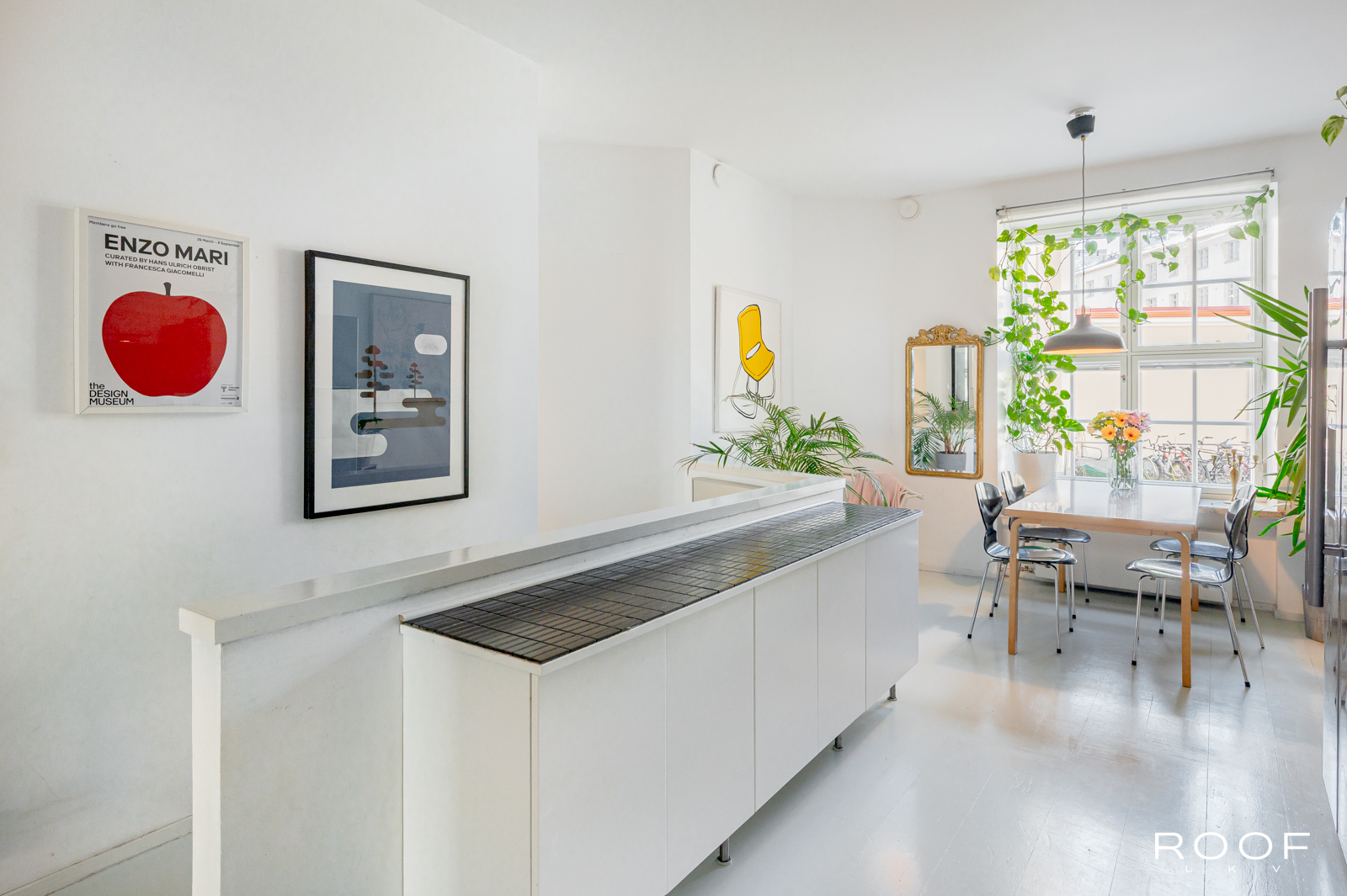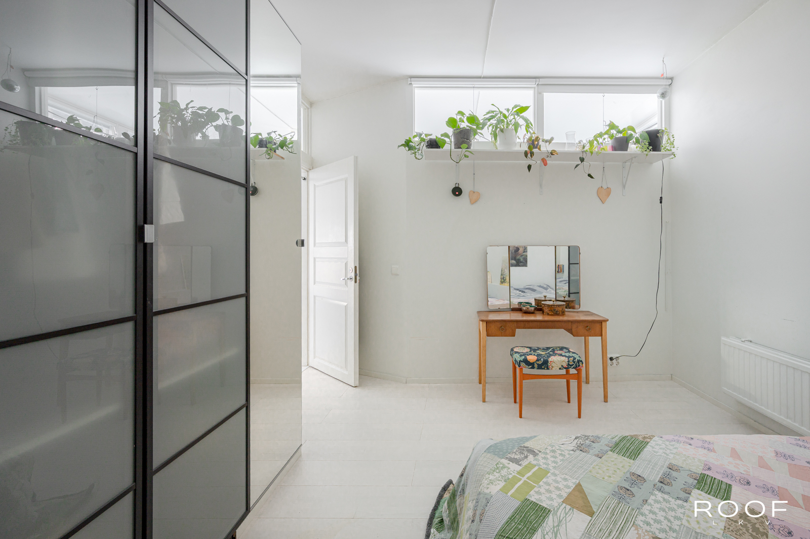 Tässä kodissa on kaksi sisäänkäyntiä – toinen alakerrassa ja toinen yläkerrassa. Yläkerrassa on tilava keittiö, jonka ikkunasta on näkymä taloyhtiön kauniille sisäpihalle, wc ja toinen iso huone, joka on jaettu kahteen osaan. Tällä hetkellä toinen puoli toimii olohuone/makuuhuoneena ja toinen puoli työskentelytilana. Ikkunanäkymä on Hämeenkadulle.