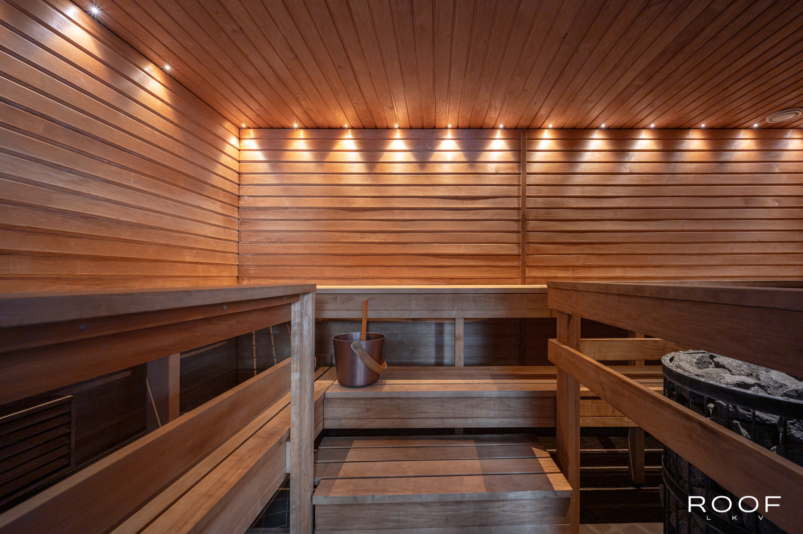 Huoneiston alakerta on kellarikerroksessa. Täältä löytyy tilava oleskelualue ja kaksi makuuhuonetta, lattialämmityksellä varustettu kylpyhuone/wc ja oma sauna , joka tuo arkeen luksusta.. Luonnonvalo tulvii toiseen makuuhuoneeseen sisäpihan puoleisesta katetusta ikkunakuilusta, johon voi laittaa kasvamaan vaikka kauniin pienen puutarhan. Alakerrasta pääset kulkemaan kätevästi myös taloyhtiön pyykkituvalle tarvittaessa.