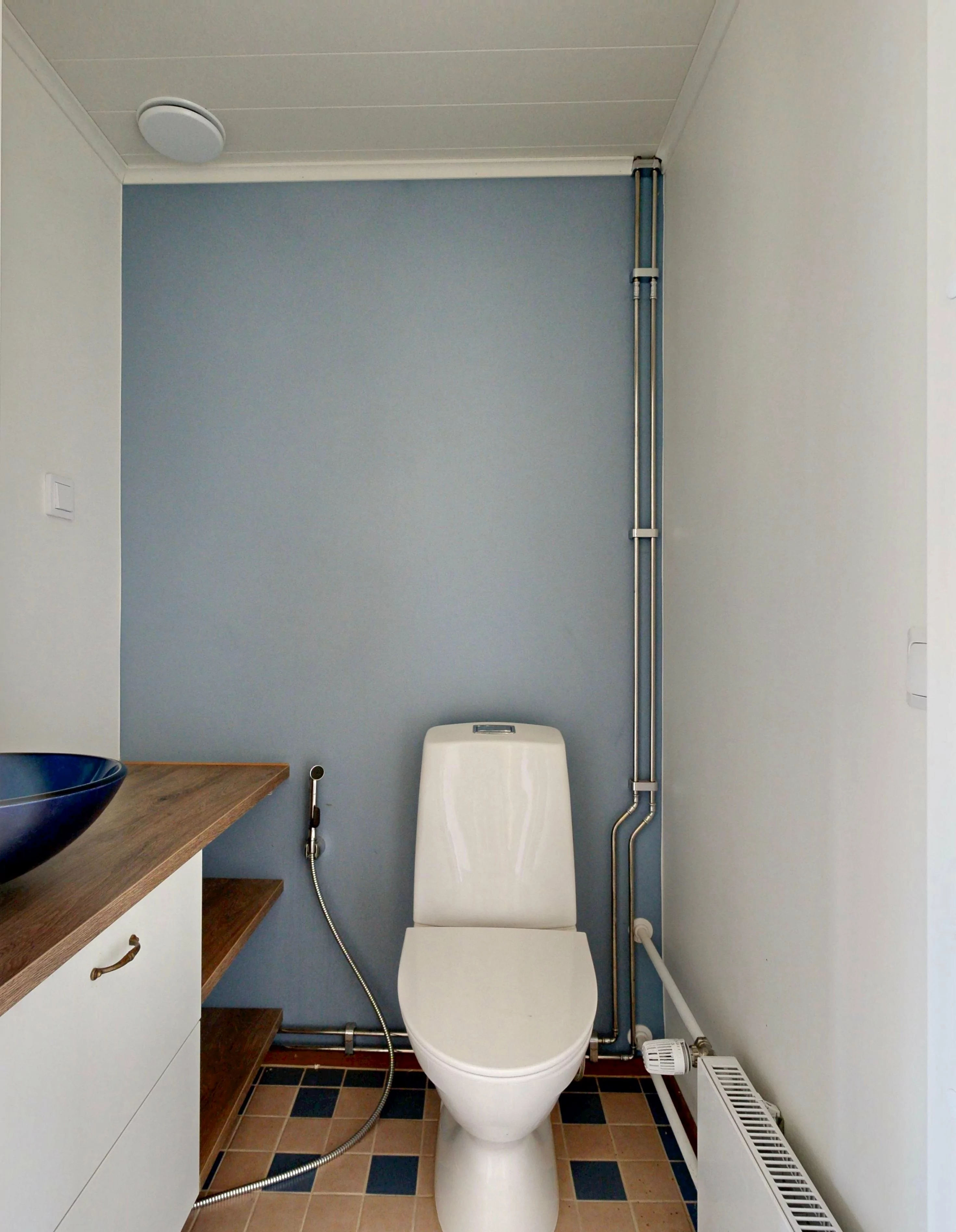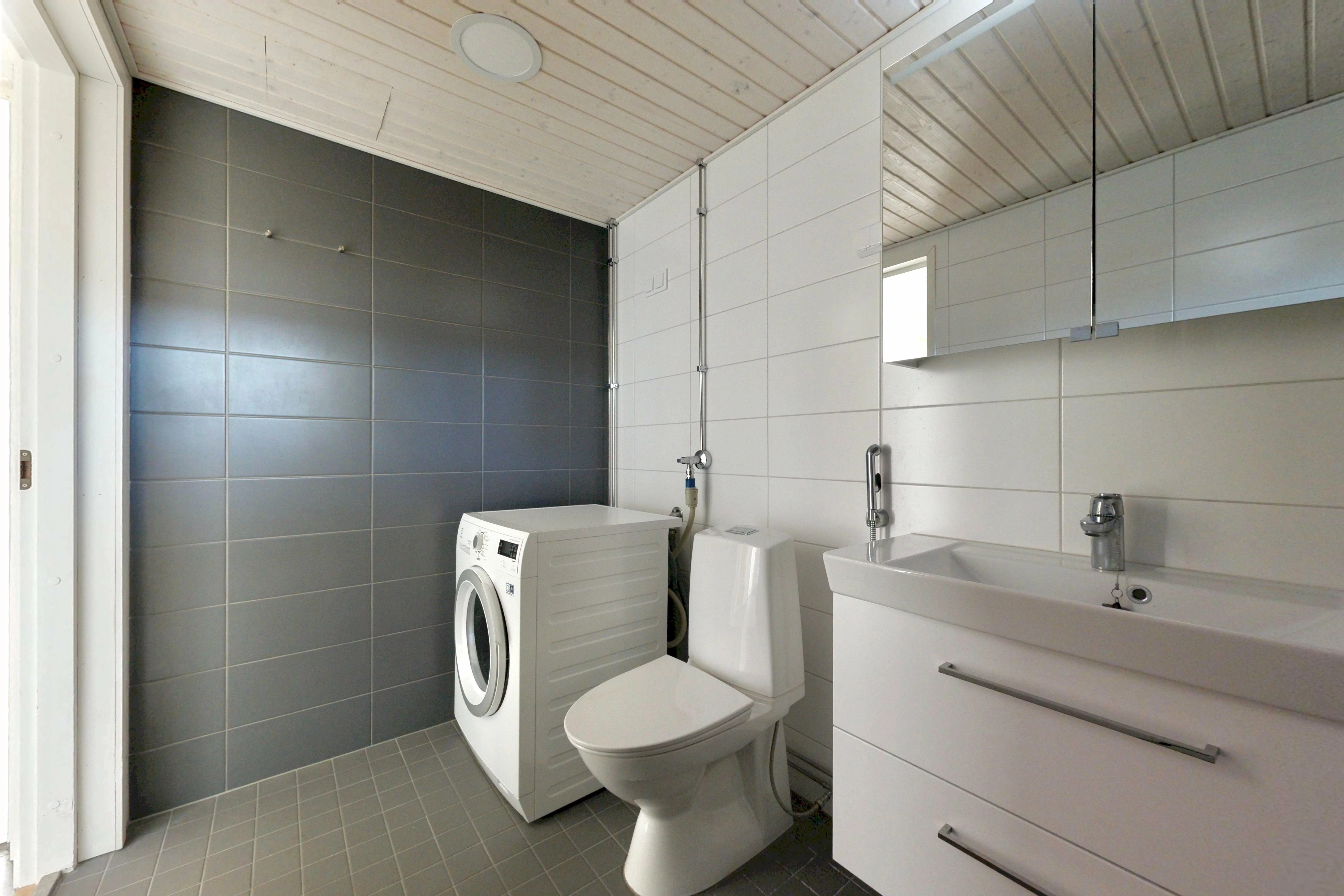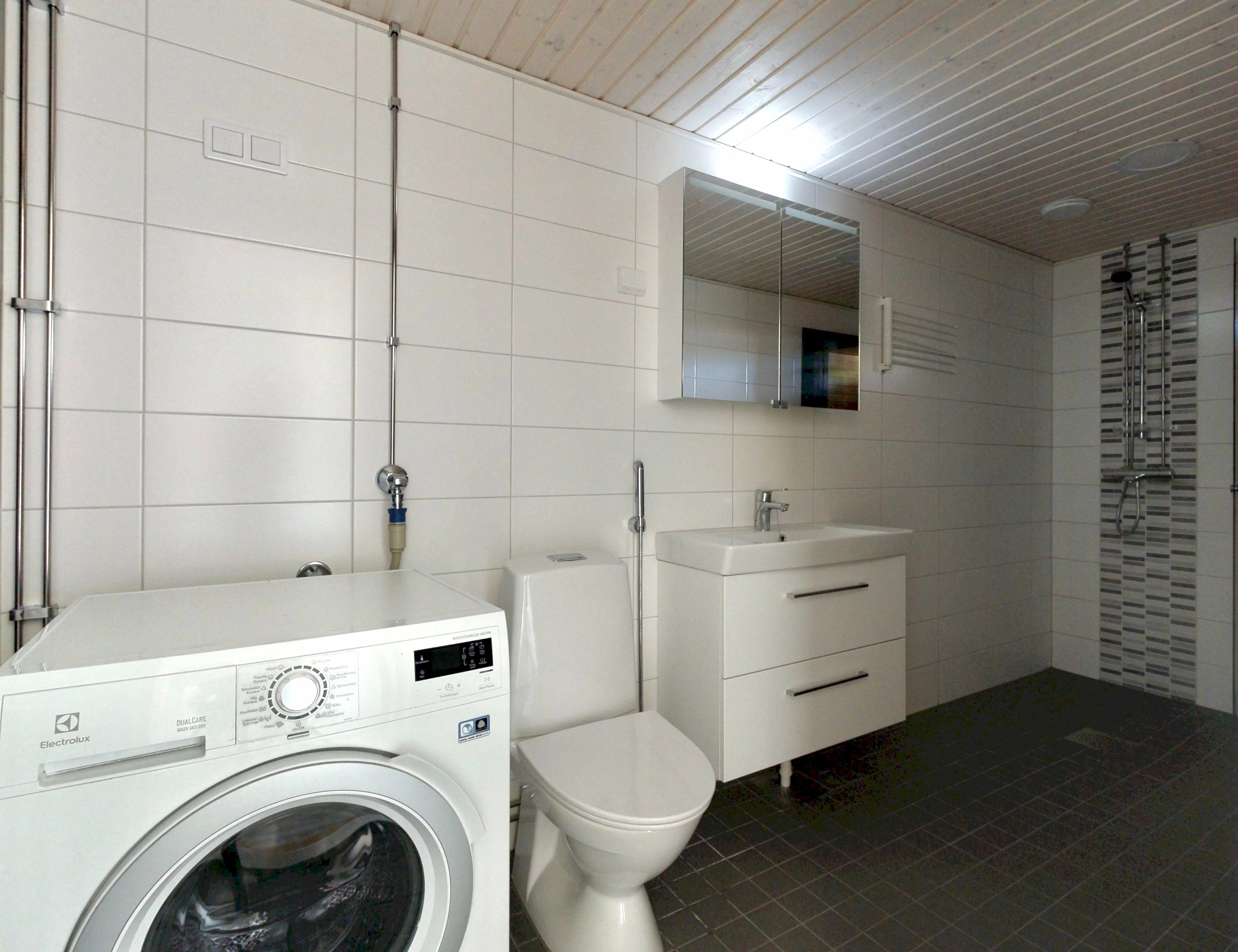 Kaksi makuuhuonetta taloyhtiön sisäpihalle päin. Eteisessä ja makuuhuoneissa kaapisto. Kolmas makuuhuone on mahdollista palauttaa olohuoneeseen väliseinällä. Tyylikäs kylpyhuone saunalla, josta löytyy tila pyykinpesukoneelle sekä käytävältä löytyy erillinen wc.