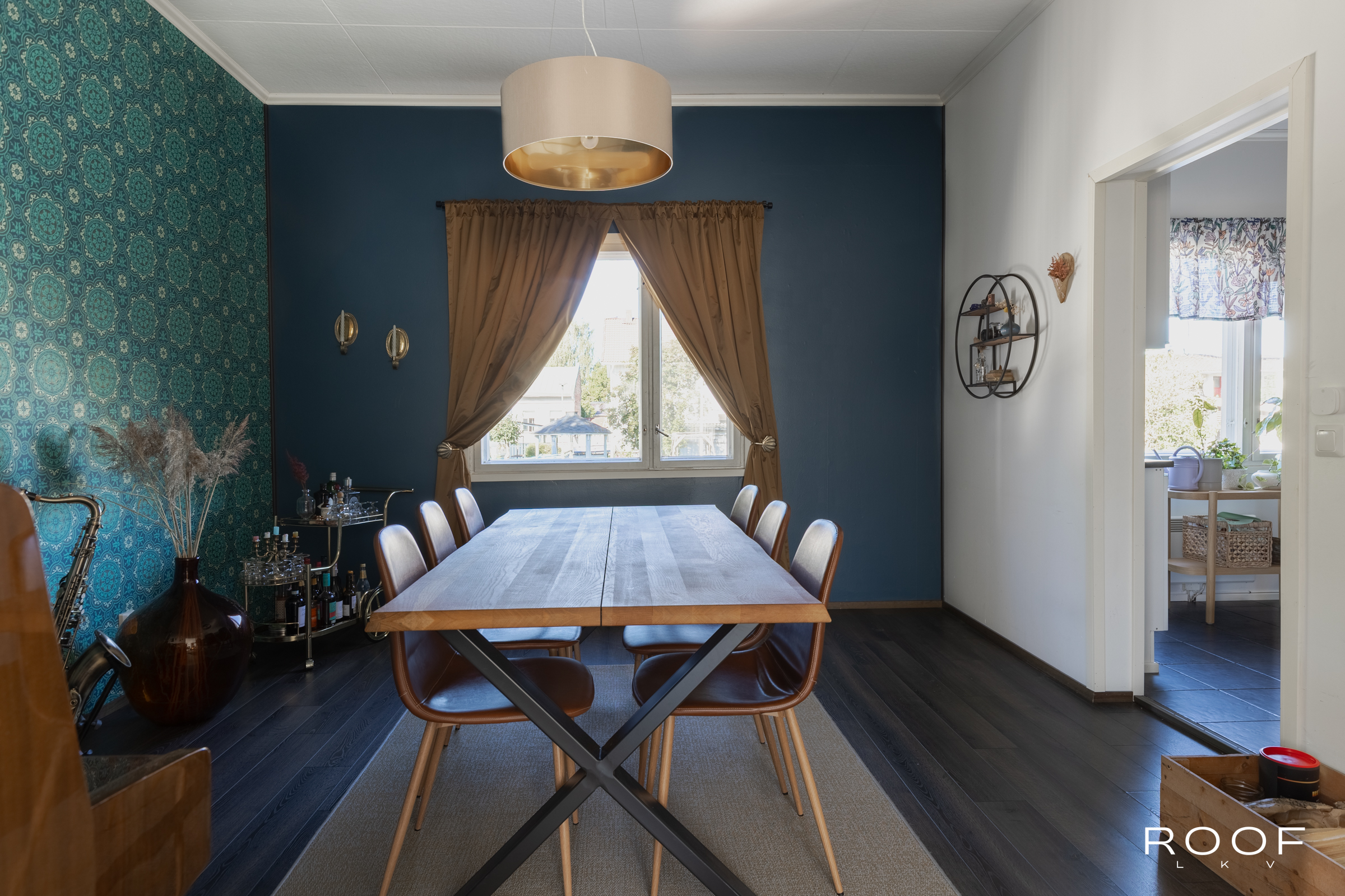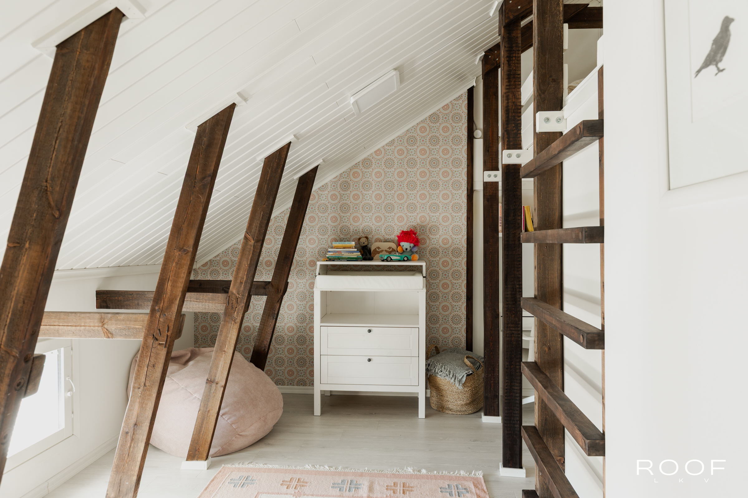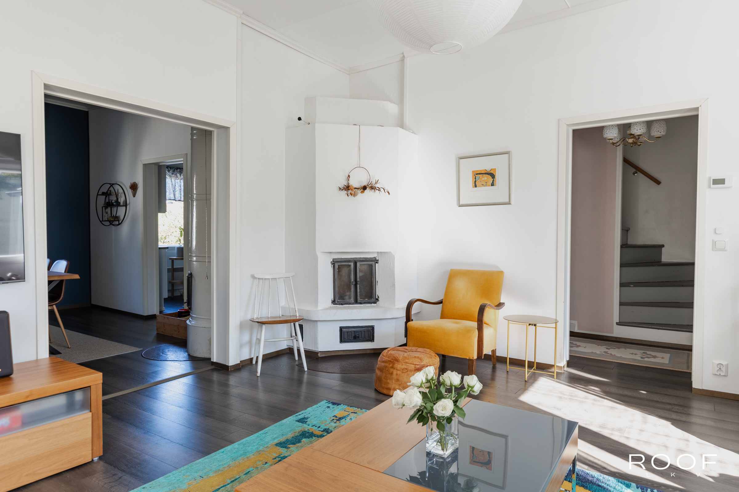 Huonejärjestys tarjoaa joustavuutta: kaksi makuuhuonetta, joista toinen toimii tällä hetkellä näyttävänä ruokailutilana. Lisäksi löytyy makuutila valmiilla parvella, joka sopii niin vieraille kuin omalle rauhoittumiselle tai vaikka lapsen omaksi valtakunnaksi.