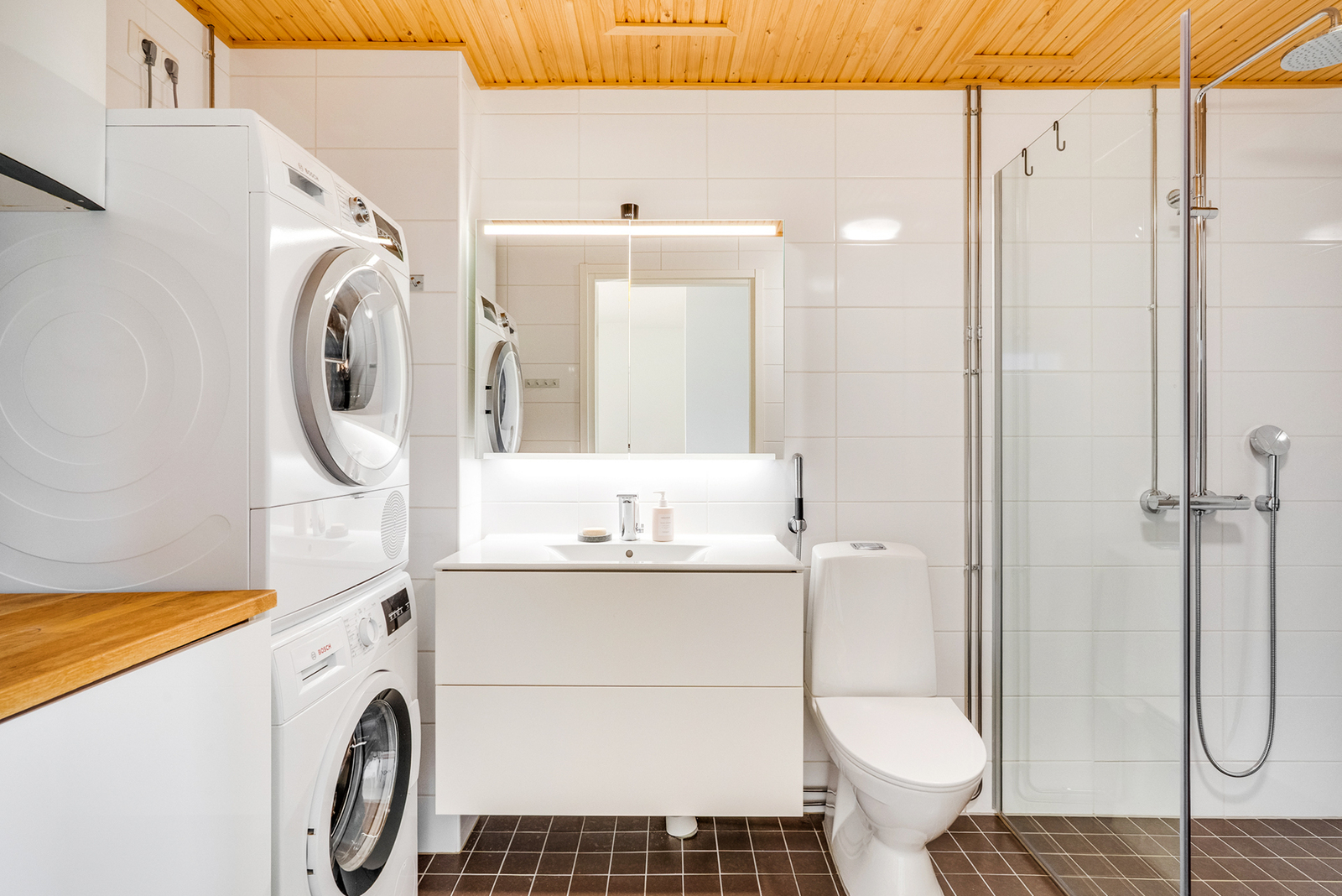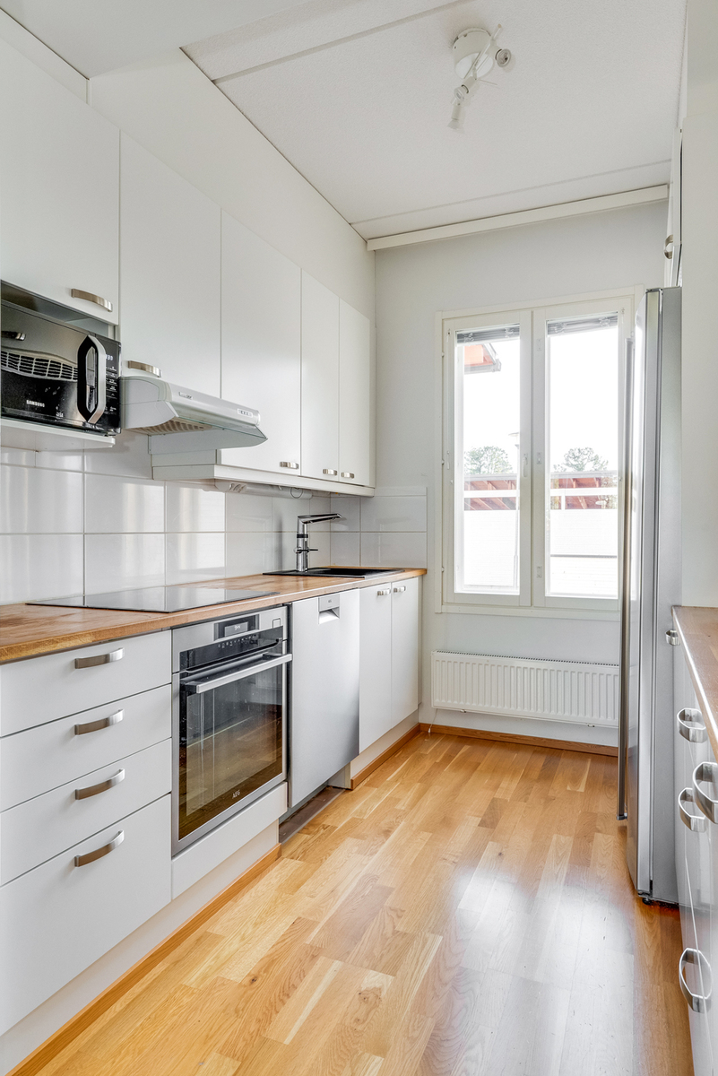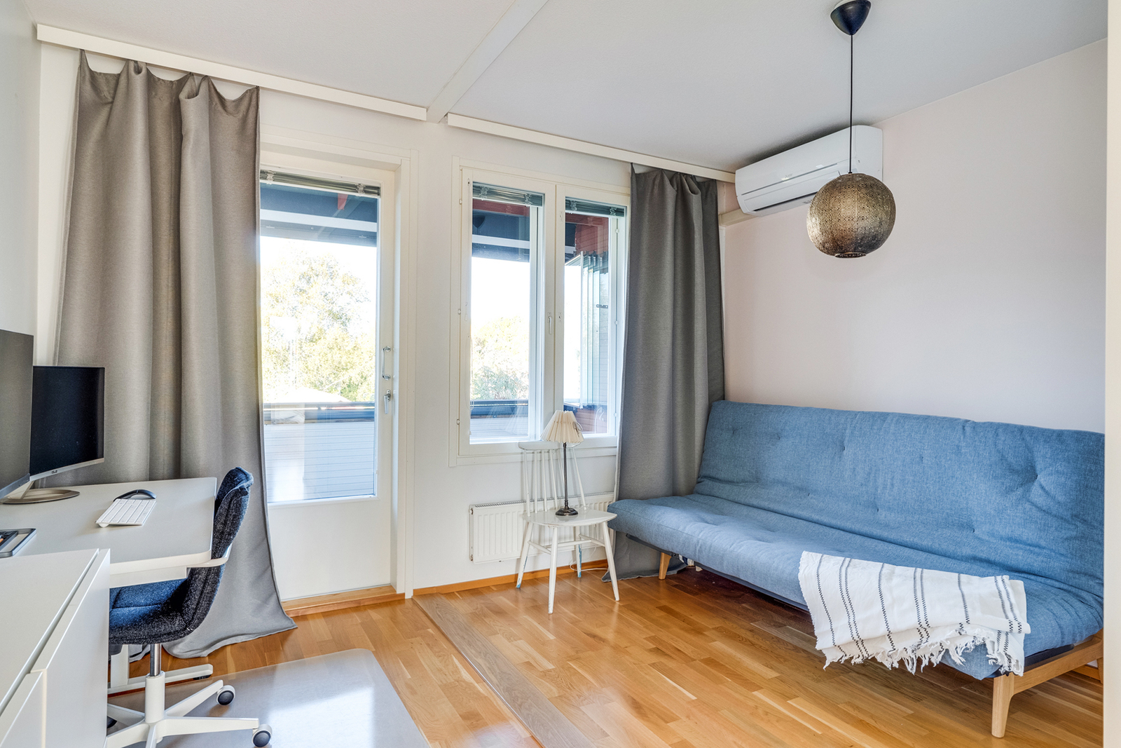 Nyt tarjolla Tampereen Muotialasta valoisa rivitalohuoneisto. Asunto tarjoaa tilojensa, varustuksiensa ja pohjaratkaisun osalta vastinetta tämän päivän toiveisiin. Keittiö vastaa materiaaleiltaan ja työtasotiloiltaan tämän päivän tarpeita. Keittiön yhteyteen mahtuu hienosti isompikin ruokapöytä. Valoisaan olohuoneeseen mahtuu kunnollinen sohvaryhmä ja olohuoneesta on kulku asunnon osittain lasitetulle terassille. Alakerrasta löytyy myös erillinen wc, joka helpottaa kiireistä arkea. Huoneiston yläkerrasta löytyy kaksi tilavaa makuuhuonetta sekä kylpyhuone- ja saunaosasto. Kylppärin yhteydessä on tilaa myös kodinhoidolle. Huoneiston kolmannen makuuhuoneen seinä on purettu ja näin tilaan on saatu avaruutta, joka palvelee nykyisiä omistajia työpisteenä. Työtilasta löytyy ilmalämpöpumppu ja siitä on käynti asunnon lasitetulle parvekkeelle. Vaatehuoneen lisäksi asunnolla on kaksi erillistä varastoa, joista toinen löytyy huoneiston välittömässä läheisyydessä etupihalla.