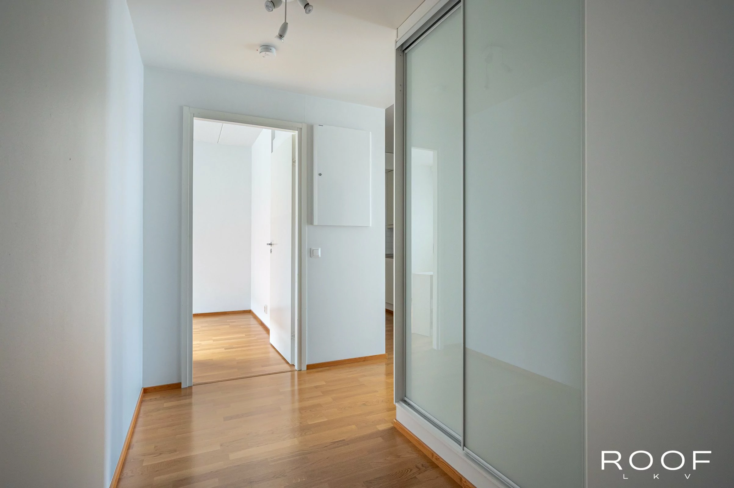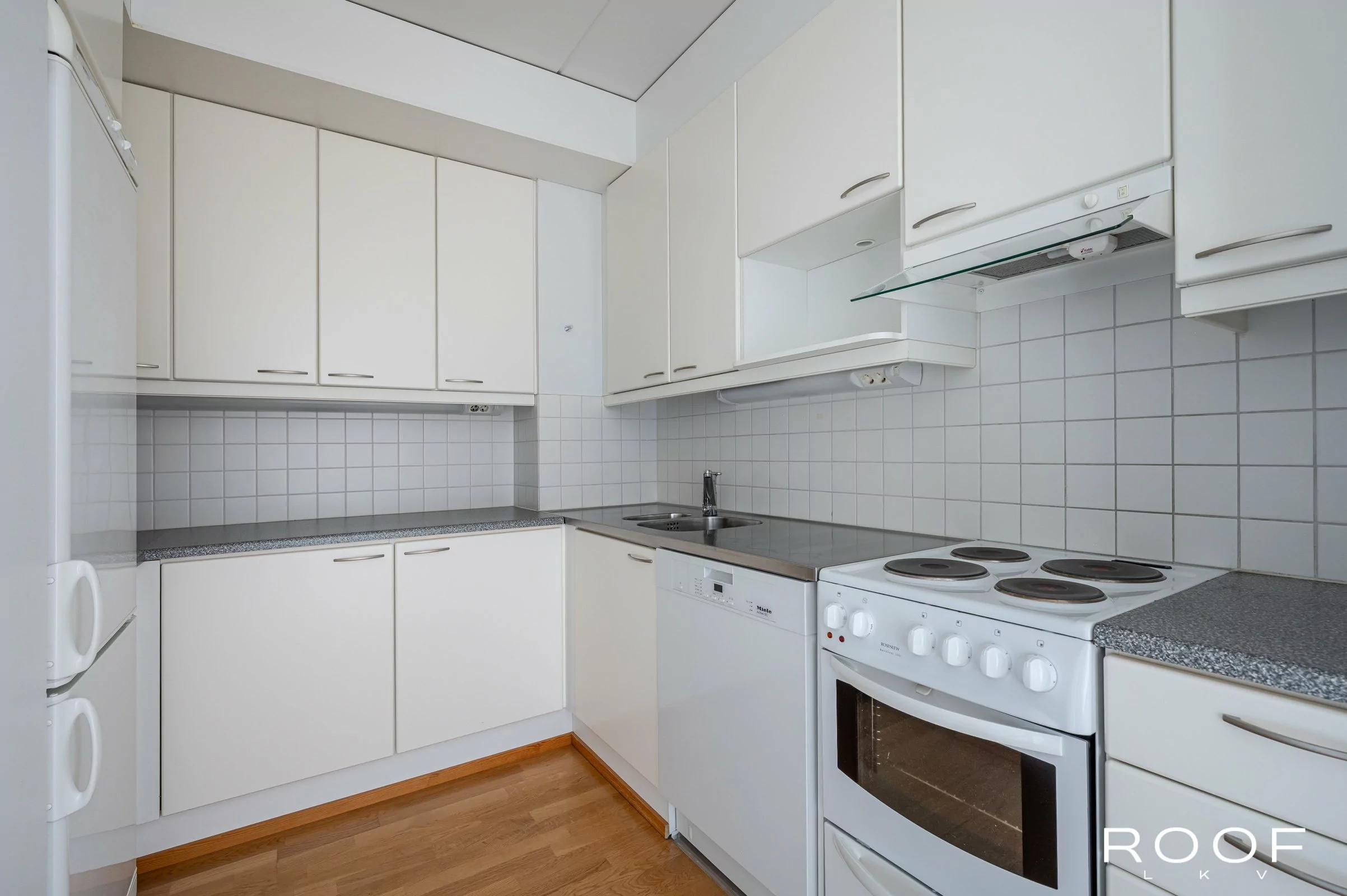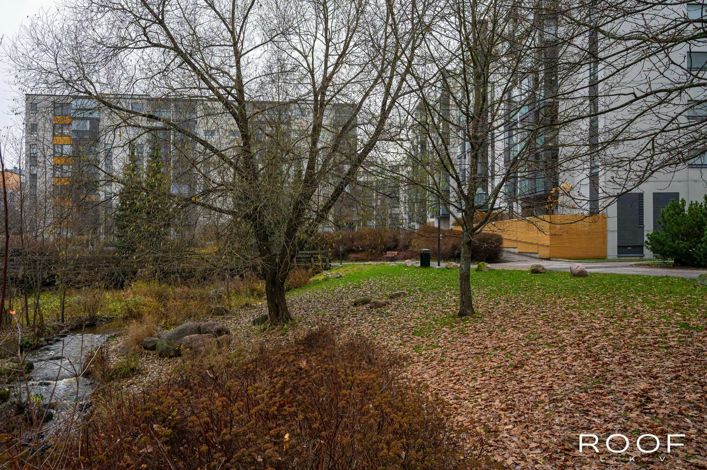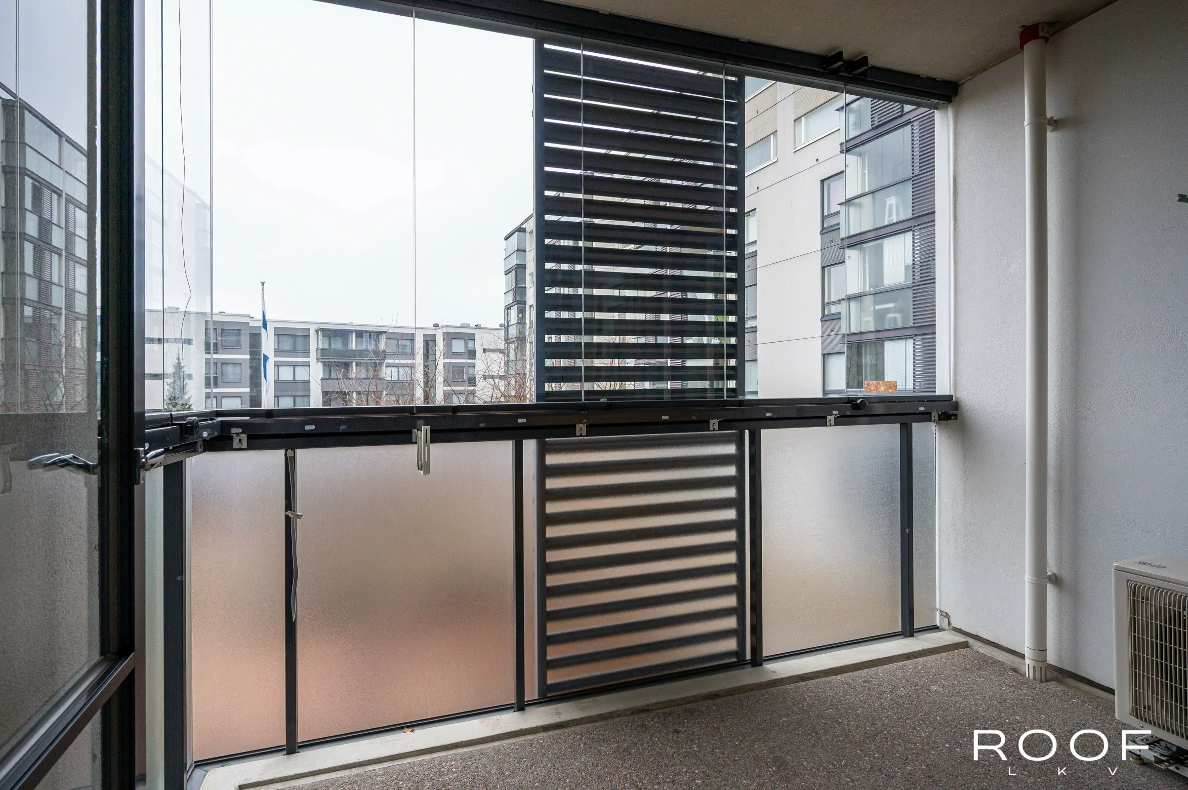 Asunnon sydän on suuri, monikäyttöinen olohuone, joka yhdistyy saumattomasti ruokailutilaan ja siihen avautuvaan keittiöön. Tilassa on reilusti valoa ja selkeät linjat, jotka jättävät sisustajalle vapaat kädet. Olohuoneesta on käynti lasitetulle länsiparvekkeelle, josta avautuvat vehreät näkymät Soittokunnanpuistoon.