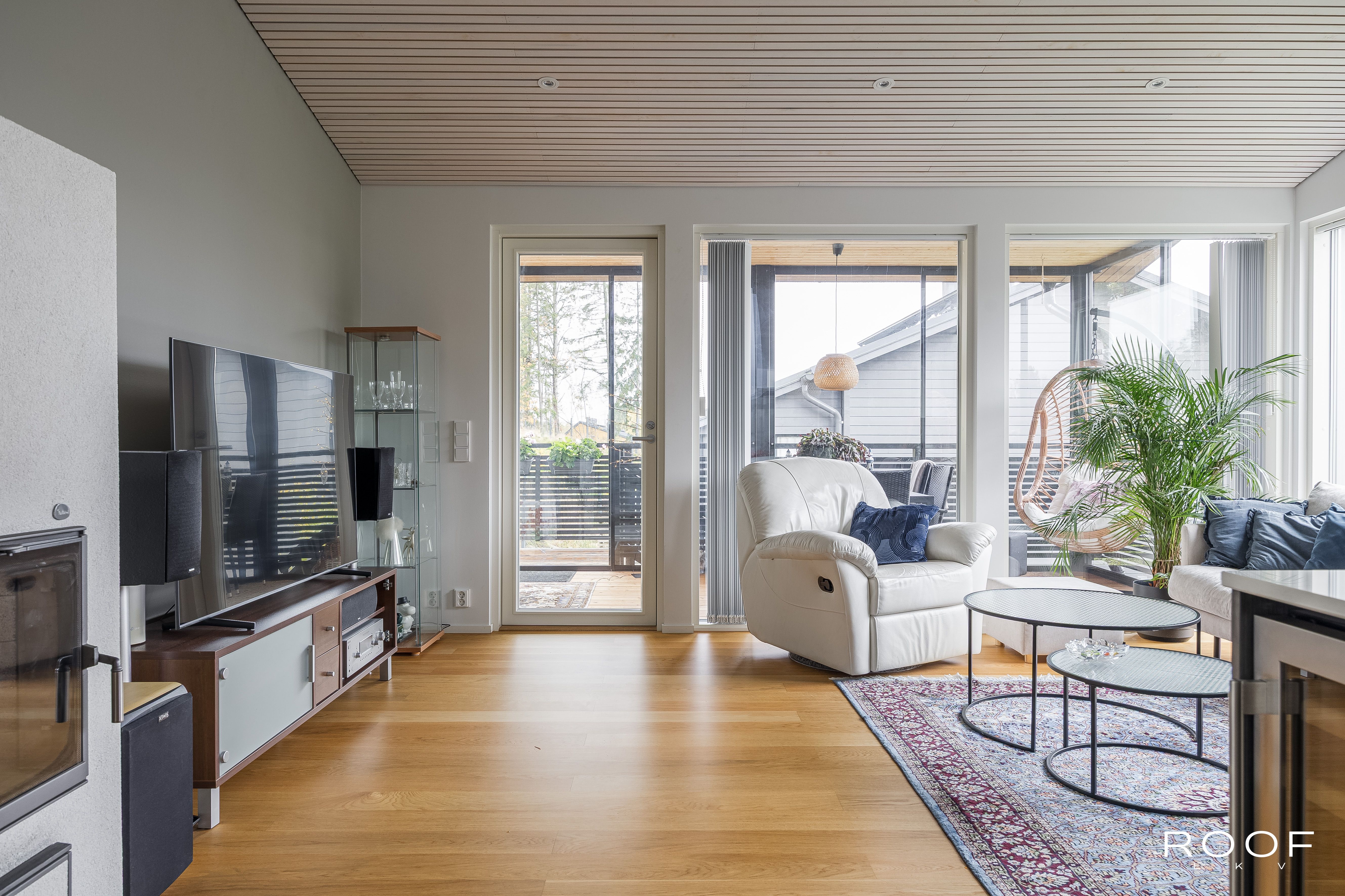 omakotitalo, 3 mh, kotiteatterihuone, työtila, keittiö, ruokailutila, olohuone, kph, khh, wc, pesuhuone, sauna ja lasitettu terassi
