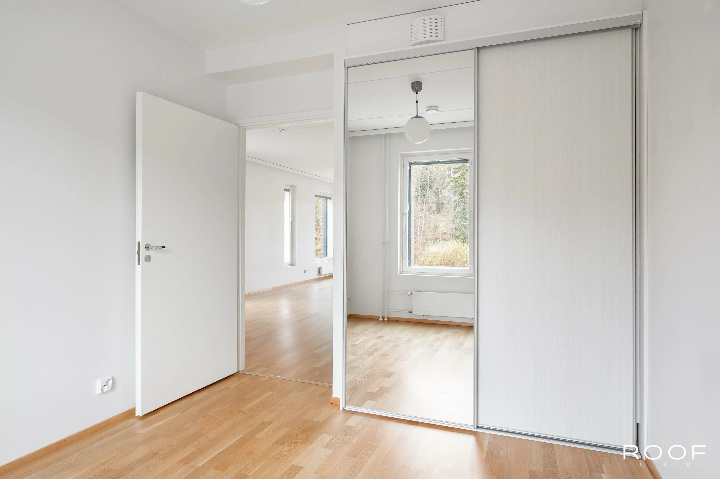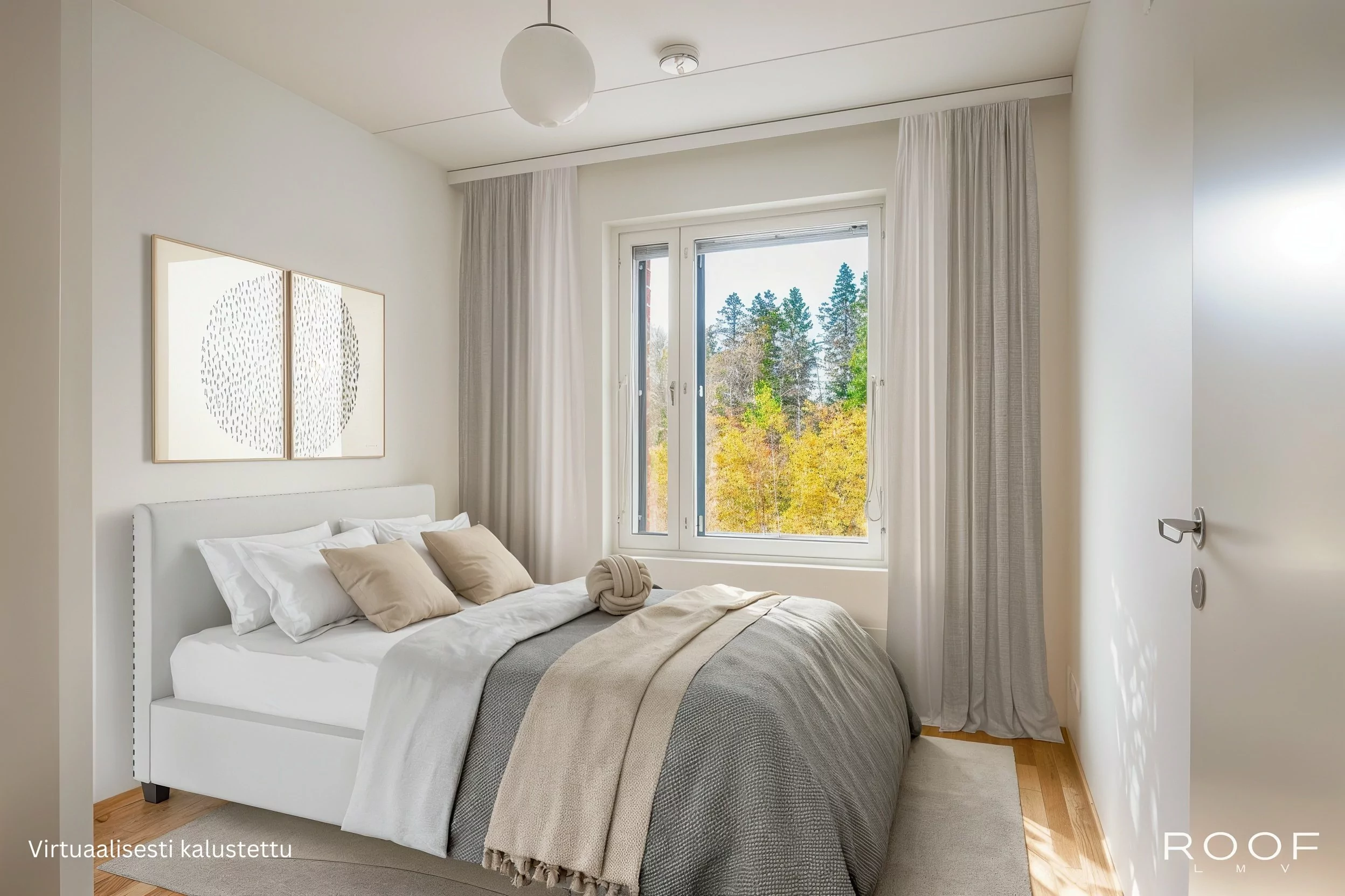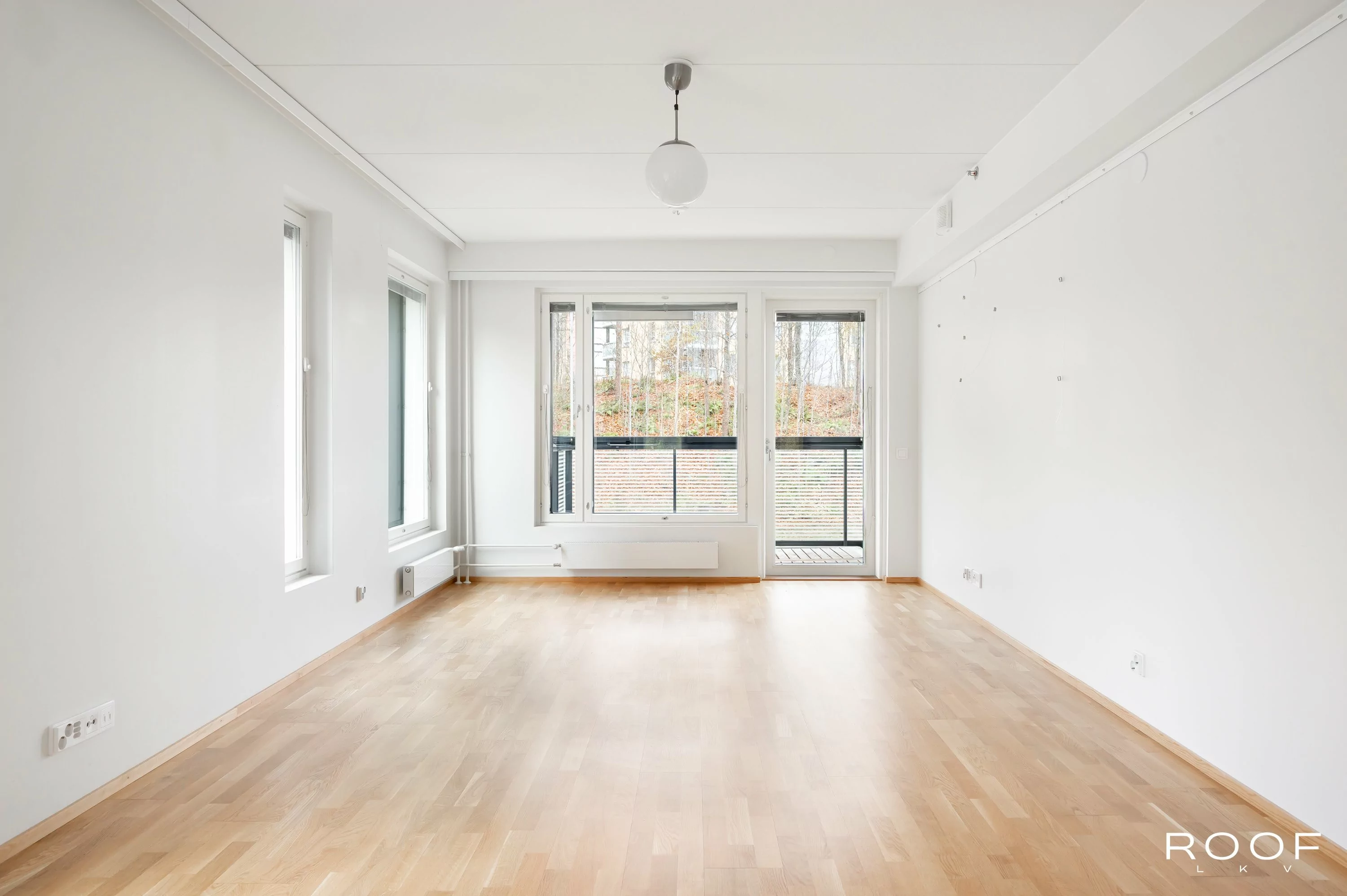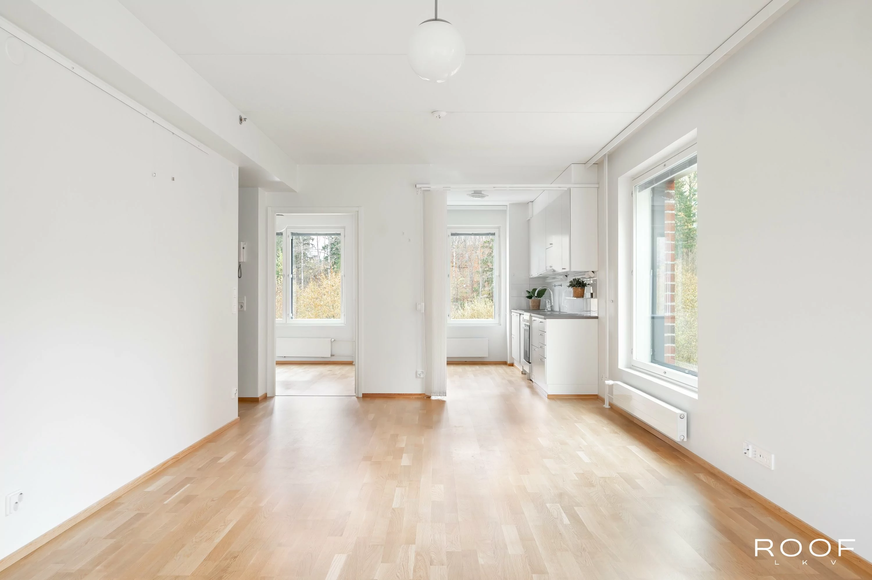 Tämä muuttovalmis kolmio kutsuu viihtymään. Kodin sydän on avara olohuone, keittiö ja ruokailutila, jotka yhdistyvät yhtenäiseksi, valoisaksi kokonaisuudeksi. Suuret ikkunat ja lasitettu parveke tuovat runsaasti luonnonvaloa ja lisäävät tilantuntua – parveke toimii kuin toinen olohuone pitkälle syksyyn.