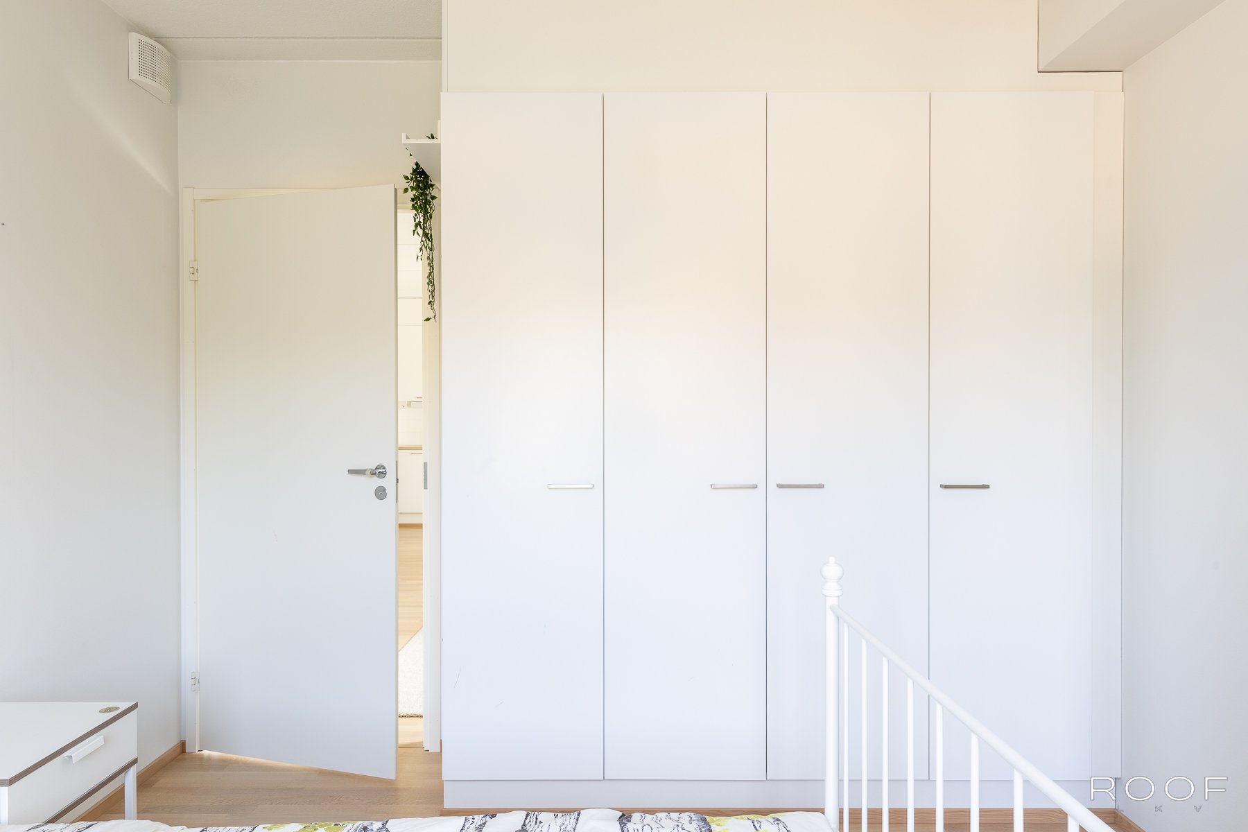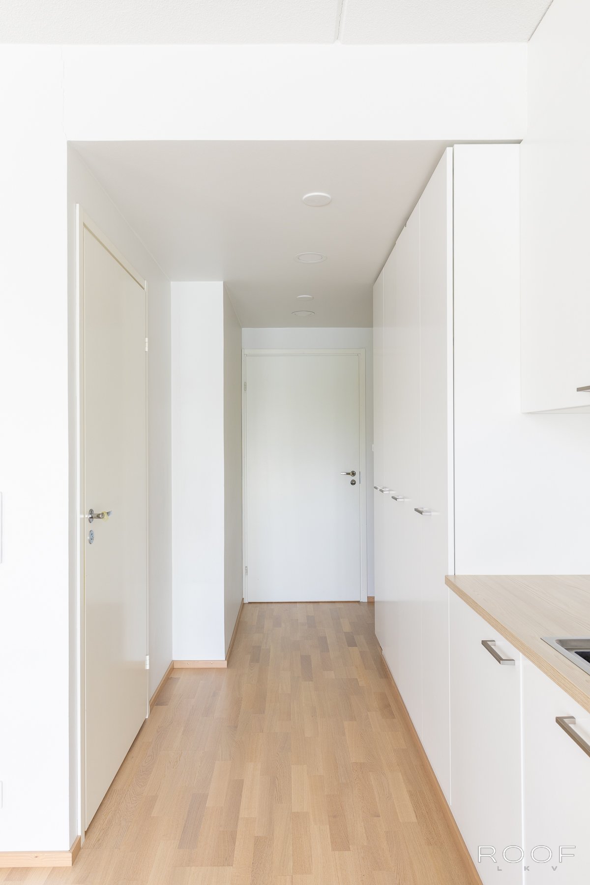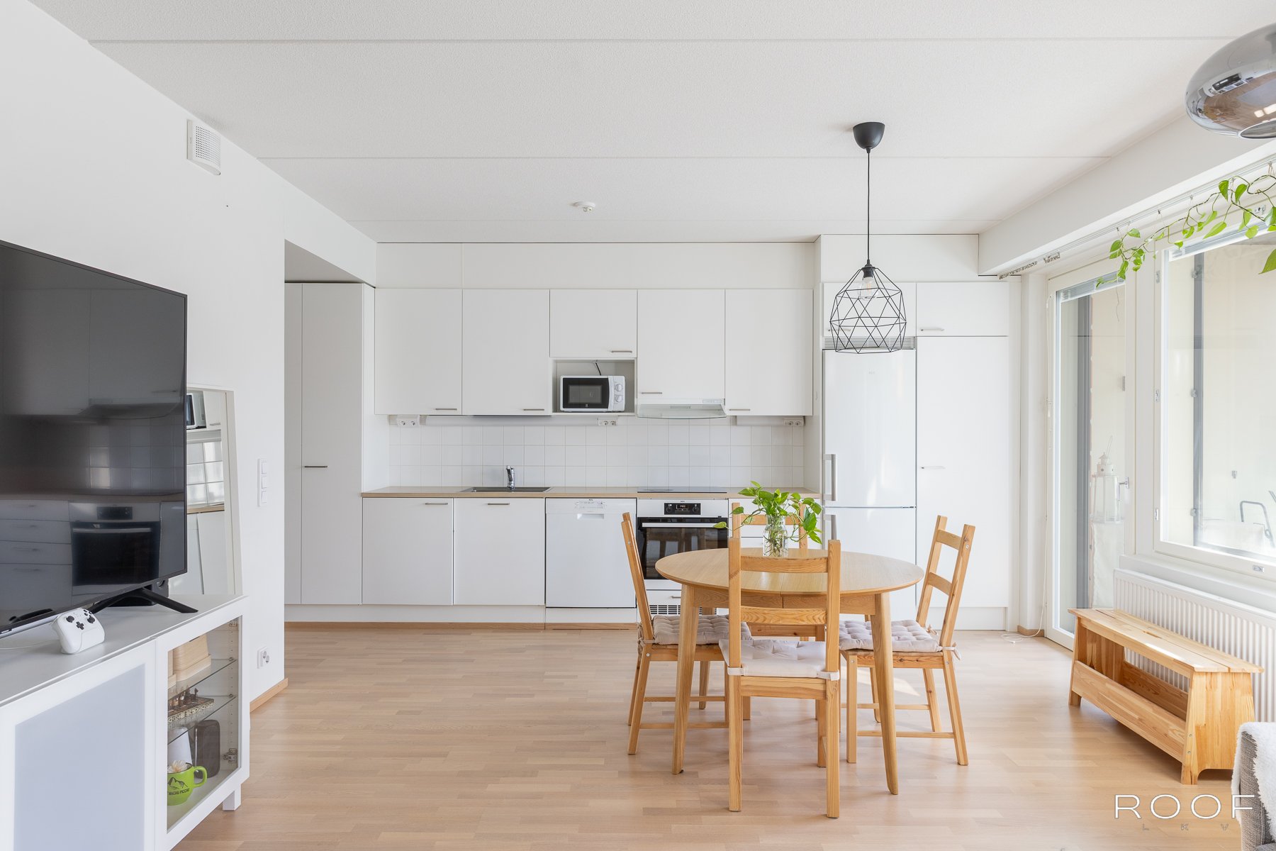 Asunnossa on avokeittiö, joka yhdistyy olohuoneeseen, luoden yhtenäisen tilan. Parketti lattiat ja tyylikkäät pintamateriaalit tuovat modernia ilmettä. Kaksi makuuhuonetta tarjoavat riittävästi tilaa tarpeisiin, ja molemmissa huoneissa on kaapistot säilytystilaa varten.