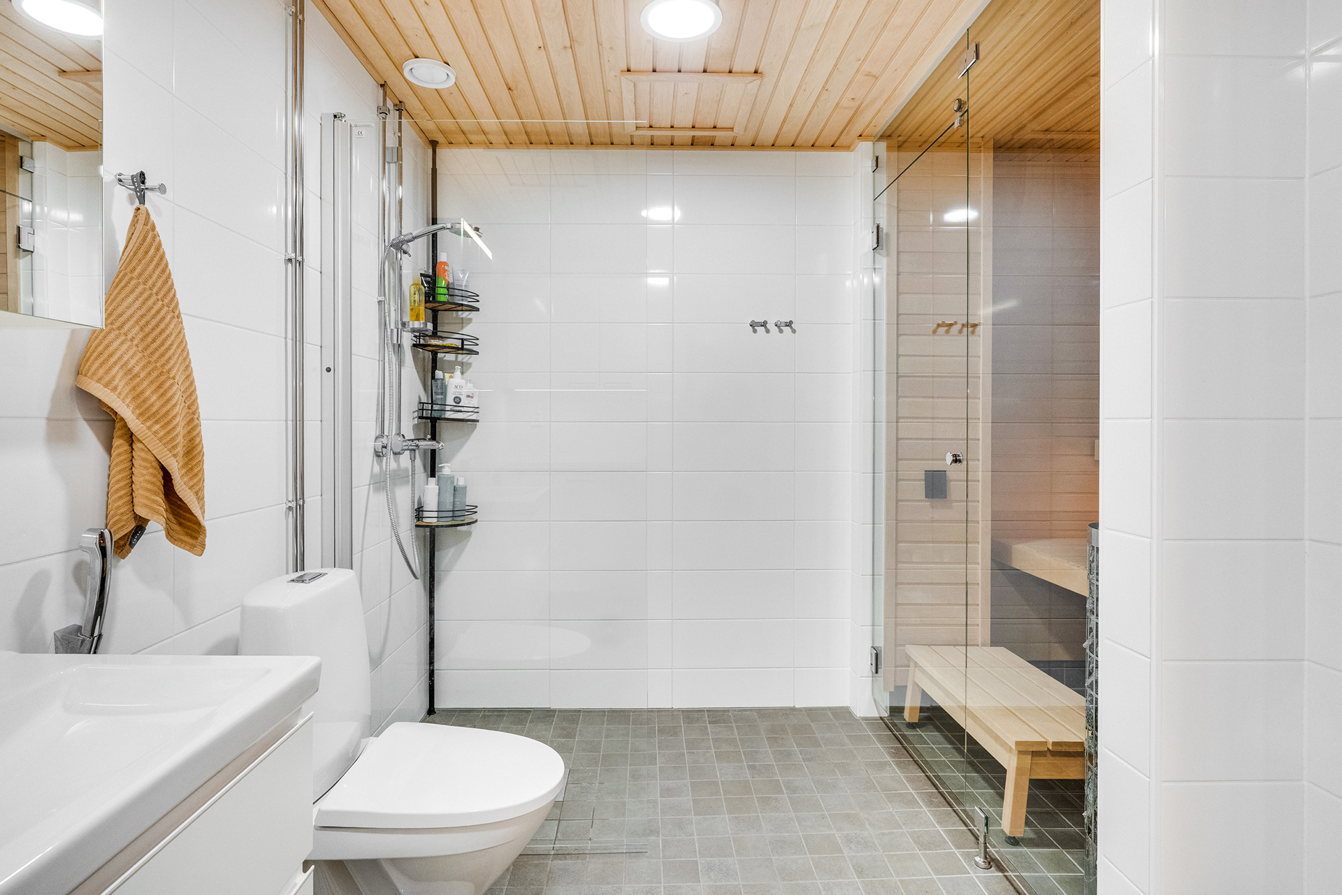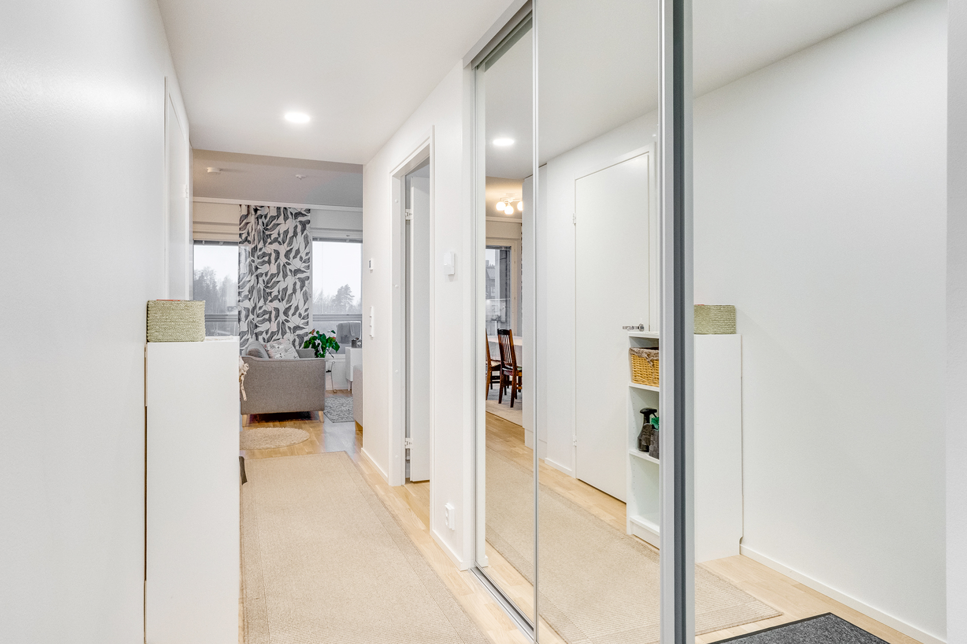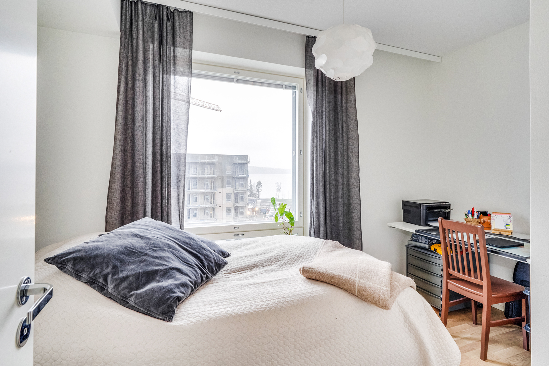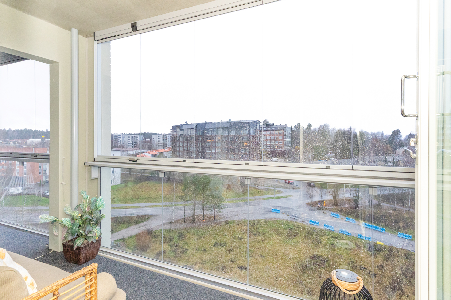 Asunnossa on kaksi makuuhuonetta, jossa toisessa on sisäänkäynti omalle parvekkeelle. Laadukas kylpyhuone omalla saunalla. Kokonaisuuden kruunaa iso lasitettu parveke olohuoneen yhteydessä.