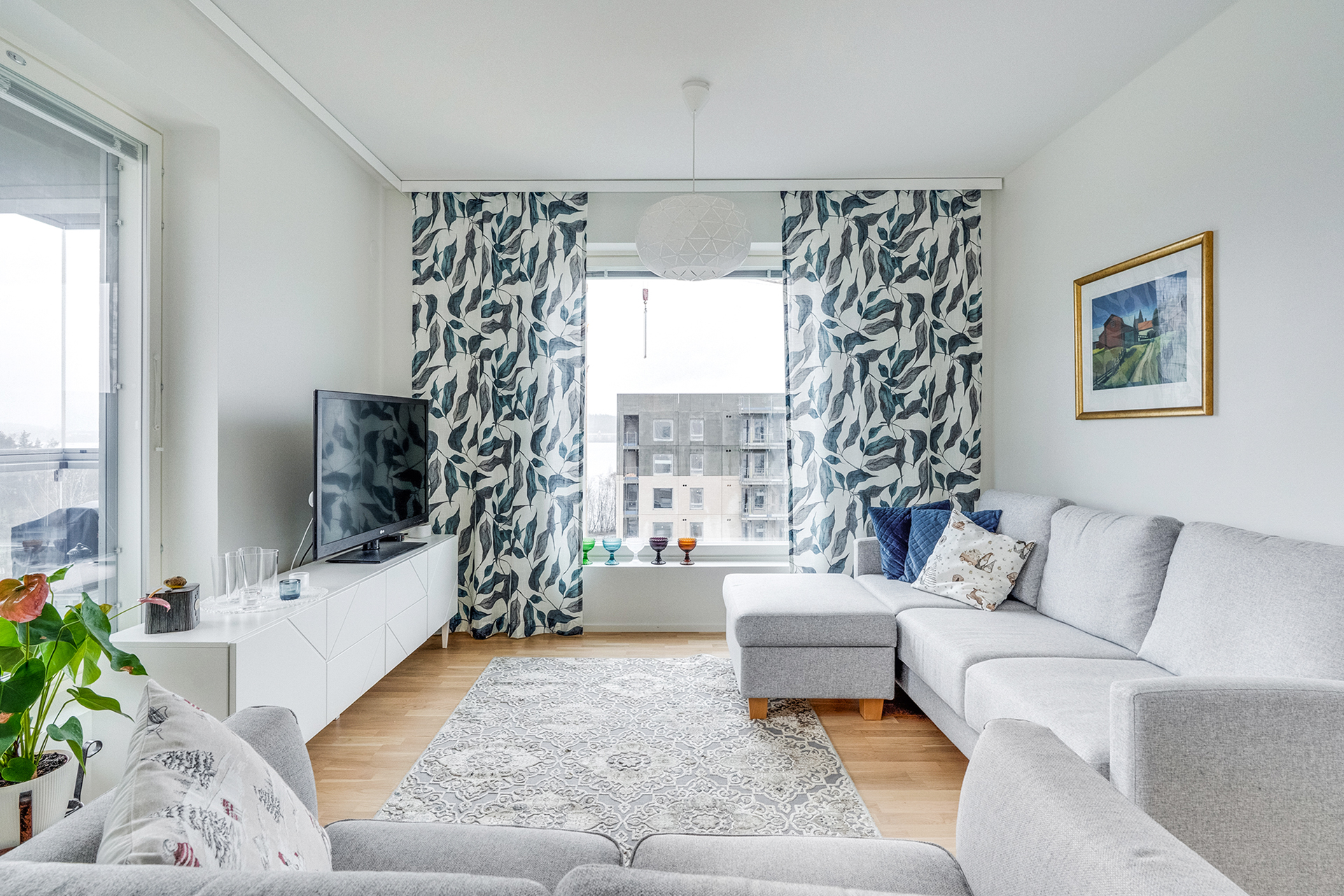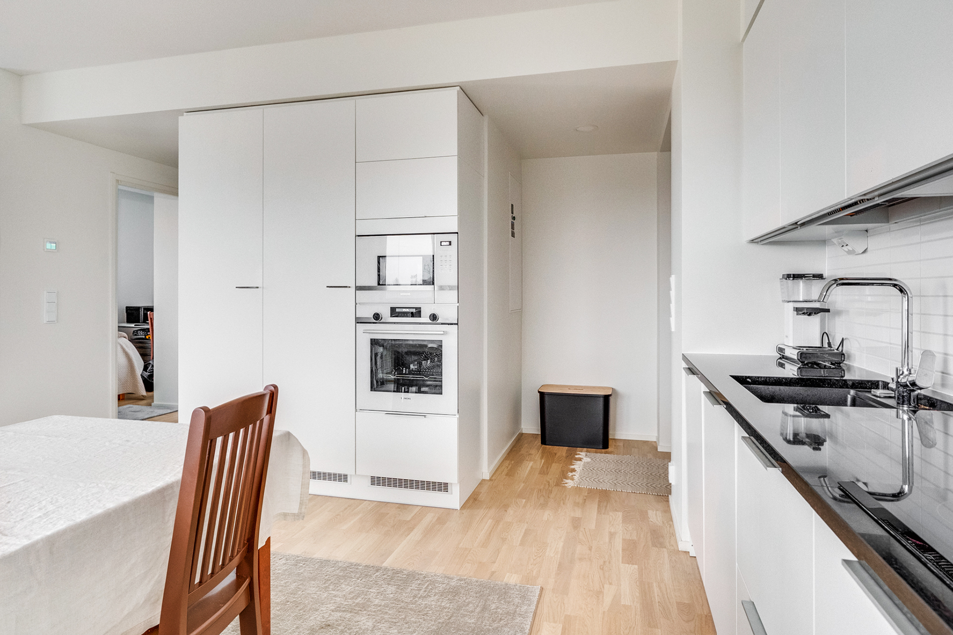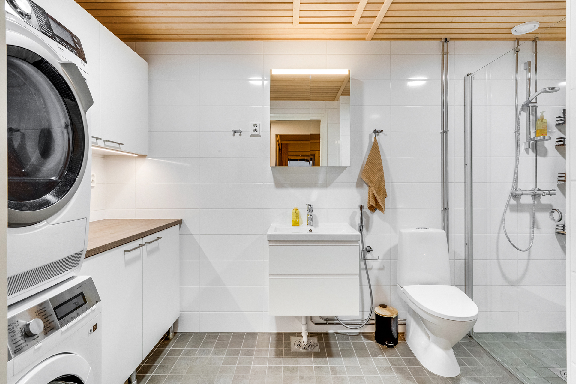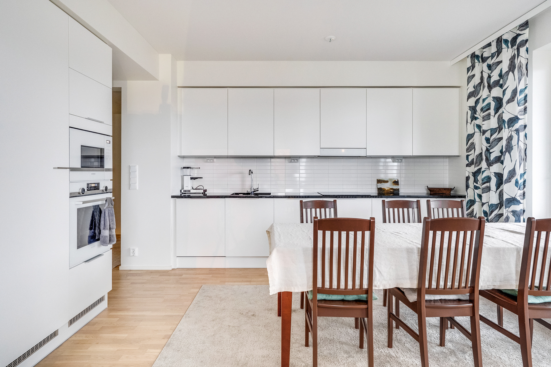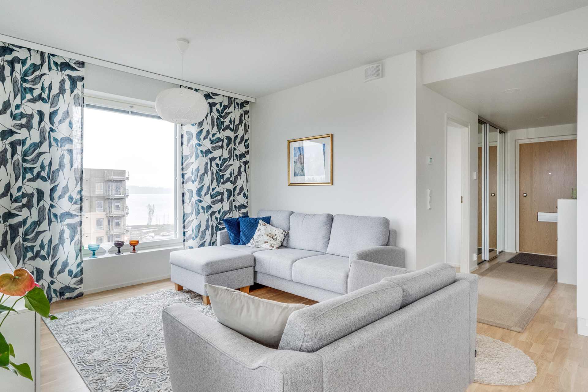 Asunnossa on kaksi makuuhuonetta, jossa toisessa on sisäänkäynti omalle parvekkeelle. Laadukas kylpyhuone omalla saunalla. Kokonaisuuden kruunaa iso lasitettu parveke olohuoneen yhteydessä.