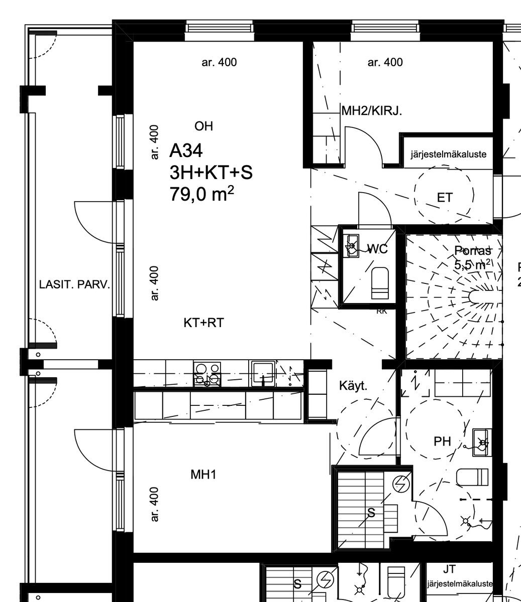 Mahtava kolmio loistavalla pohjalla antaa asujalleen mahdollisuuden mukavaan elämään. Eteisen vieressä on erillinen Wc ja siitä pääsee isoon olohuoneeseen. Olohuoneen yhteydessä on avokeittiö.