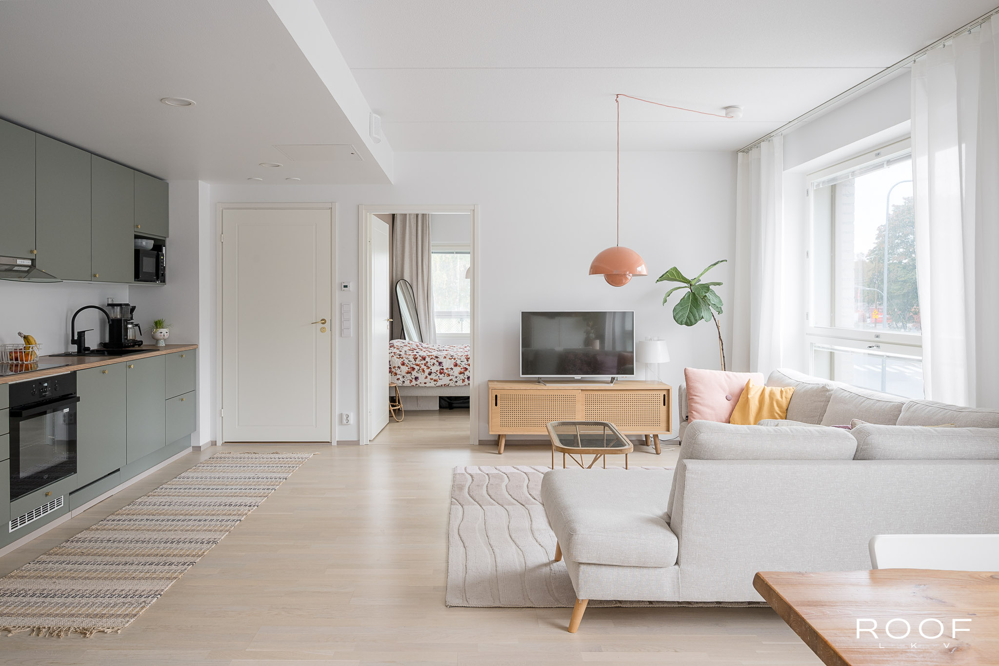 Nyt myynnissä upea kolmio Koskelan vehreässä kaupunginosassa! Tämä moderni ja valoisa asunto sijaitsee vuonna 2022 valmistuneessa talossa, jossa on runsaat mukavuudet. Tässä toisen kerroksen huoneistossa on avokeittiö, joka yhdistyy saumattomasti olohuoneeseen ja kaksi makuuhuonetta, joissa on myös kauniit parkettilattiat. Lasitettu parveke tarjoaa rauhallisen paikan nauttia vehreästä katunäkymästä. Asunnon kylpyhuone on tilava.