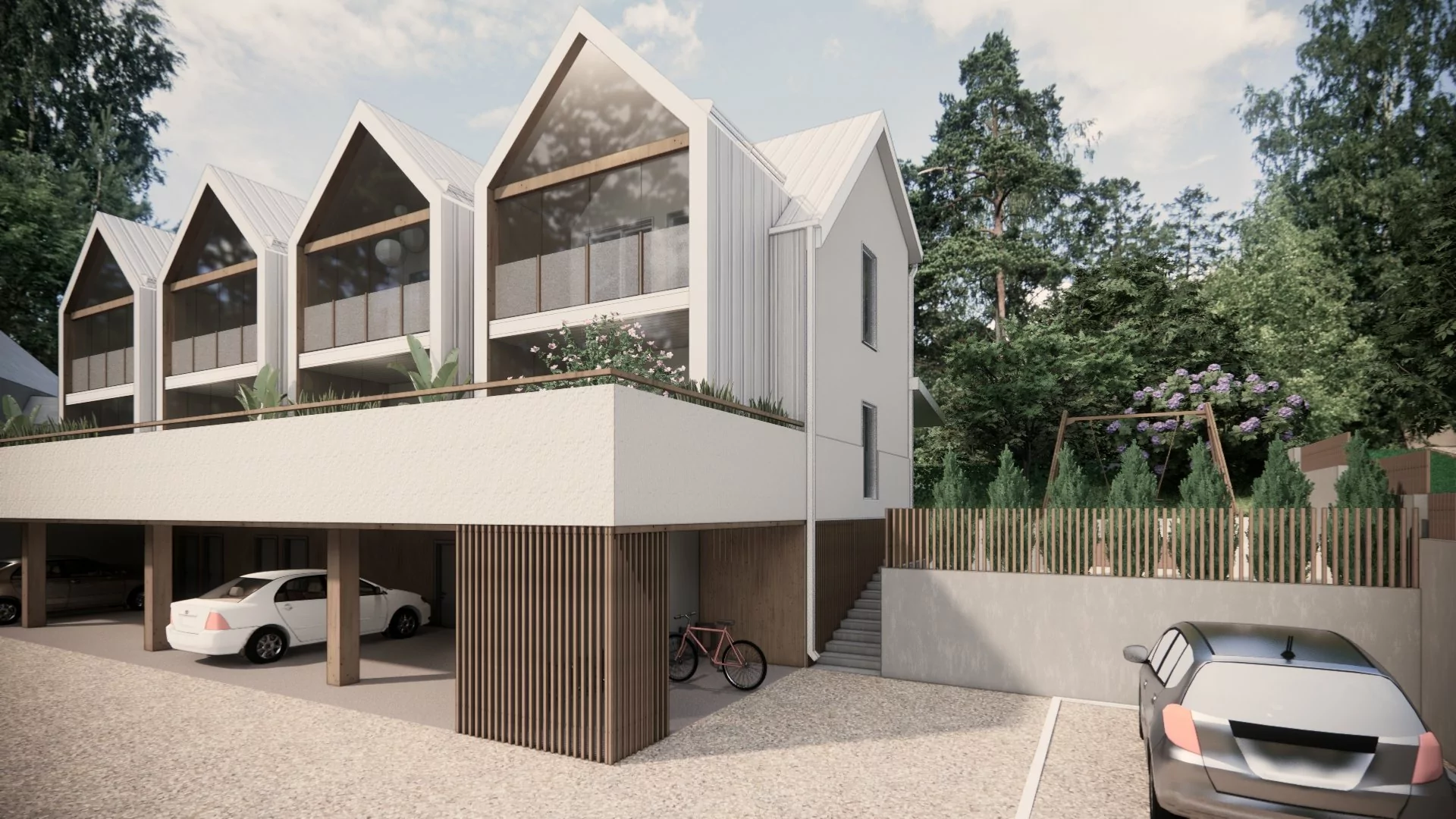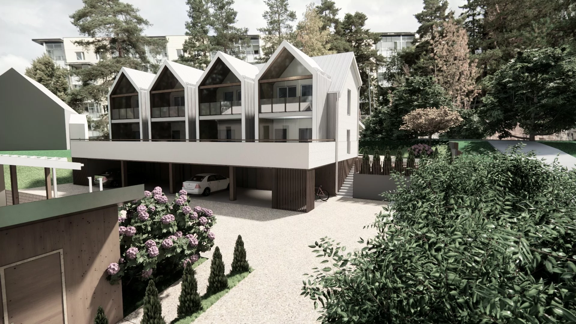 Jakomäentielle Helsingin Jakomäkeen rakentuu kuusi modernia ja huolella suunniteltua kotia omalla tontilla. Täällä yhdistyvät pientaloasumisen rauha ja helppo arki, sillä palvelut ovat lähellä ja liikenneyhteydet toimivat joka suuntaan. A-talo rakentuu paritalona ja B-talo 4 asunnon rivitalo.