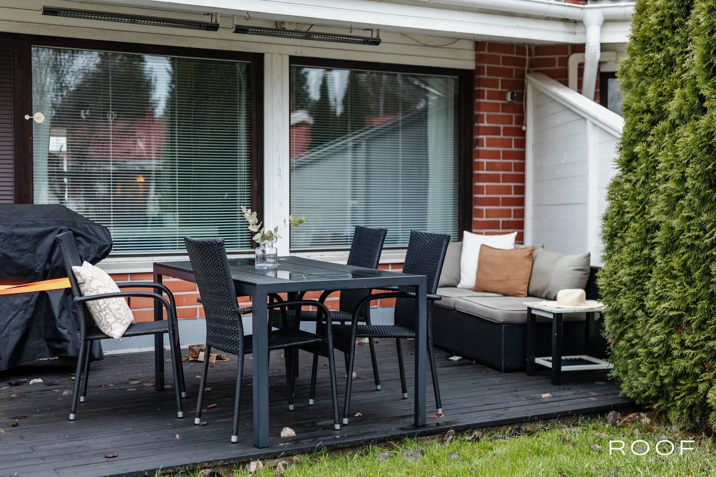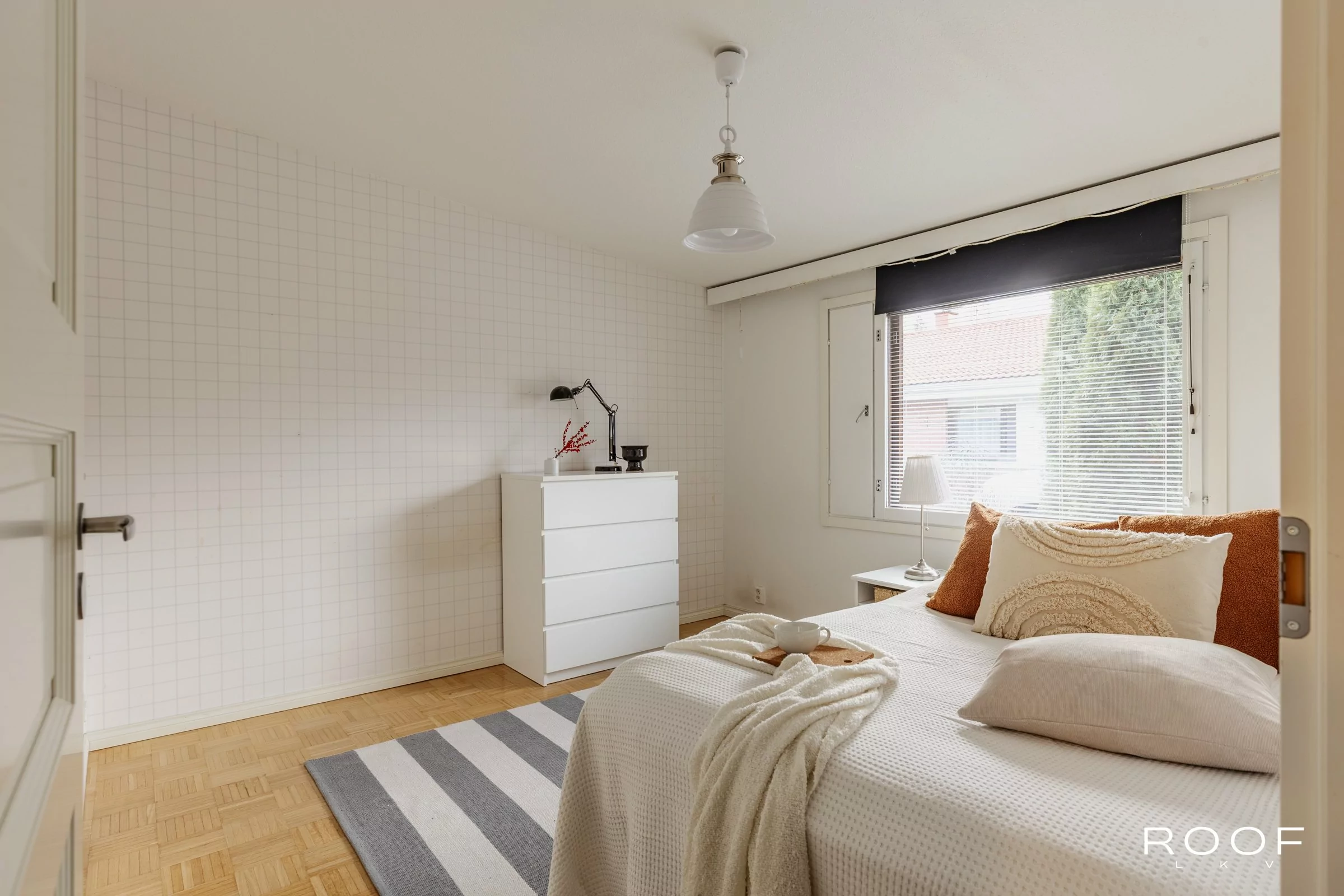 Tässä on toimiva ja viihtyisä rivitalokoti sinulle, joka arvostat tilaa, avaruutta ja valoa. Olohuone ja keittiö ovat yhtä tilaa ja korkeat harjansuuntaiset katot lisäävät tilan tuntua. Isot ikkunat tulvivat valoa sisään. Olohuoneessa on myös takka...
