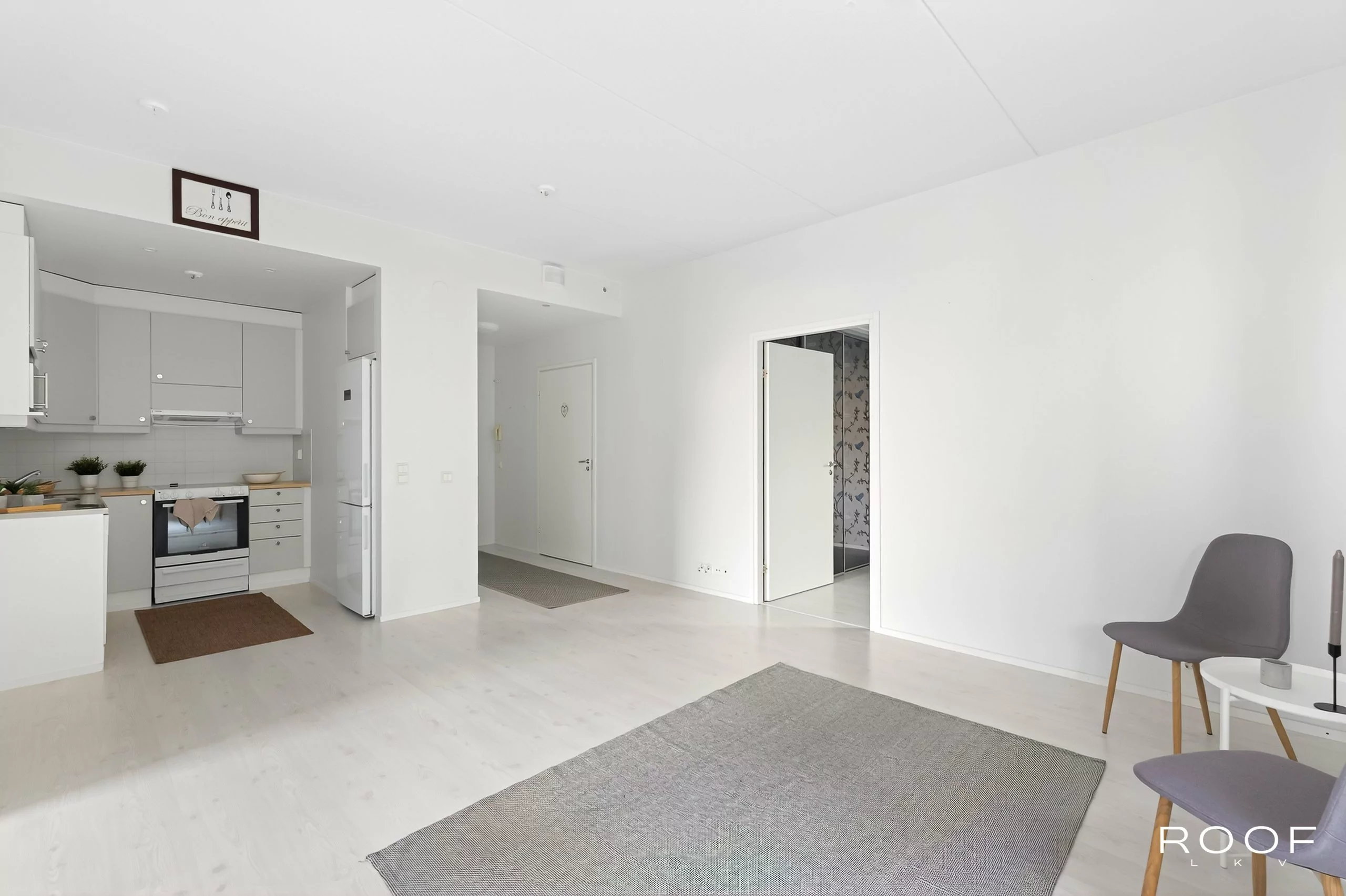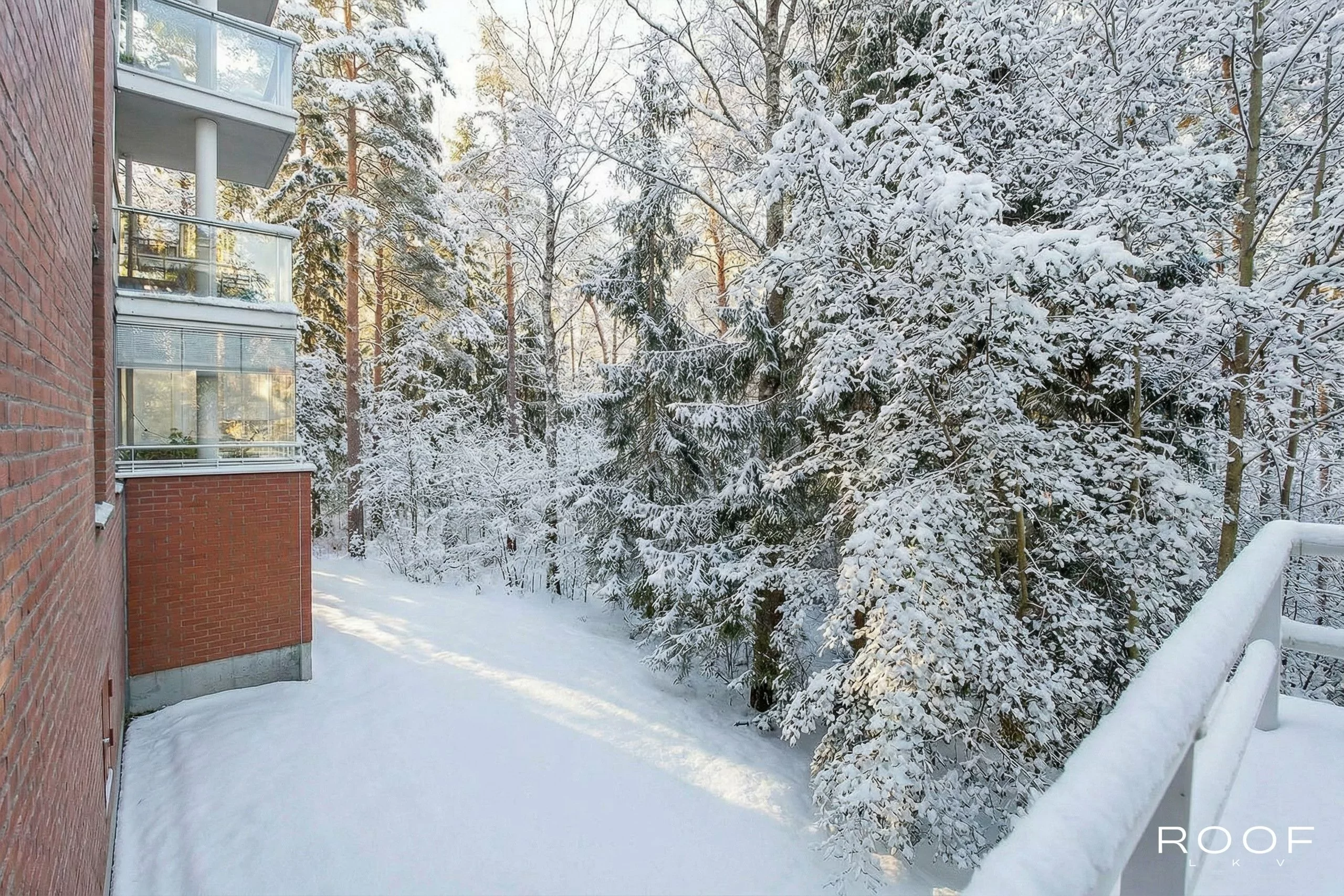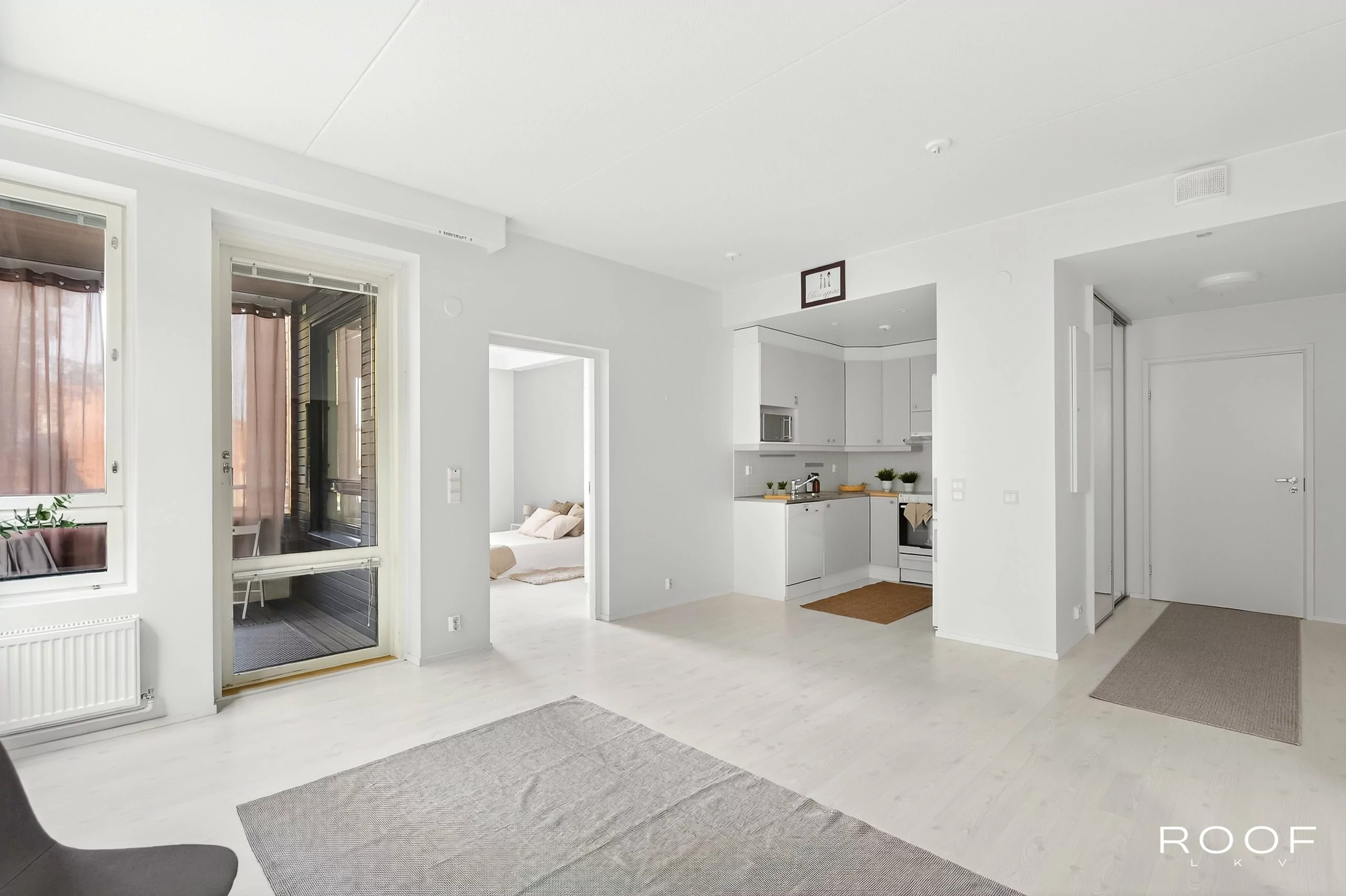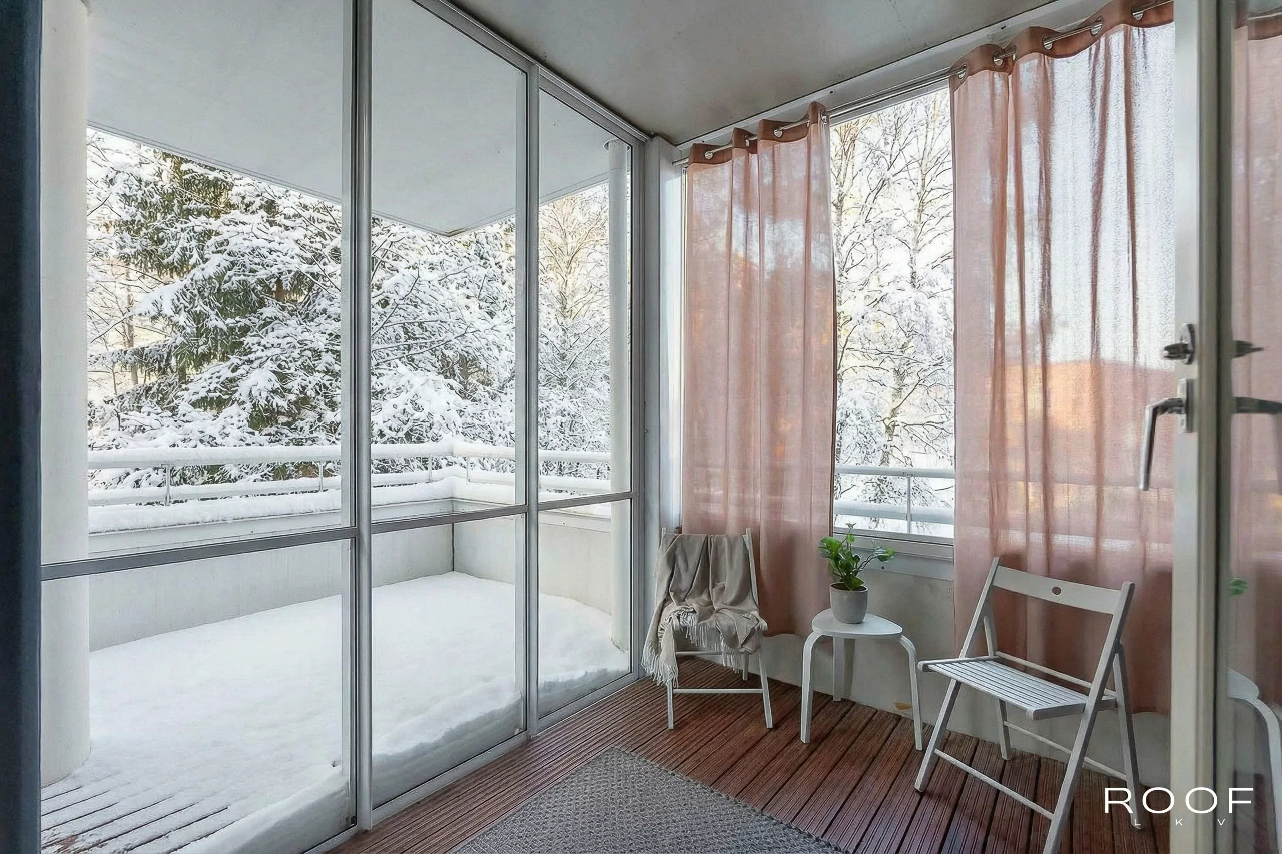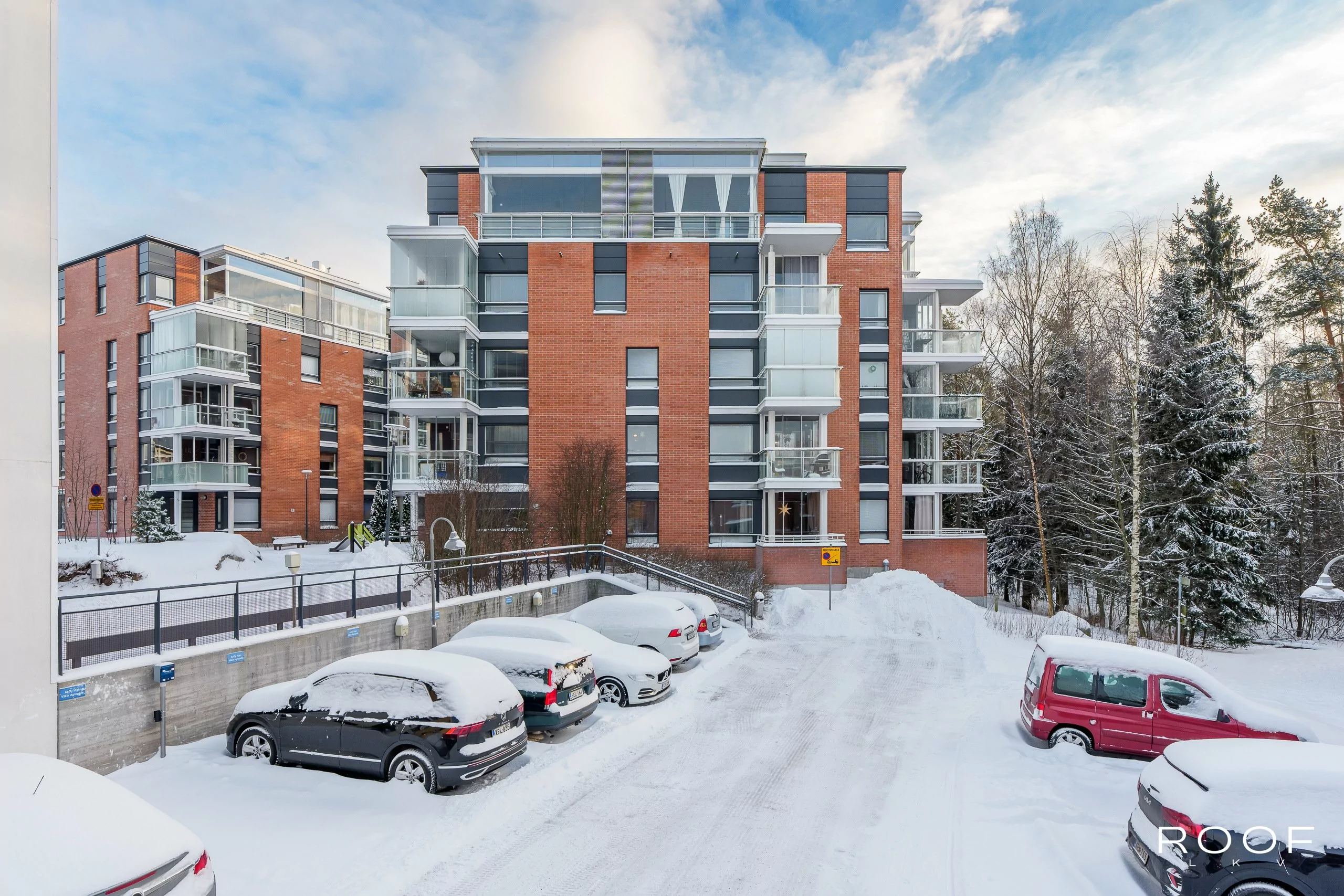 Asunnon olohuone on avara ja valoisa, ja sieltä on käynti tilavalle lasitetulle parvekkeelle, josta avautuvat rauhalliset metsänäkymät. Keittiö on moderni ja vaaleasävyinen ja se on varusteltu nykyaikaisilla kodinkoneilla. Kaksi makuuhuonetta sijaitsevat olohuoneen molemmin puolin, tarjoten rauhalliset omat tilat. Raikkaan vaaleassa kylpyhuoneessa on tilaa pesutornille ja se on varustettu lattialämmityksellä.