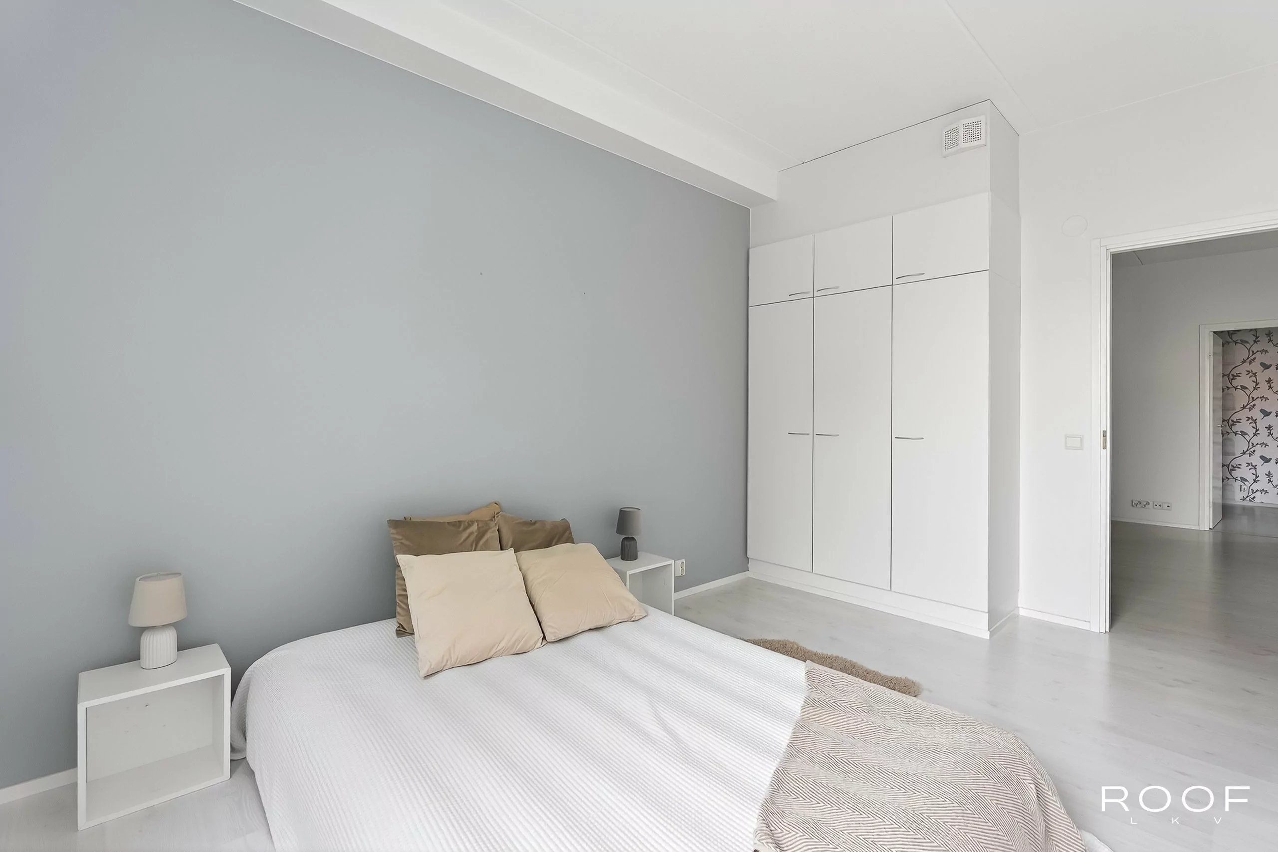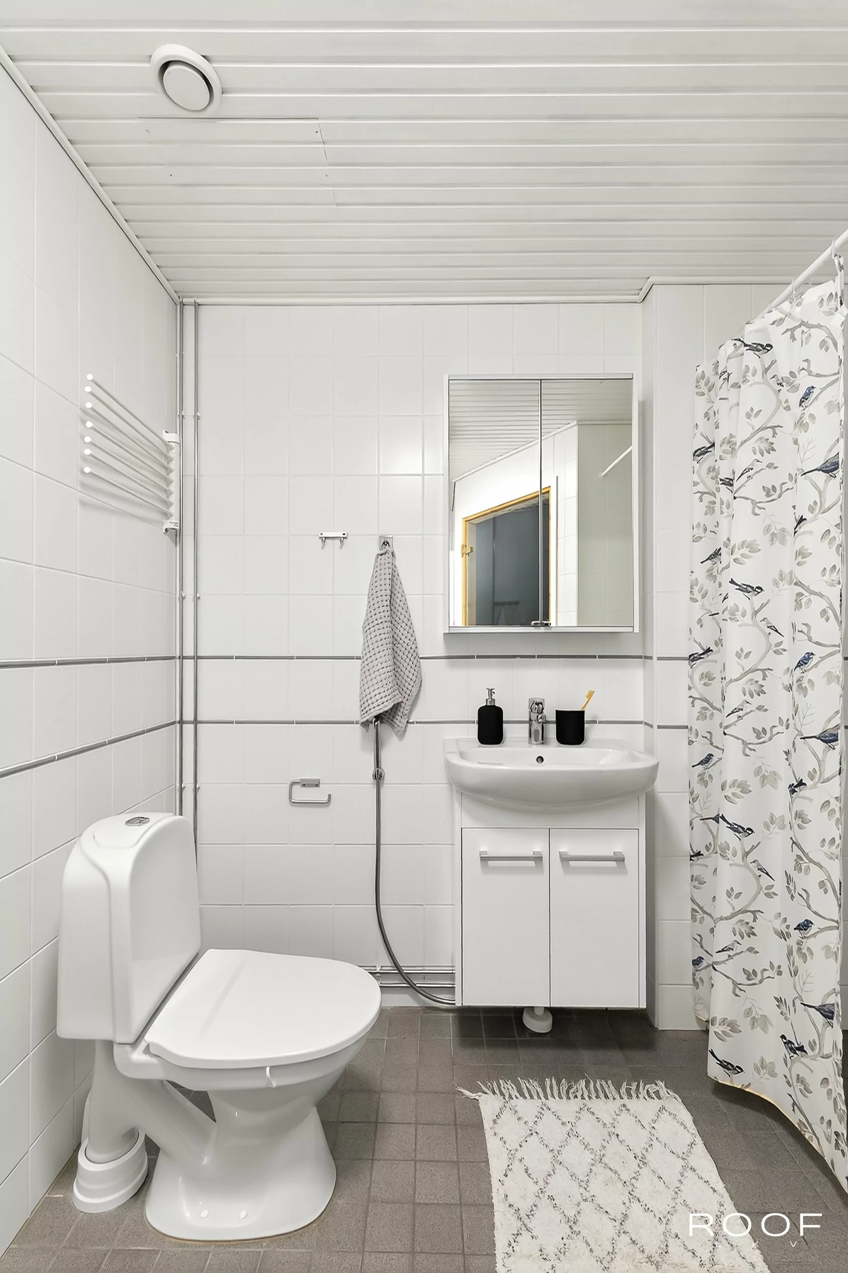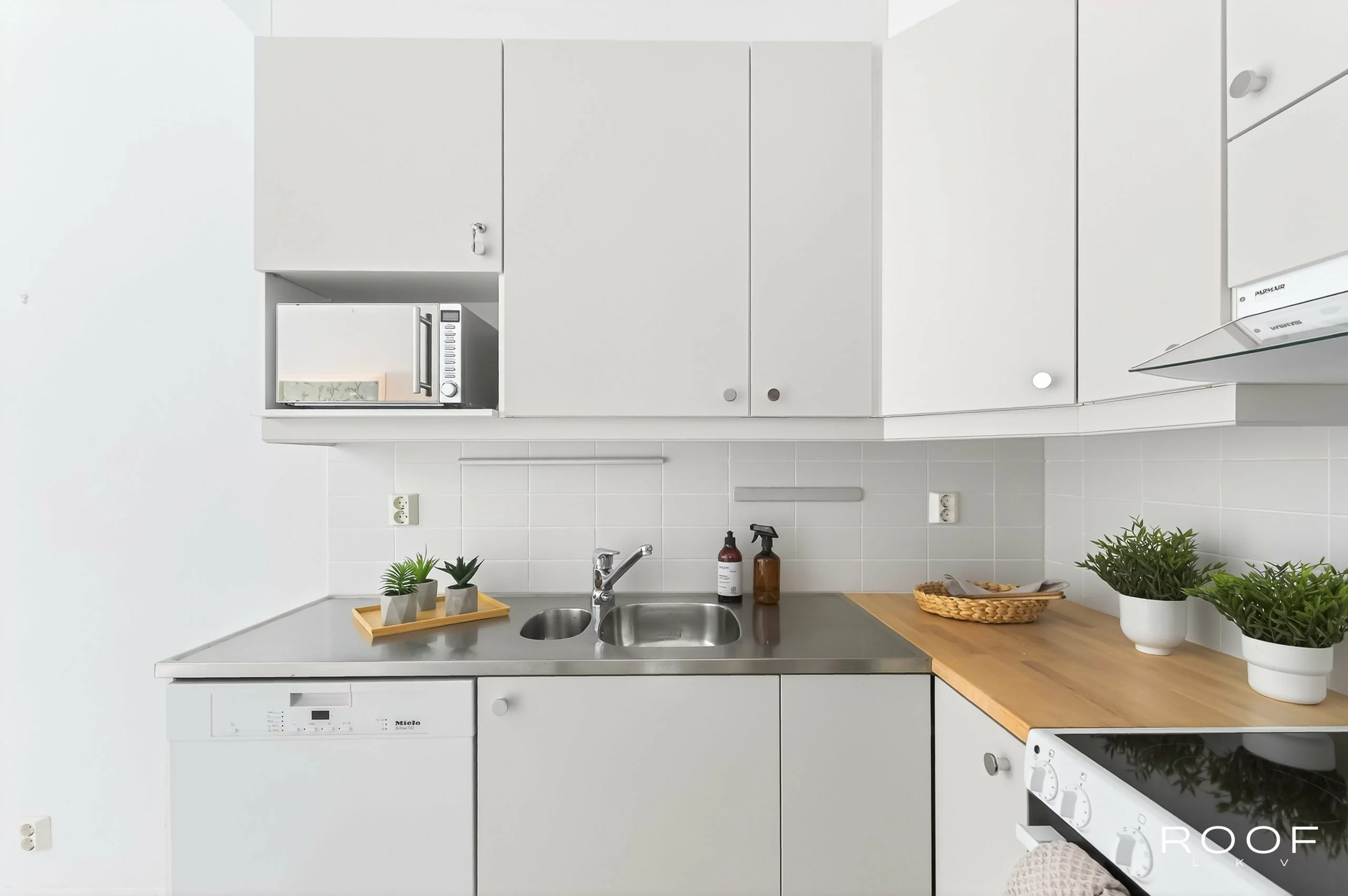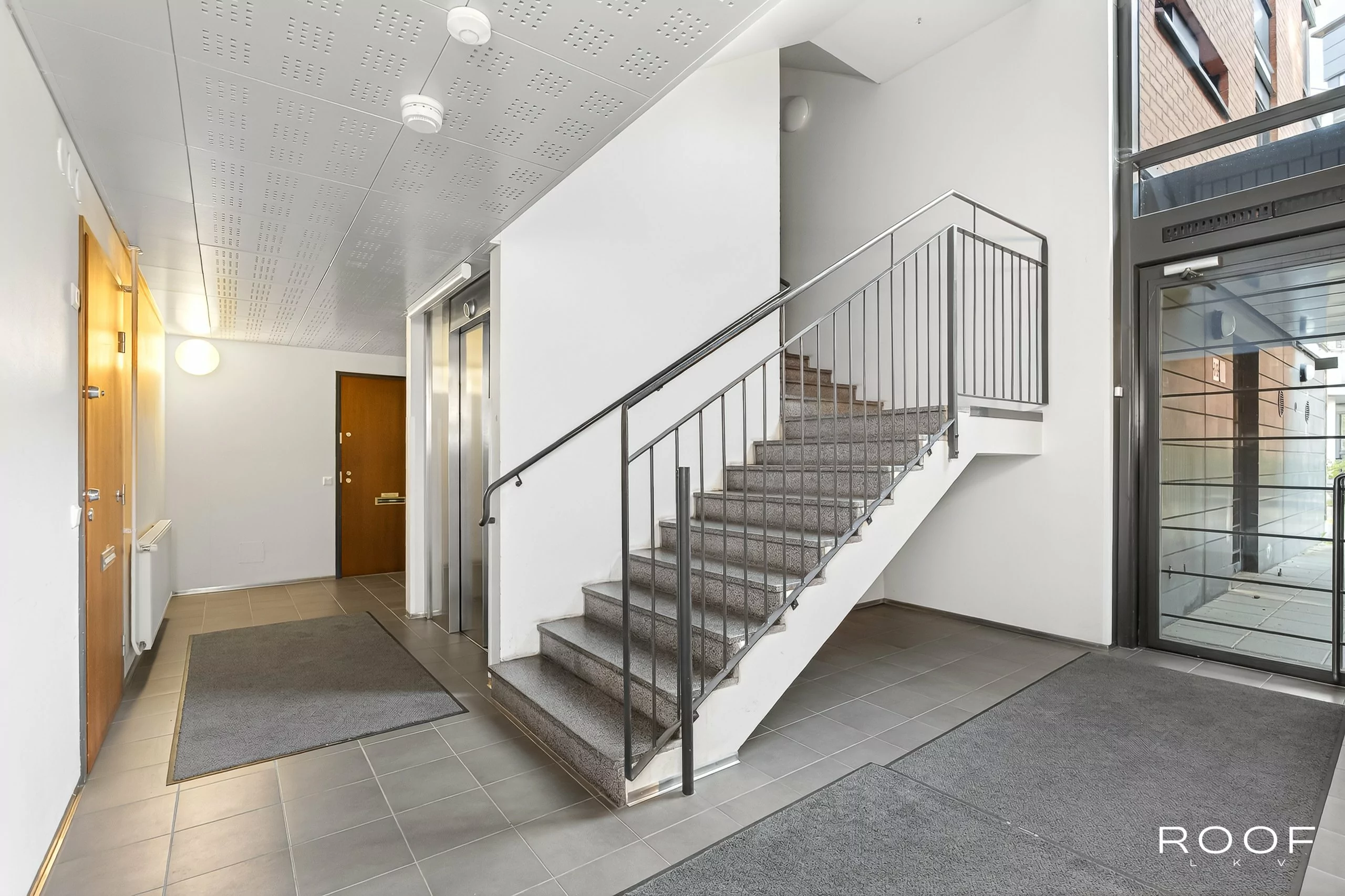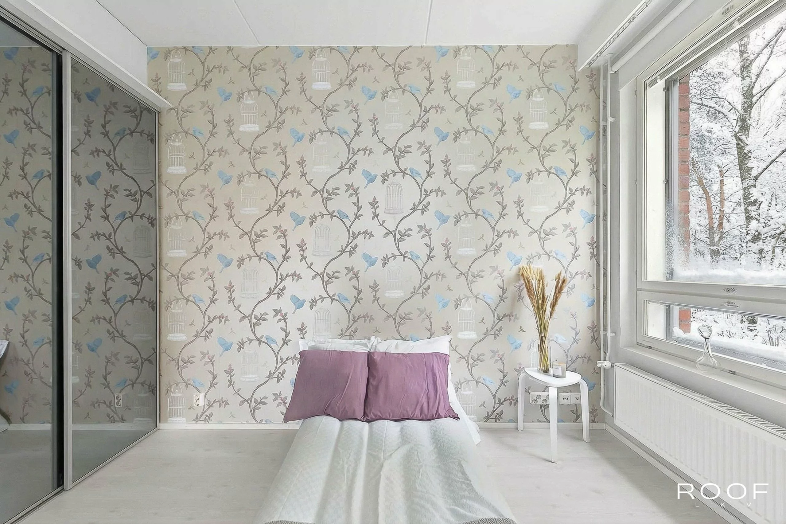 Asunnon olohuone on avara ja valoisa, ja sieltä on käynti tilavalle lasitetulle parvekkeelle, josta avautuvat rauhalliset metsänäkymät. Keittiö on moderni ja vaaleasävyinen ja se on varusteltu nykyaikaisilla kodinkoneilla. Kaksi makuuhuonetta sijaitsevat olohuoneen molemmin puolin, tarjoten rauhalliset omat tilat. Raikkaan vaaleassa kylpyhuoneessa on tilaa pesutornille ja se on varustettu lattialämmityksellä.