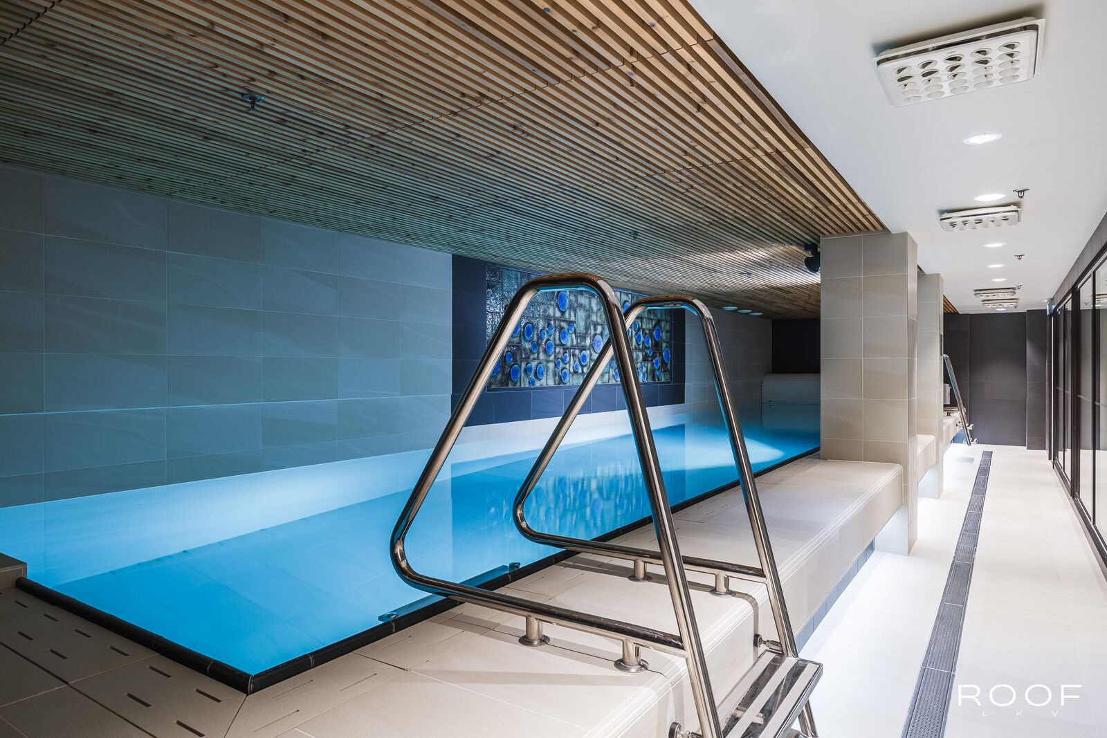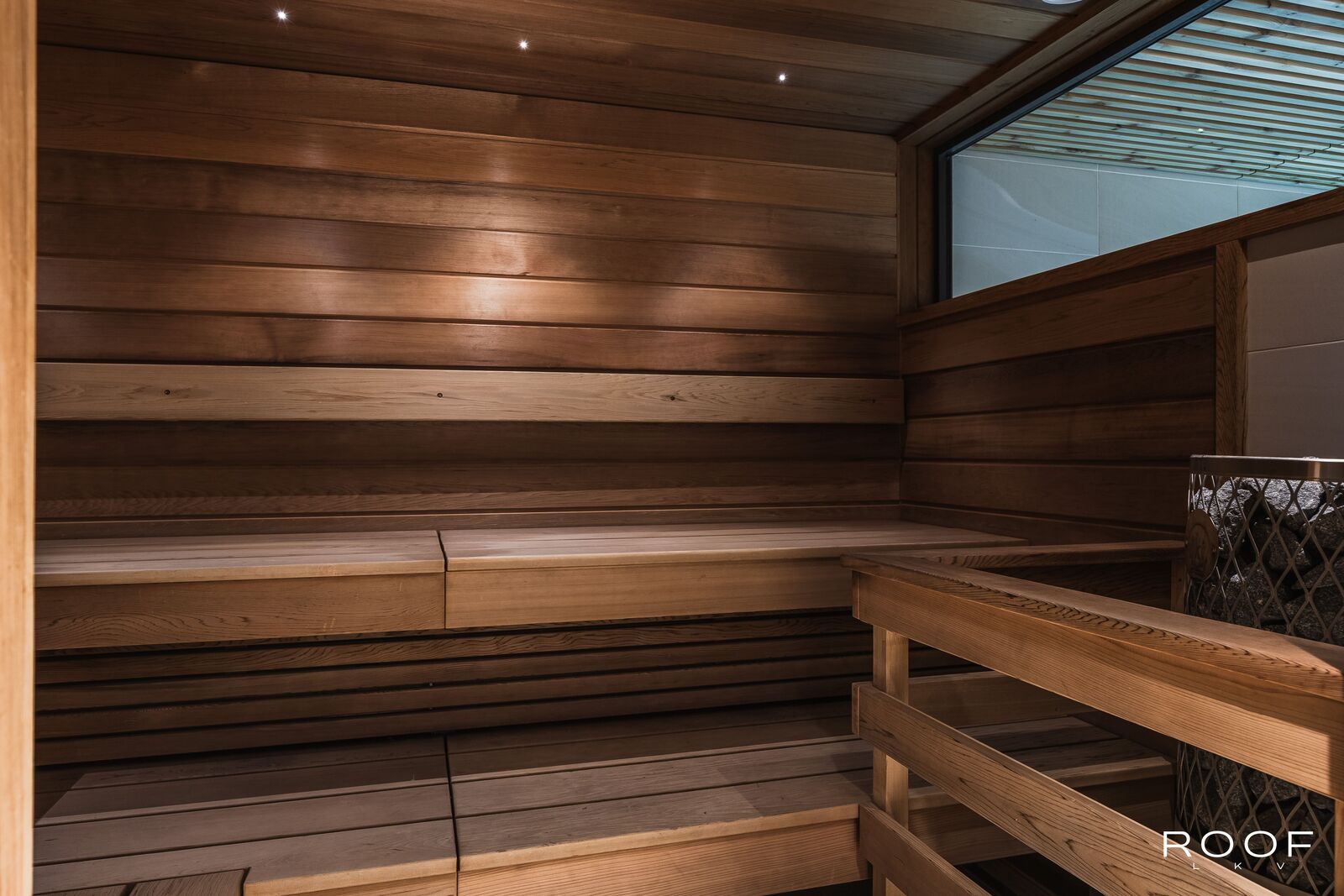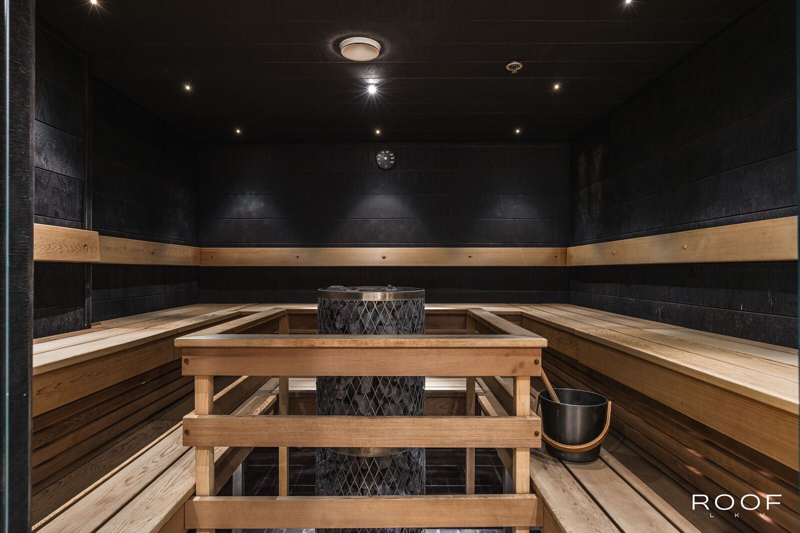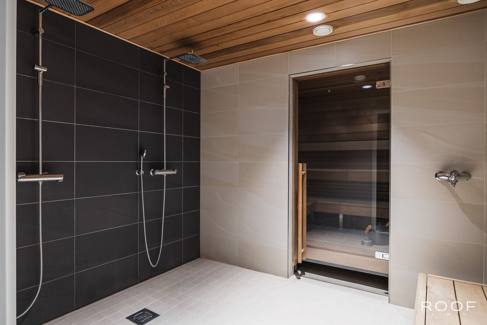 Asukkaiden käytössä on saunaosasto, uima-allas, kuntosali ja liikuntasali – kaikki laadukkaasti toteutettuja ja viihtyisiä.