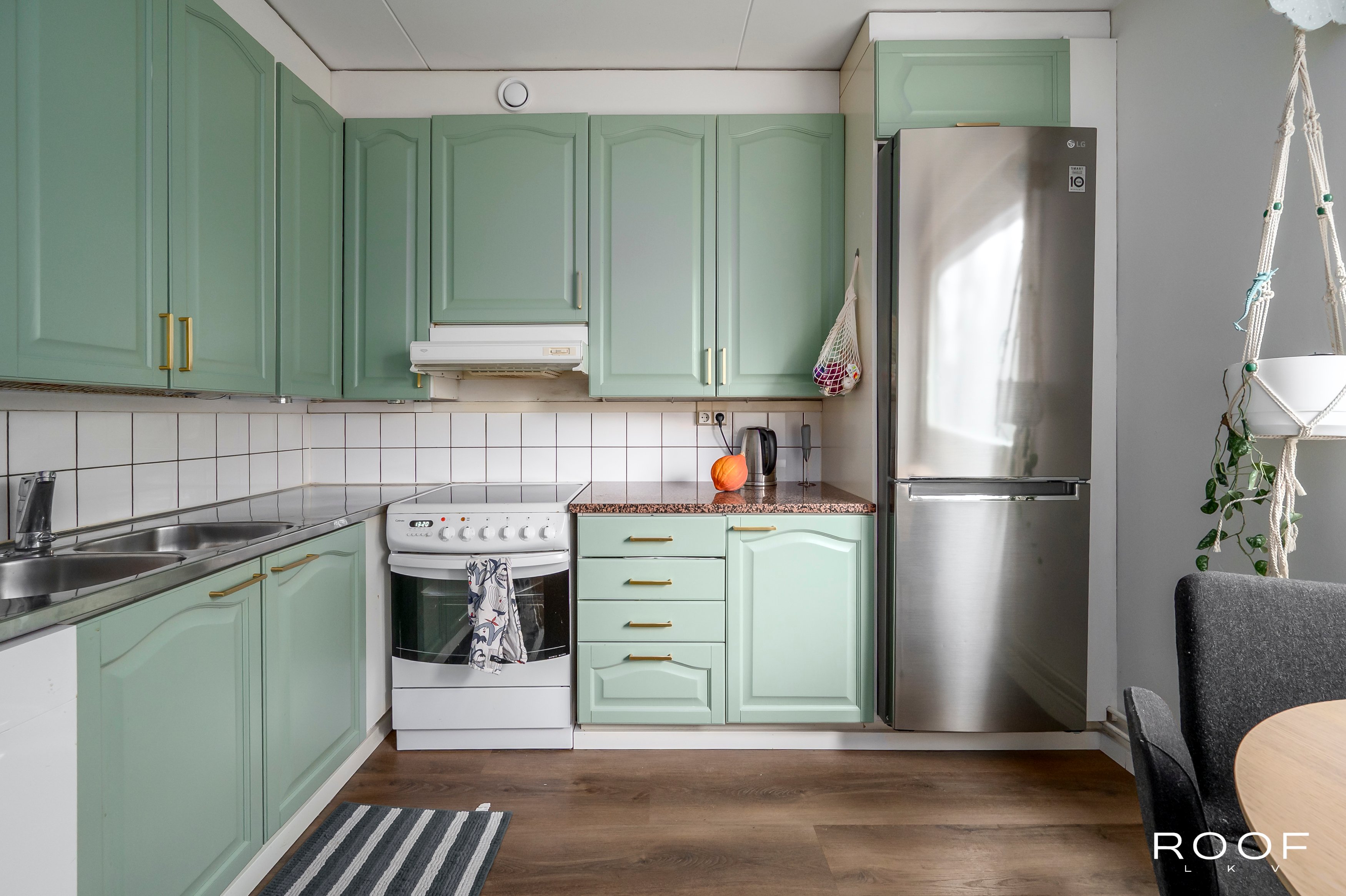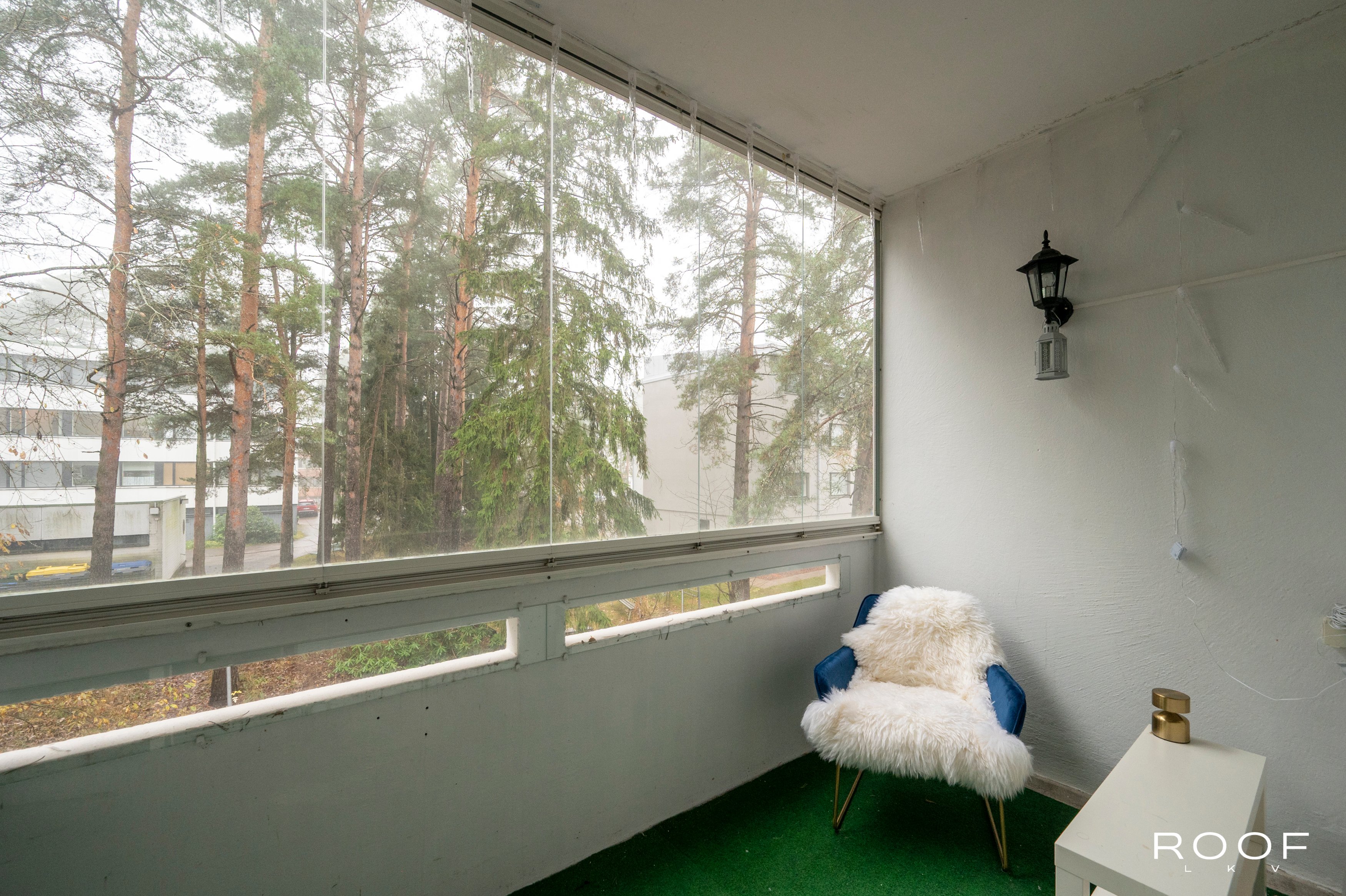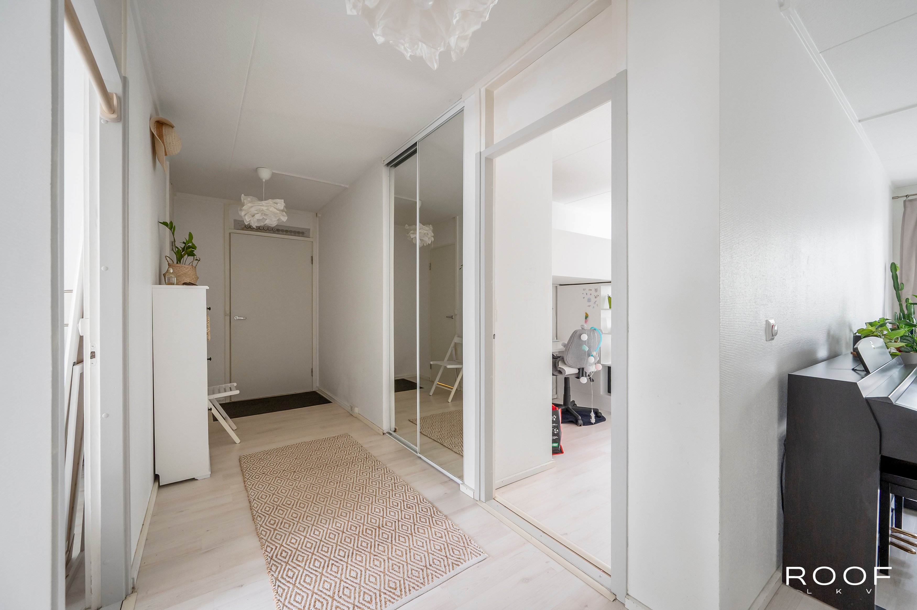 Toisessa kerroksessa sijaitseva viihtyisä päätyhuoneisto tarjoaa rauhallista asumista ja valoa koko päivän. Läpitalon huoneistossa on ikkunat molemmin puolin, ja olohuoneesta on käynti lasitetulle parvekkeelle. Sisäänkäynnin vierestä löytyy tilava vaatehuone, ja käytävällä on kaapisto peililiukuovilla.
