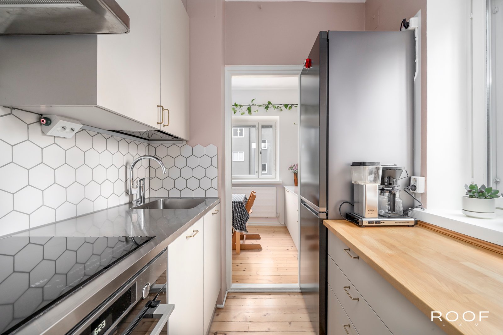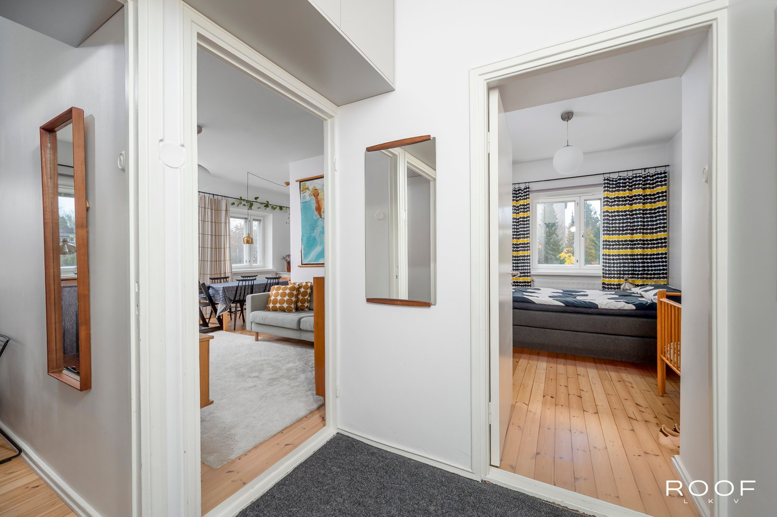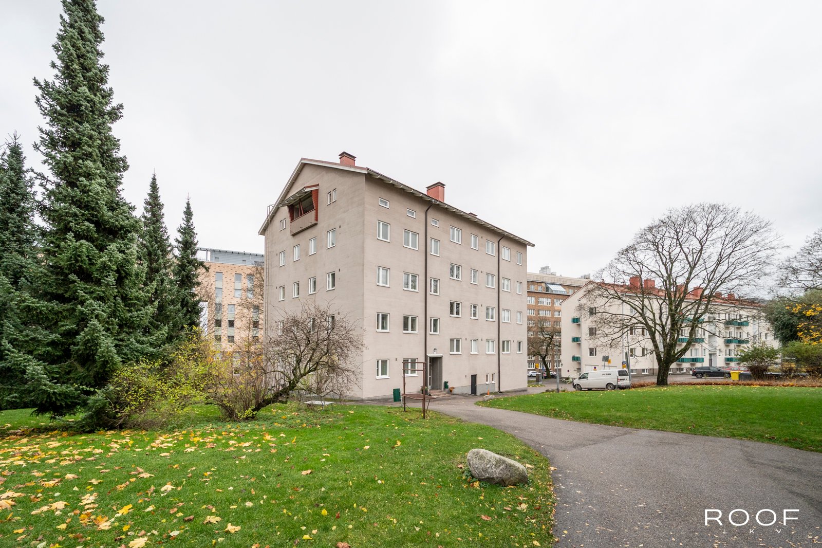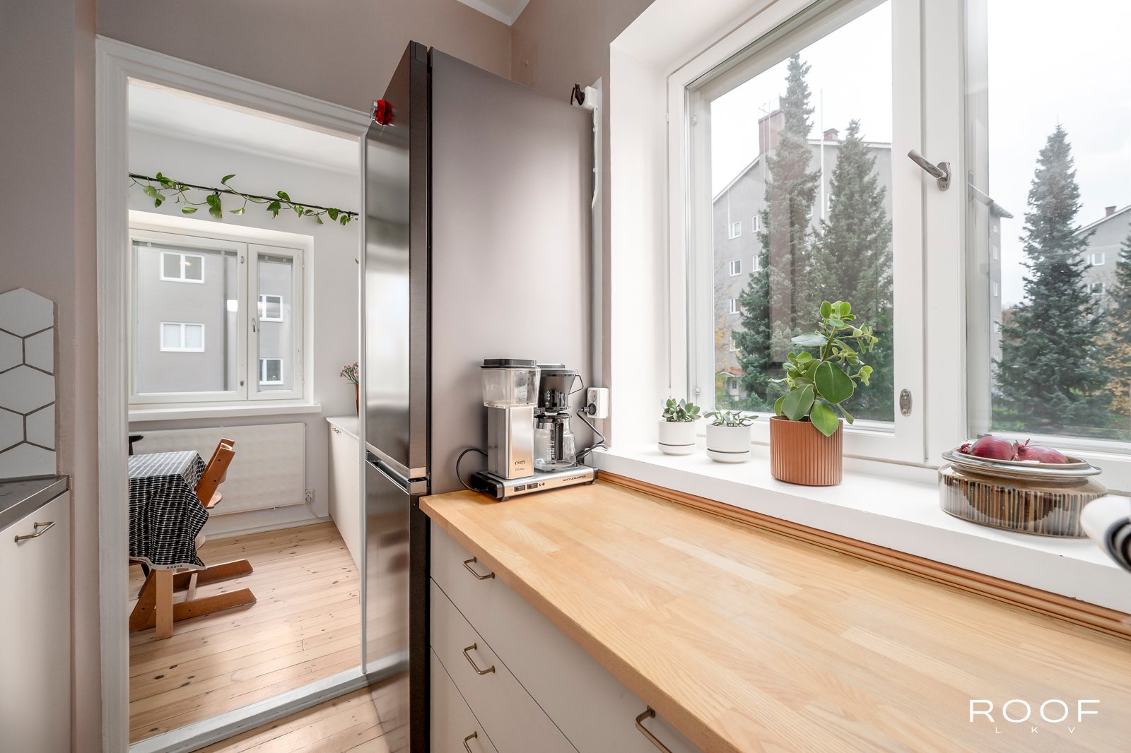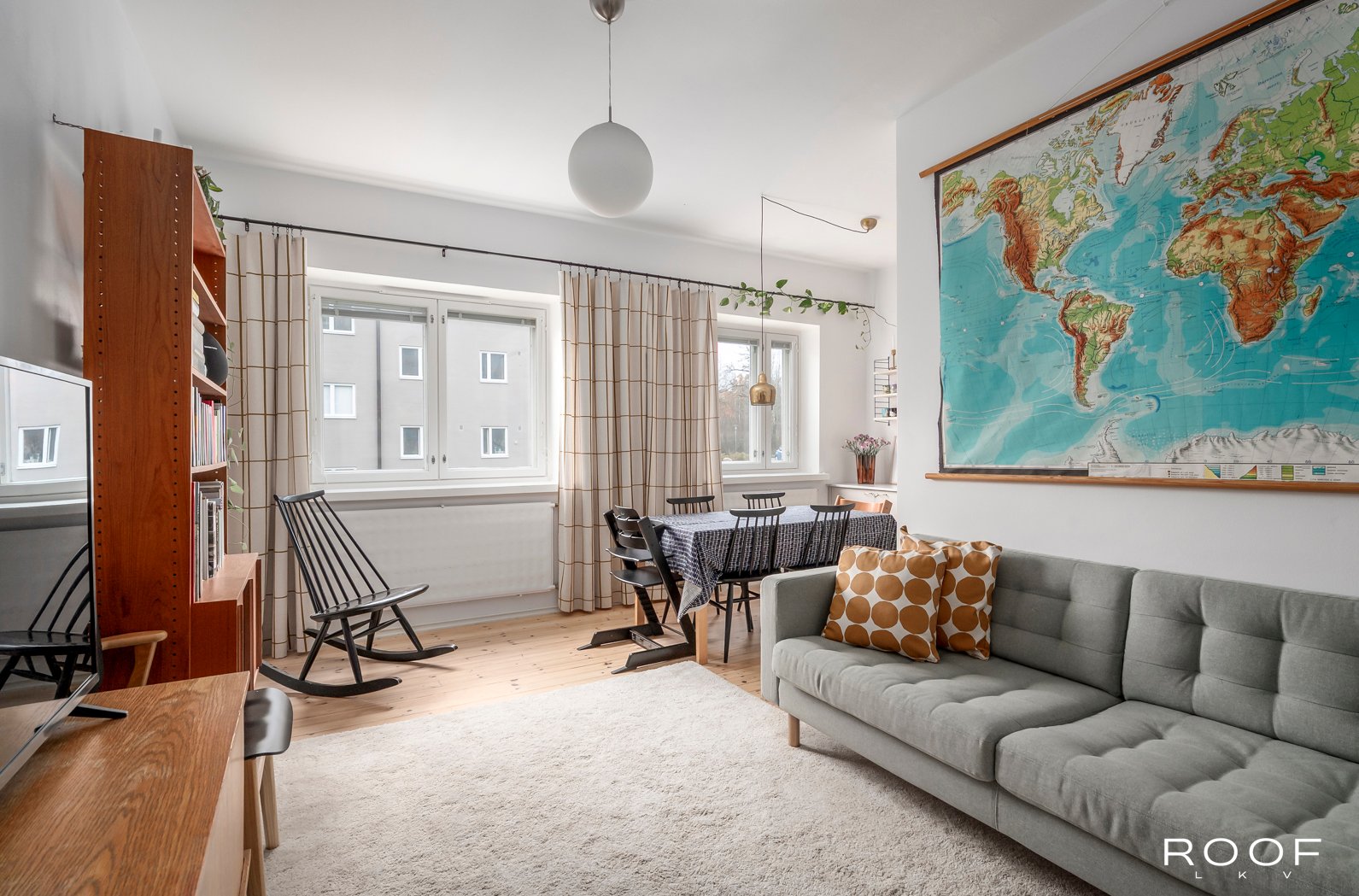 Vuonna 1946 valmistuneessa kivitalossa toisessa kerroksessa sijaitseva kulmahuoneisto, jossa arjen sujuvuus korostuu selkeän pohjaratkaisun ja hyvän sijainnin ansiosta. Ikkunat avautuvat länteen ja pohjoiseen, mikä tuo asuntoon luonnonvaloa eri vuorokaudenaikoina.
