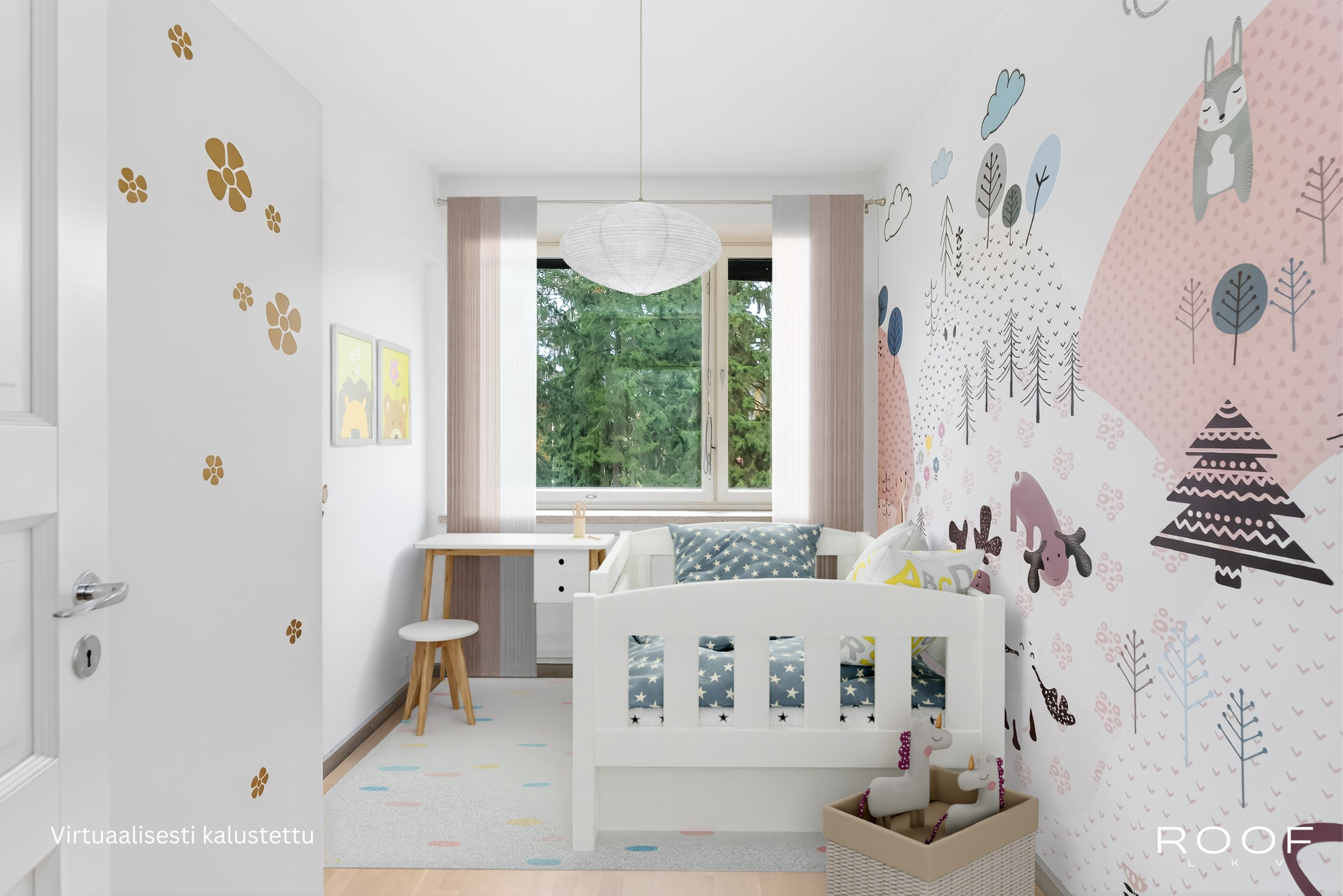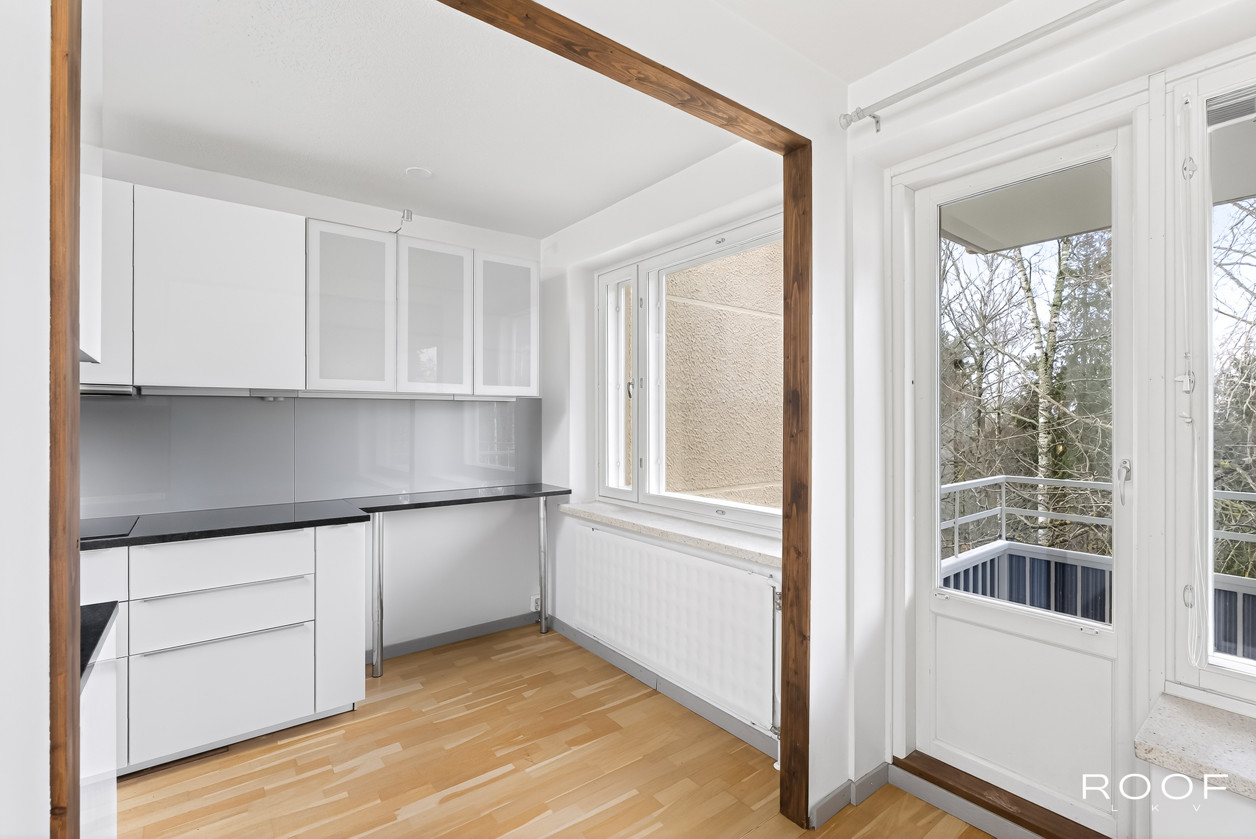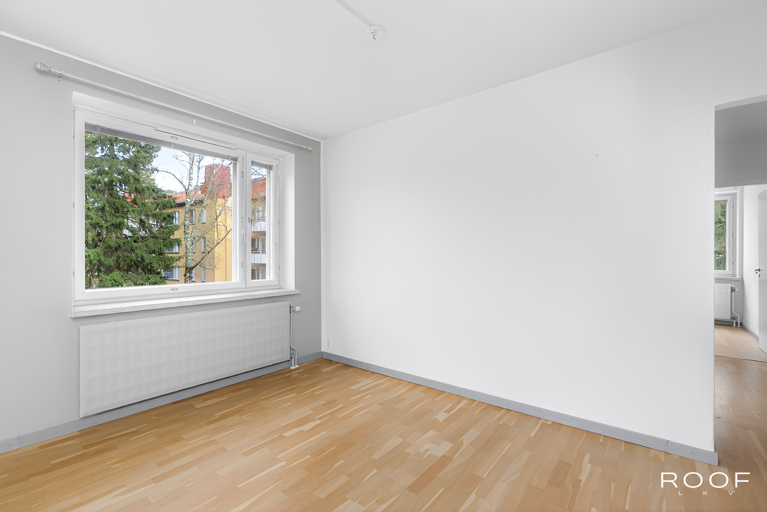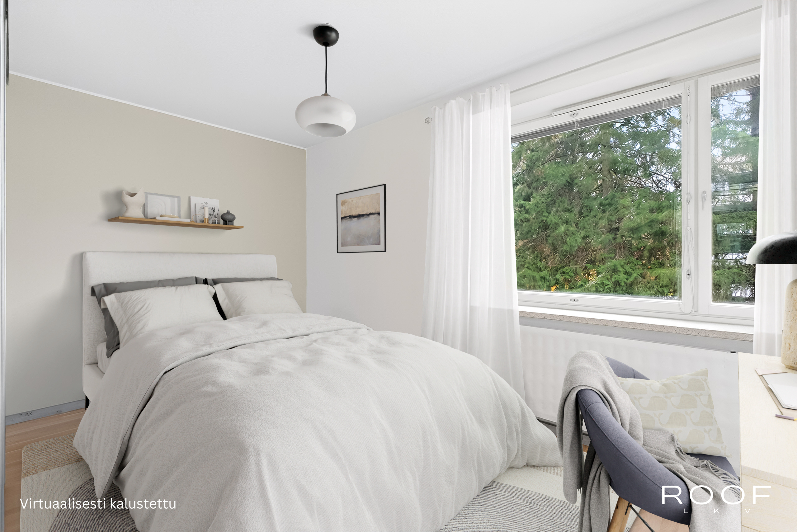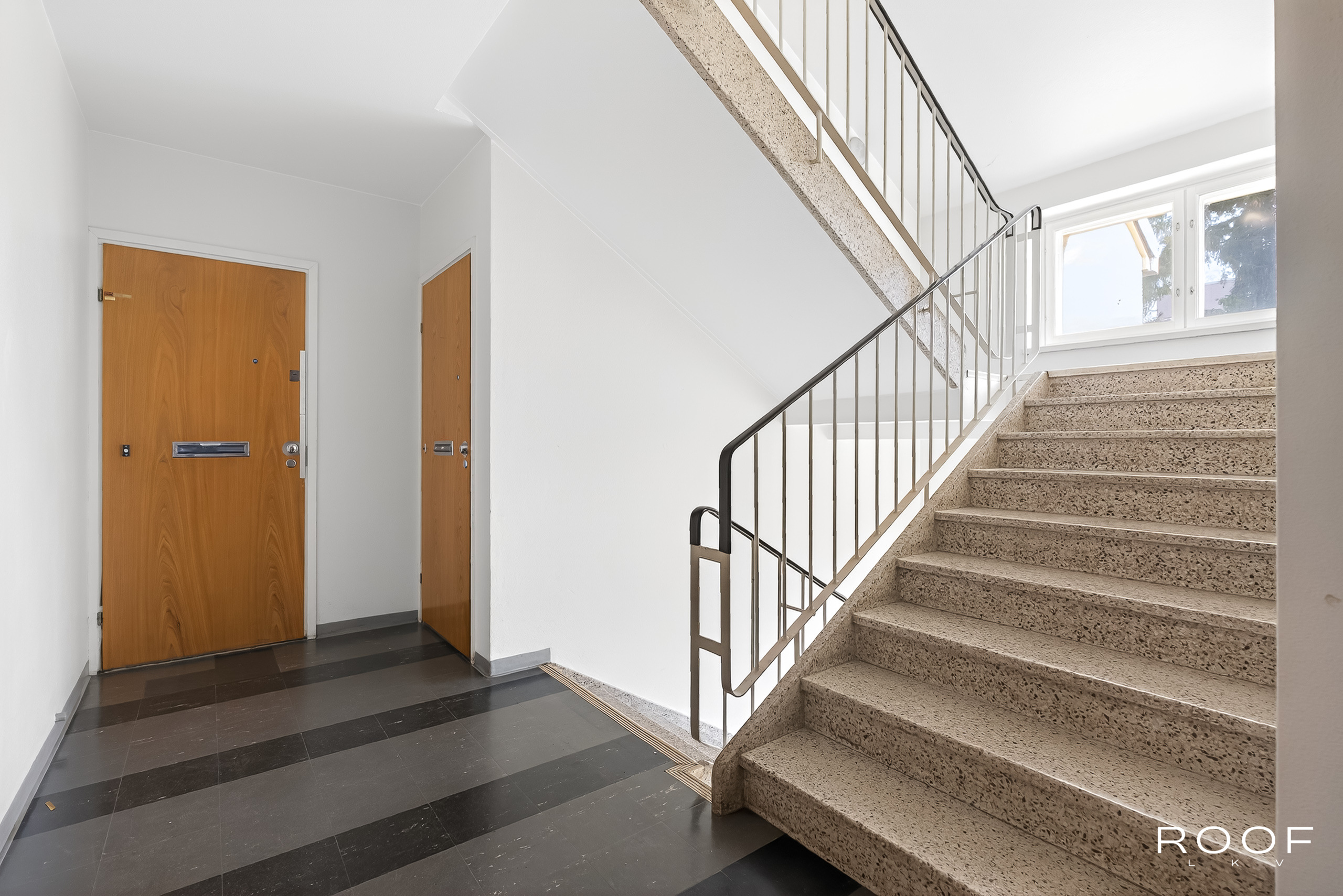 Asunto Oy Puistokaari 6, designed by Niilo Kokko and completed in 1959, is a beautiful example of 1950s modernist architecture, set on its own plot in Lauttasaari. This top-floor corner home features a spacious living room, a stylish kitchen, two bedrooms, a bathroom, and a balcony – all just 800 meters from the metro station. The building underwent a plumbing renovation in 2010, and the façade and balconies have just been renewed (a loan share of just under €30,000 will be allocated later).