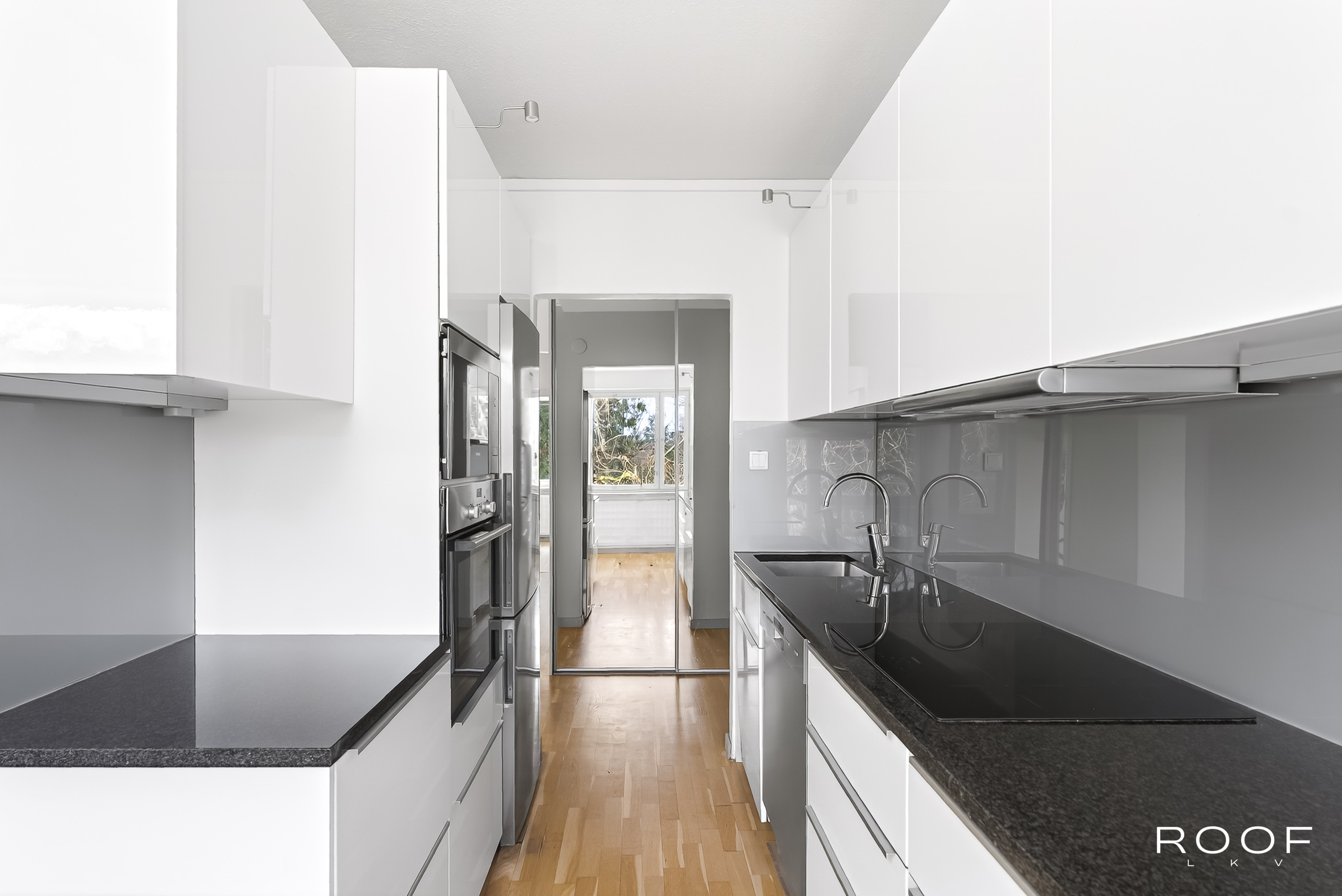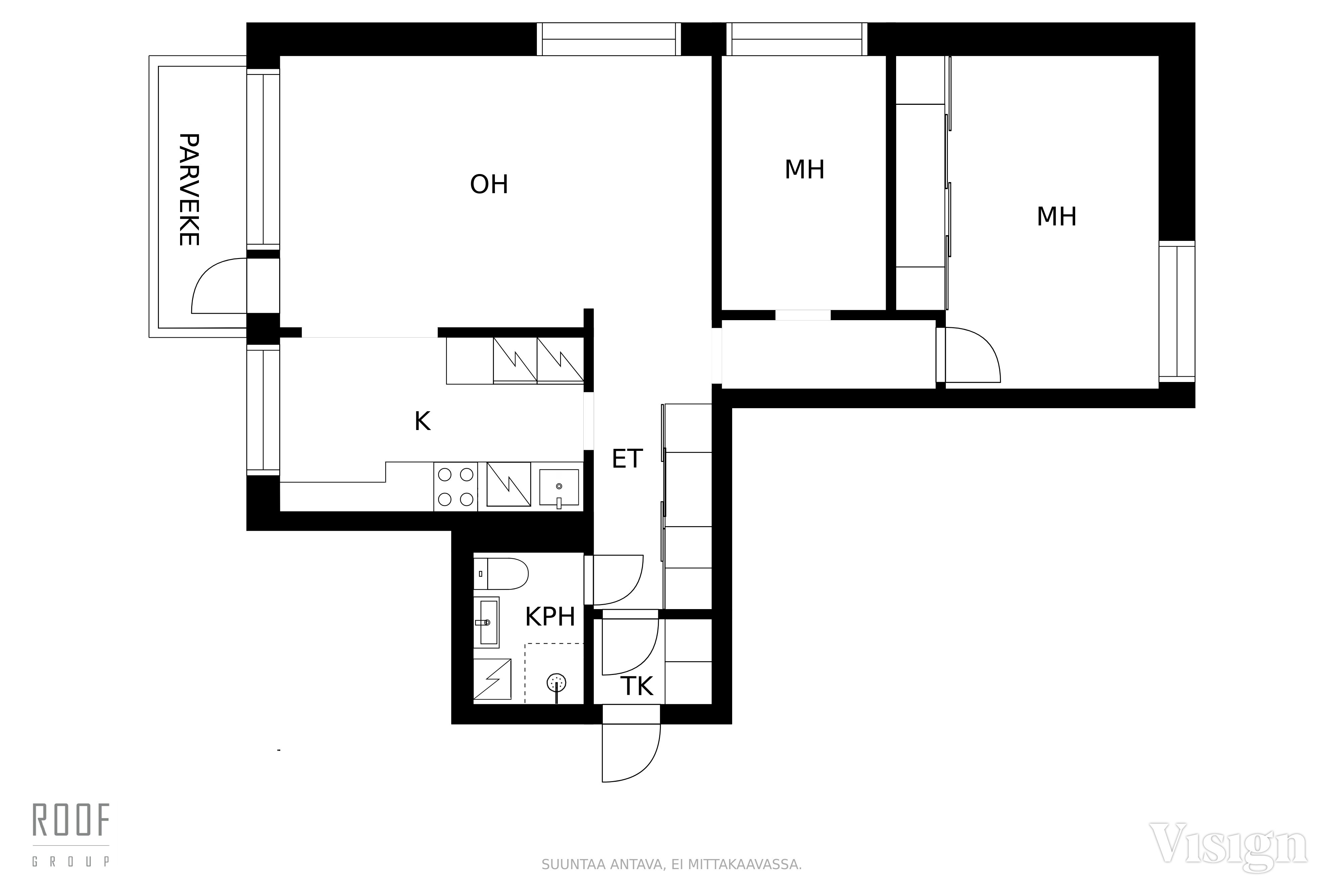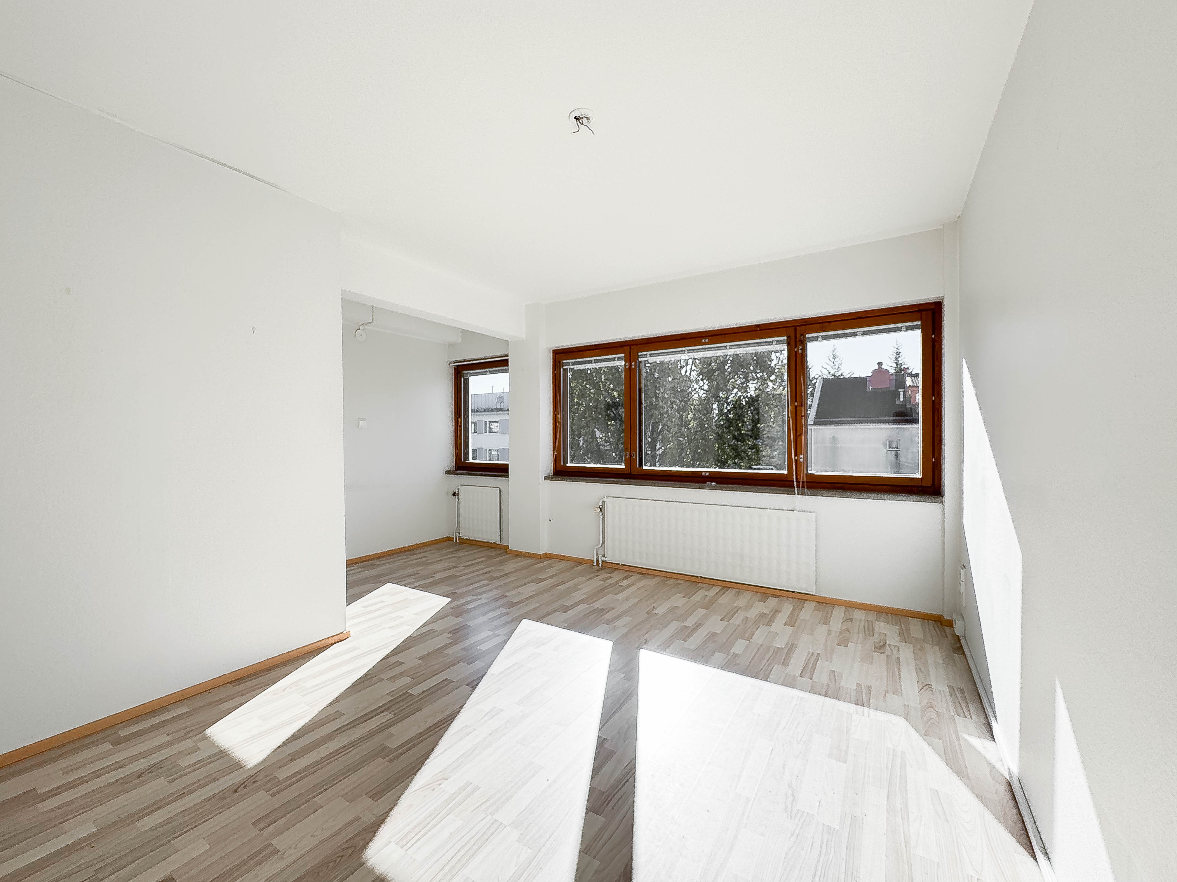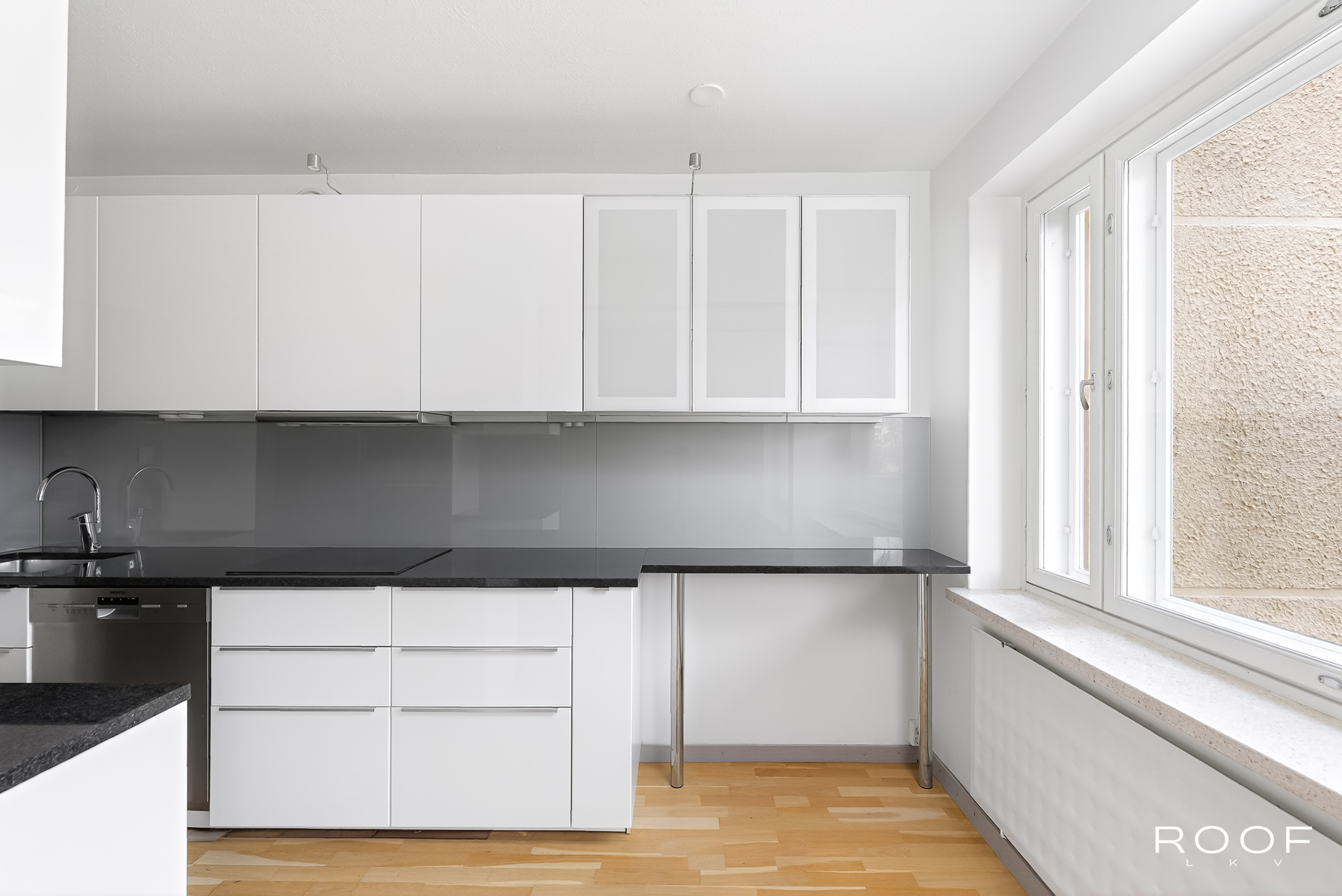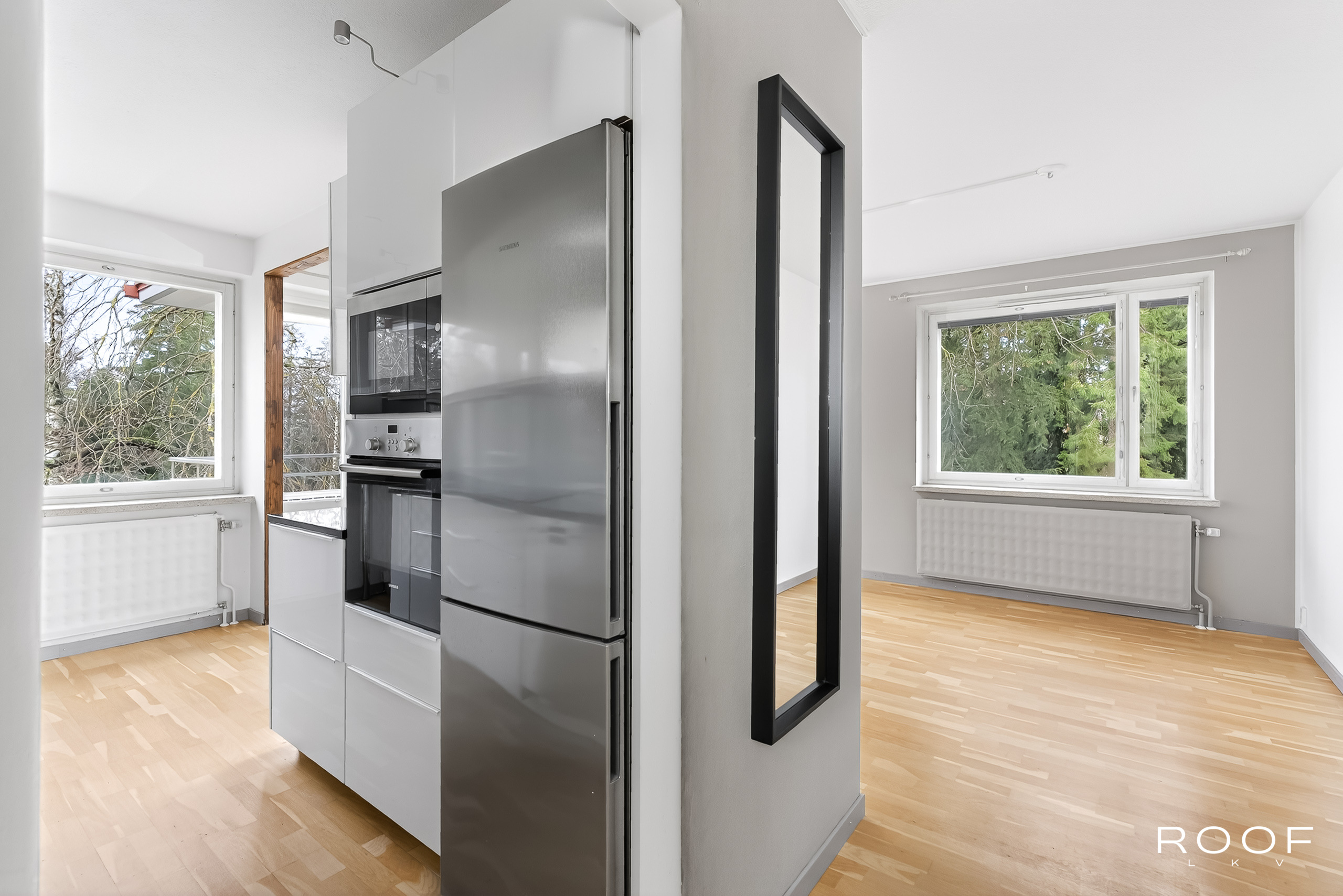 Asunto Oy Puistokaari 6, designed by Niilo Kokko and completed in 1959, is a beautiful example of 1950s modernist architecture, set on its own plot in Lauttasaari. This top-floor corner home features a spacious living room, a stylish kitchen, two bedrooms, a bathroom, and a balcony – all just 800 meters from the metro station. The building underwent a plumbing renovation in 2010, and the façade and balconies have just been renewed (a loan share of just under €30,000 will be allocated later).