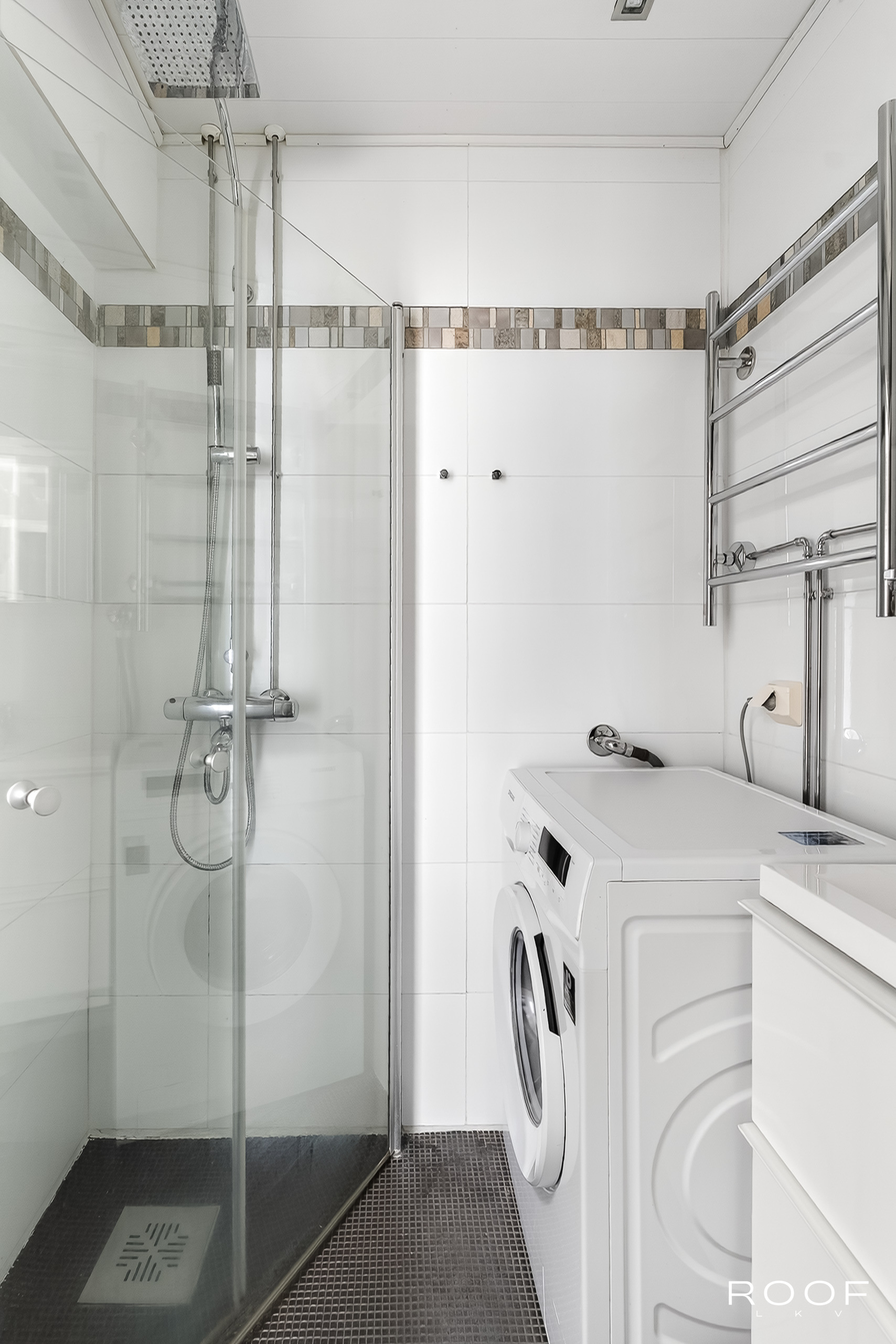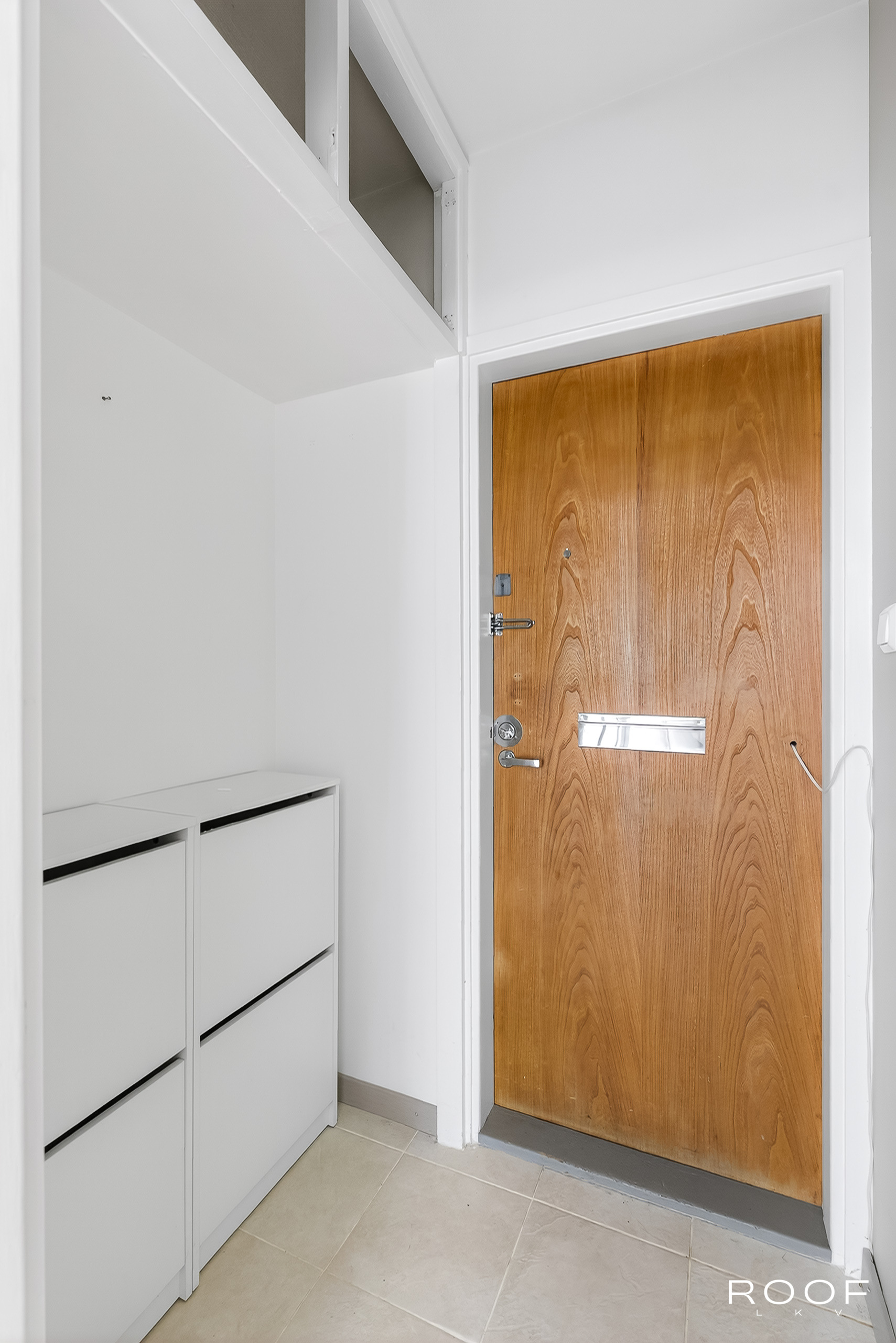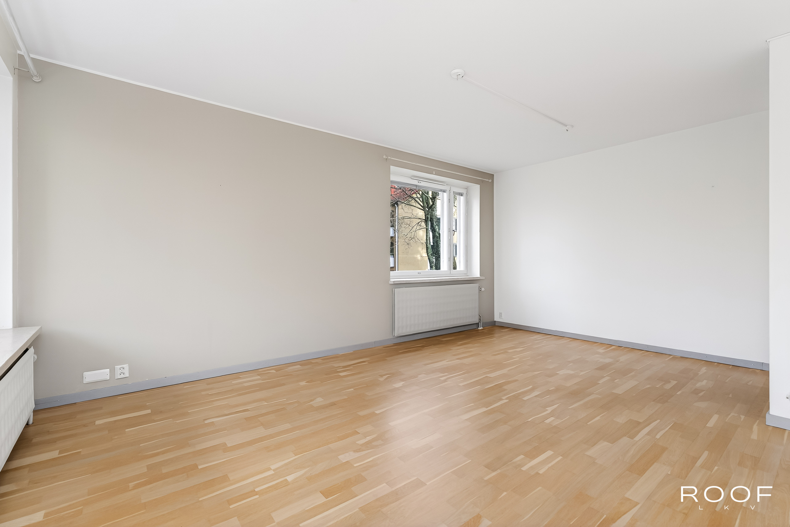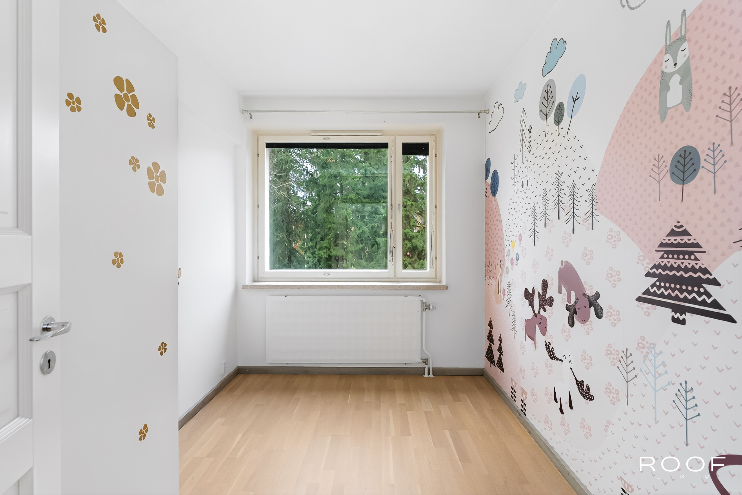 Itse asunto on toimiva ylimmän kerroksen kulmakolmio. Vaikka huoneiston pinnat on lähivuosina päivitetty nykyaikaa vastaaviksi, on 50-luvun lämminhenkisyys säilynyt: Suuret ikkunat kolmella sivulla saavat valon tulvimaan sisään, keittiö kivitasoineen on sekä käytännöllinen että tyylikäs kun taas asunnon tilavalla parvekkeella on mukavaa nauttia kesäisin lintujen laulusta sekä lehtien havinasta.