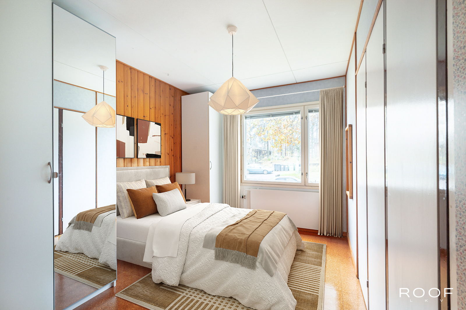 Asunnossa on kaksi makuuhuonetta, joista toinen on äänieristetty ja soveltuu mainiosti esimerkiksi työhuoneeksi. Keittiössä on modernit laitteet, ja olohuoneesta on käynti parvekkeelle, josta avautuu näkymät vehreälle pihalle. Kylpyhuone on remontoitu ja varustettu kaikilla tarvittavilla mukavuuksilla.
