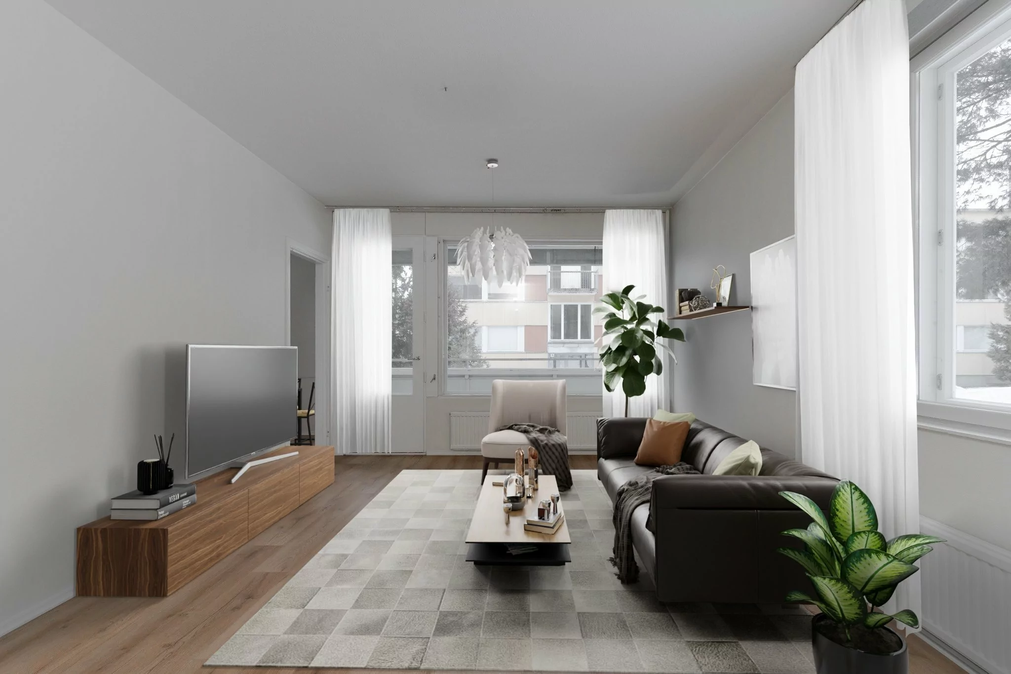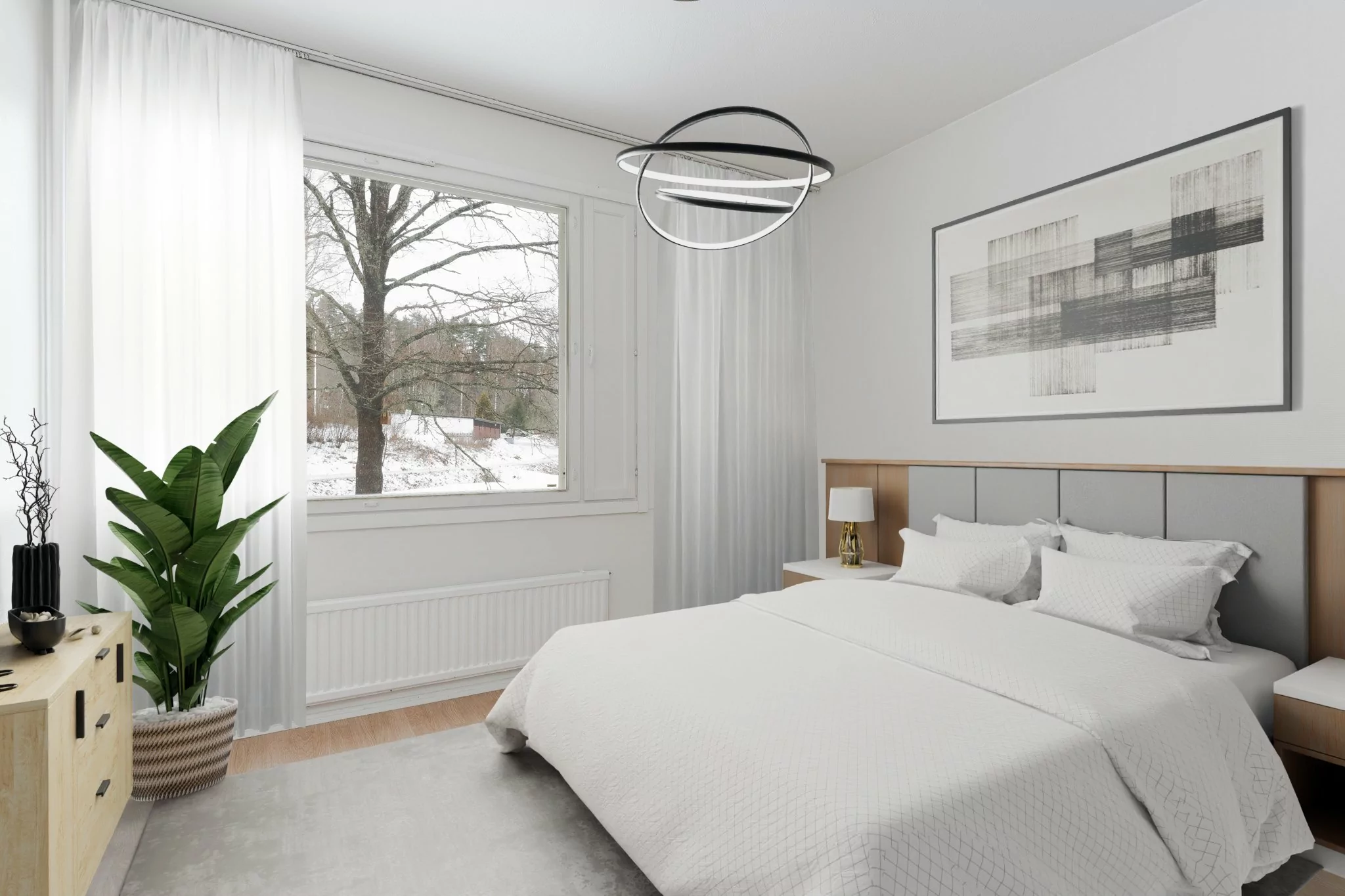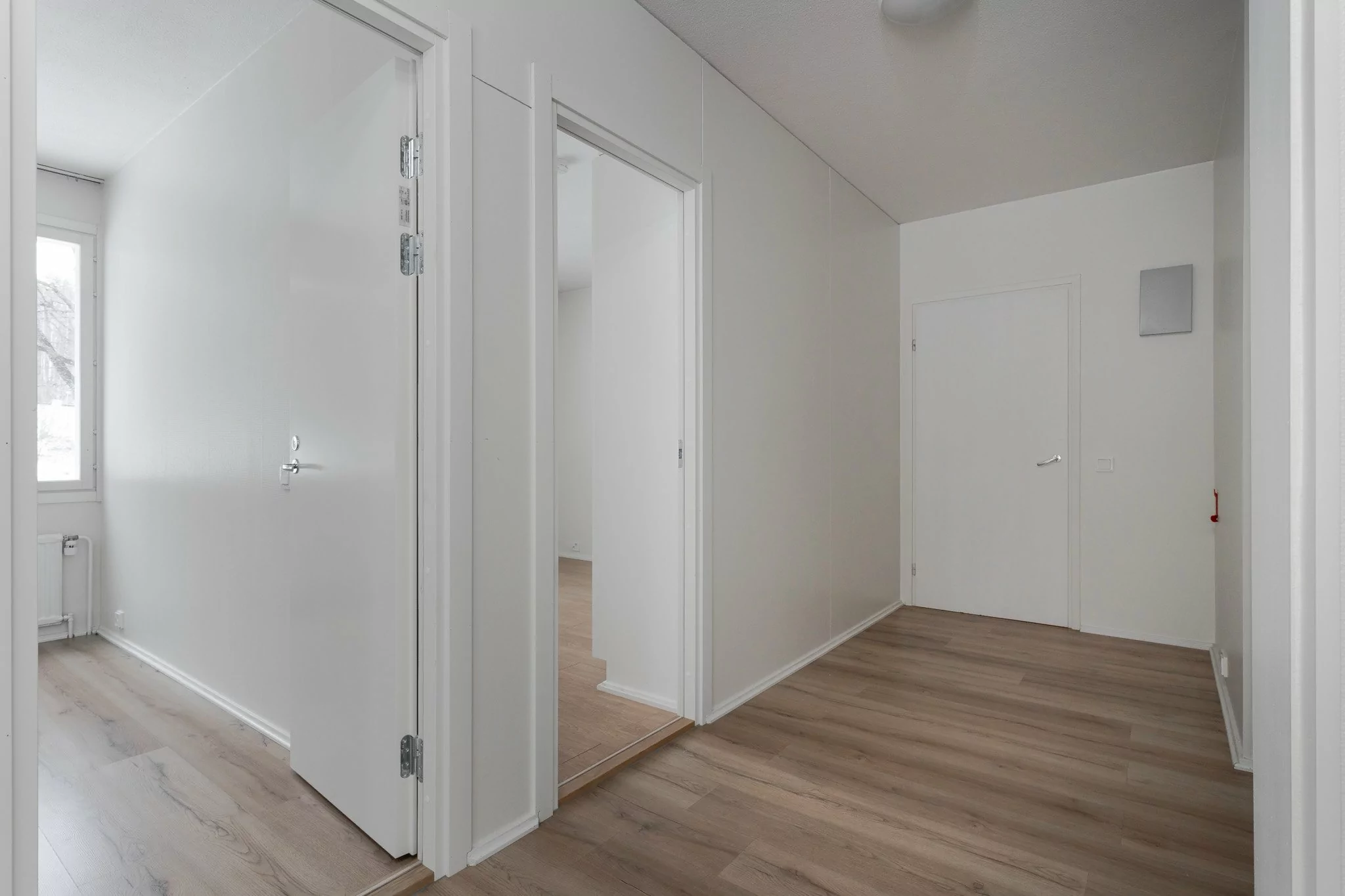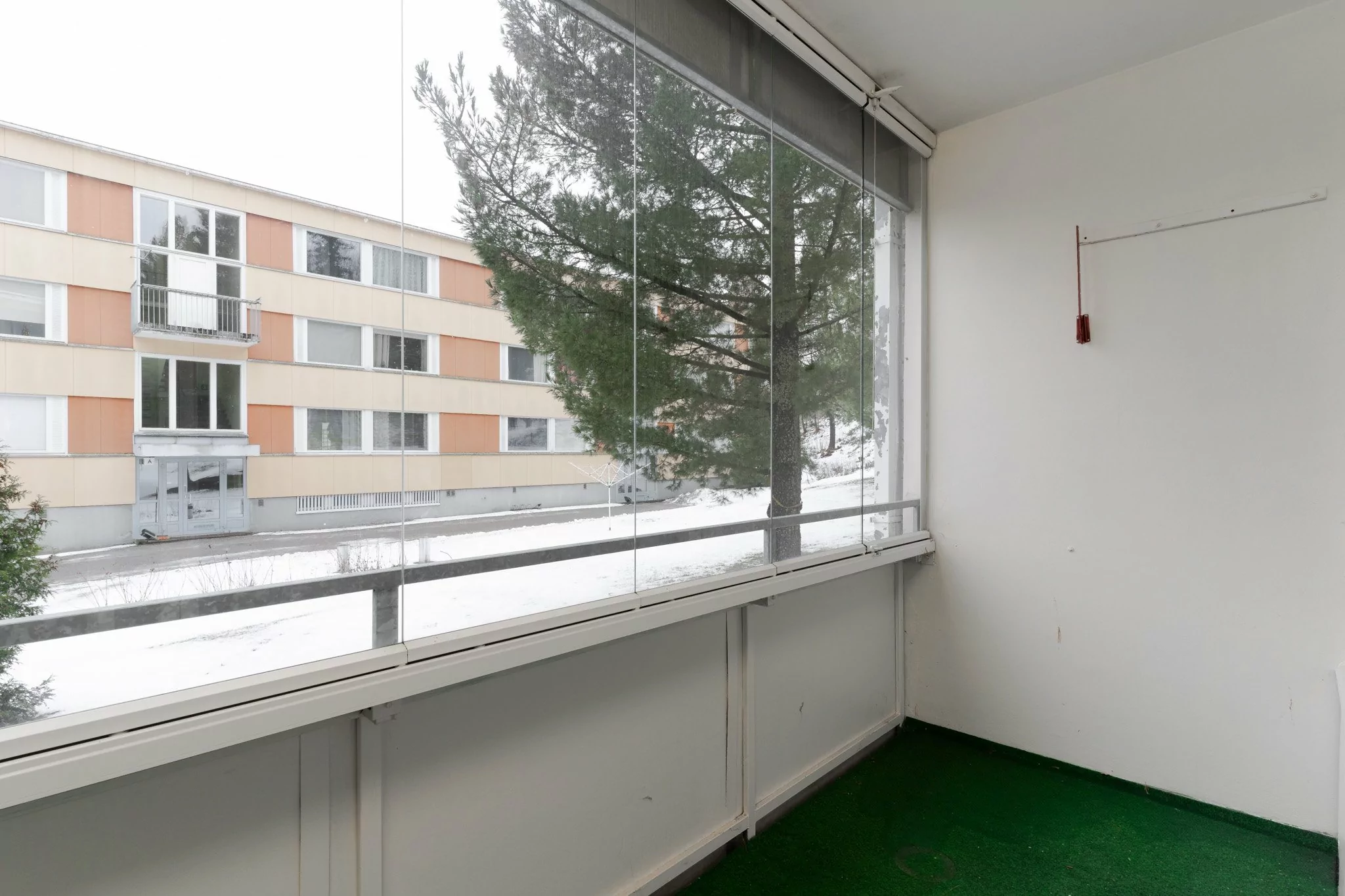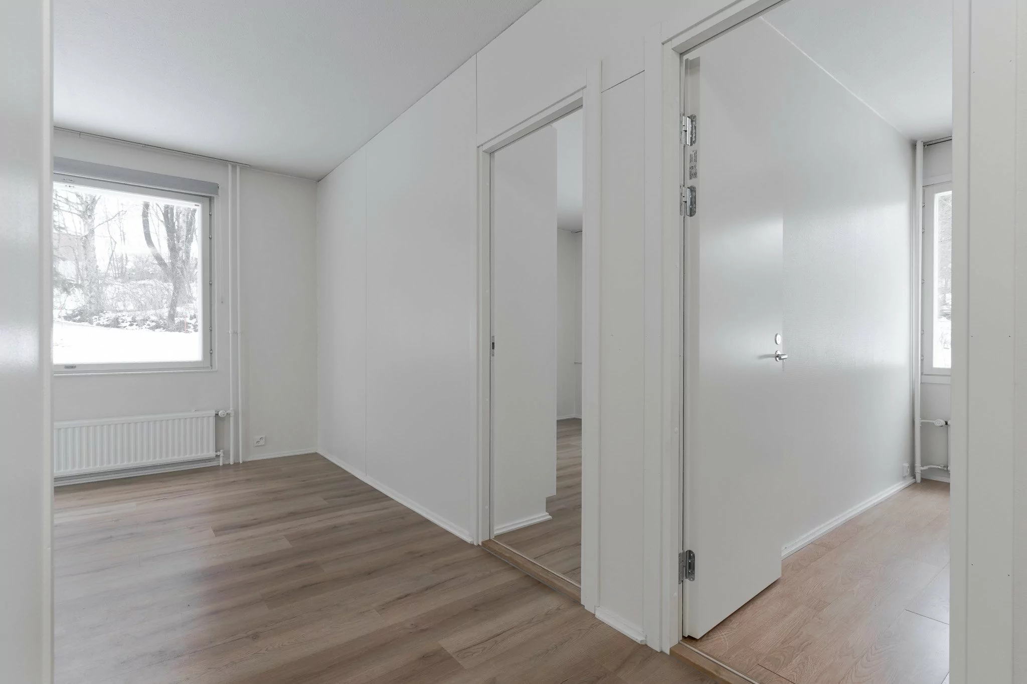 Asuntoon on tehty pintaremontti muutama vuosi sitten. Makuuhuoneiden ovet on vaihdettu uusiin äänieristysoviin. Molemmat makuuhuoneet ovat saman kokoisia. Olohuoneesta on kulku lasitetulle parvekkeelle. Runsas luonnonvalo tekee asunnosta viihtyisän. Päätyasunto läpi talon. Valokuituvalmius, osakas / asukas tekee oman sopimuksen.
