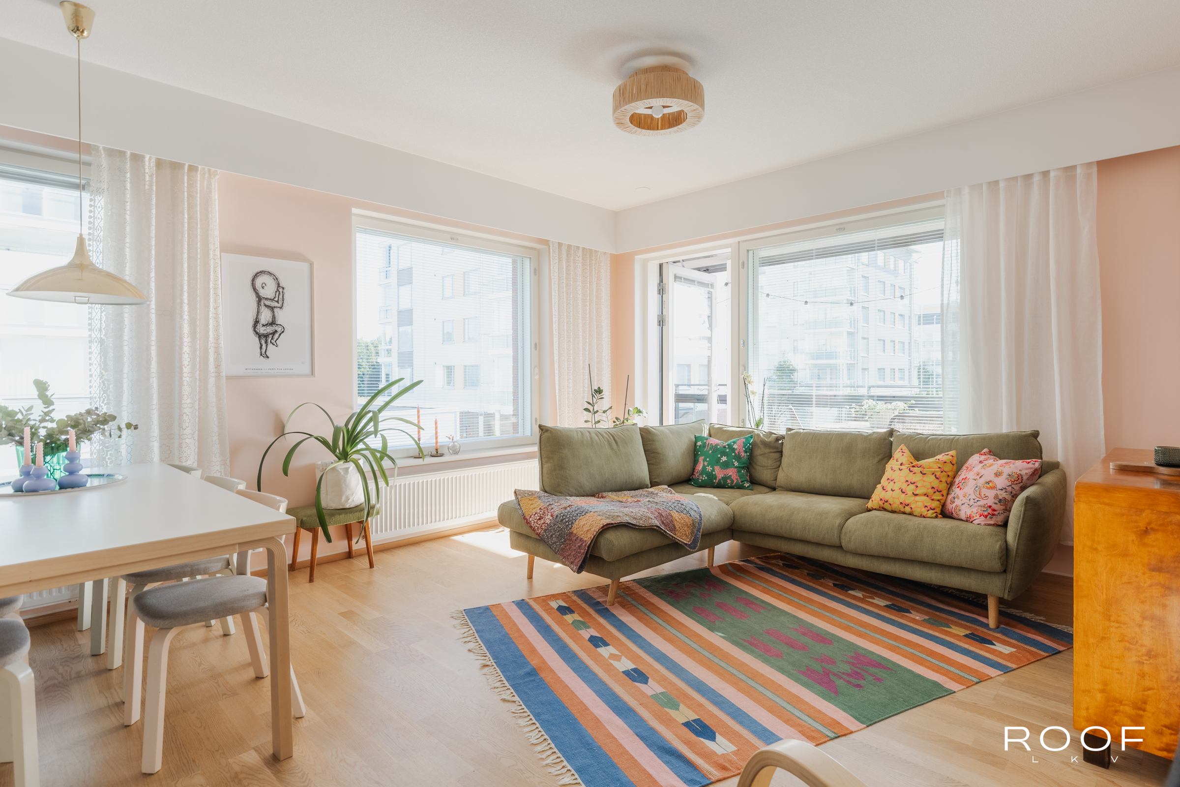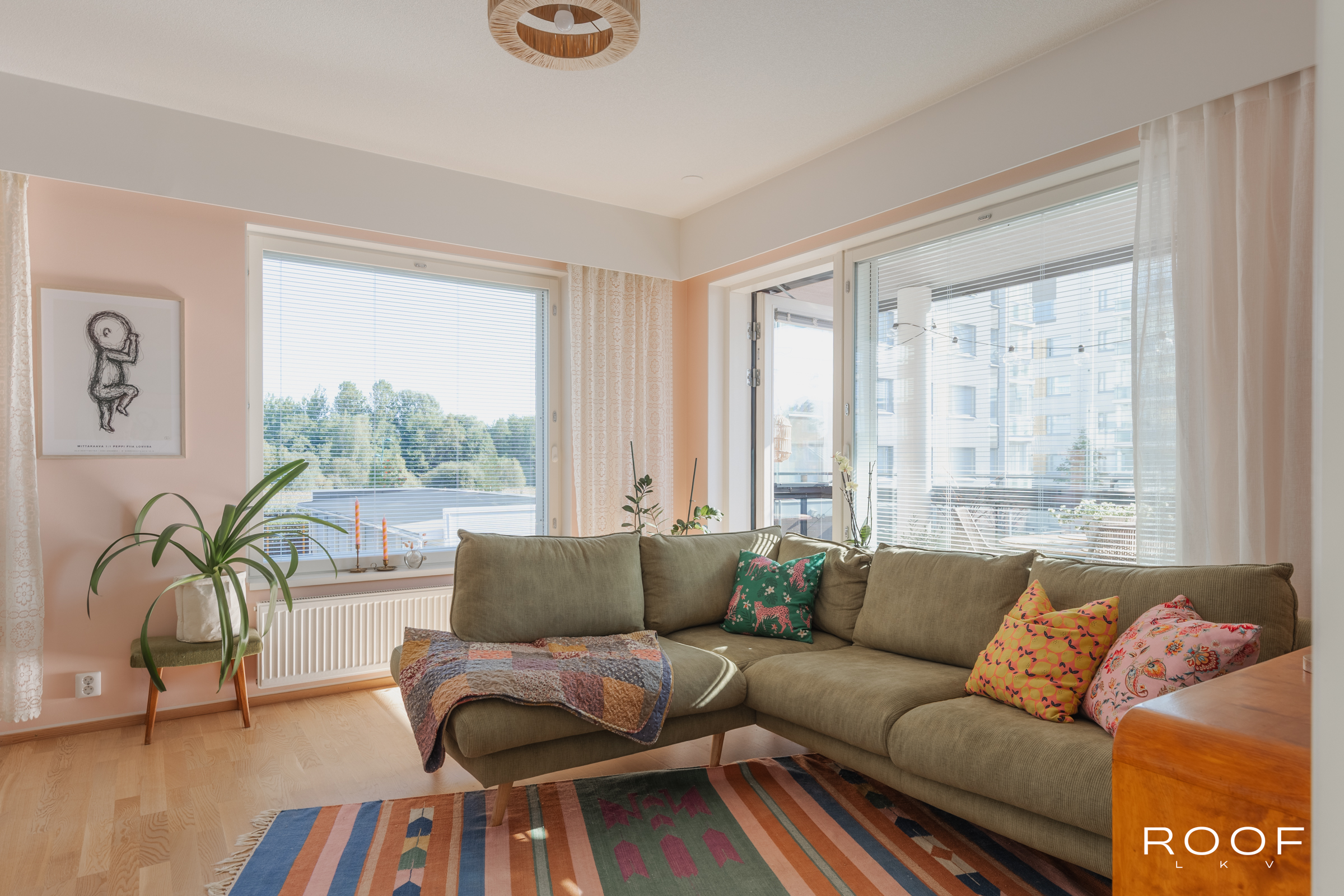 Kaksi tilavaa makuuhuonetta tarjoavat hyvät puitteet niin perheelle, pariskunnalle kuin etätyöhönkin. Tyylikäs keittiö uusituilla tasoilla ja kodinkoneilla tekee ruoanlaitosta sujuvaa ja nautinnollista. Lattialämmitteinen kylpyhuone lisää asumisen mukavuutta, ja lasitettu parveke toimii pitkälle syksyyn ylimääräisenä oleskelutilana.