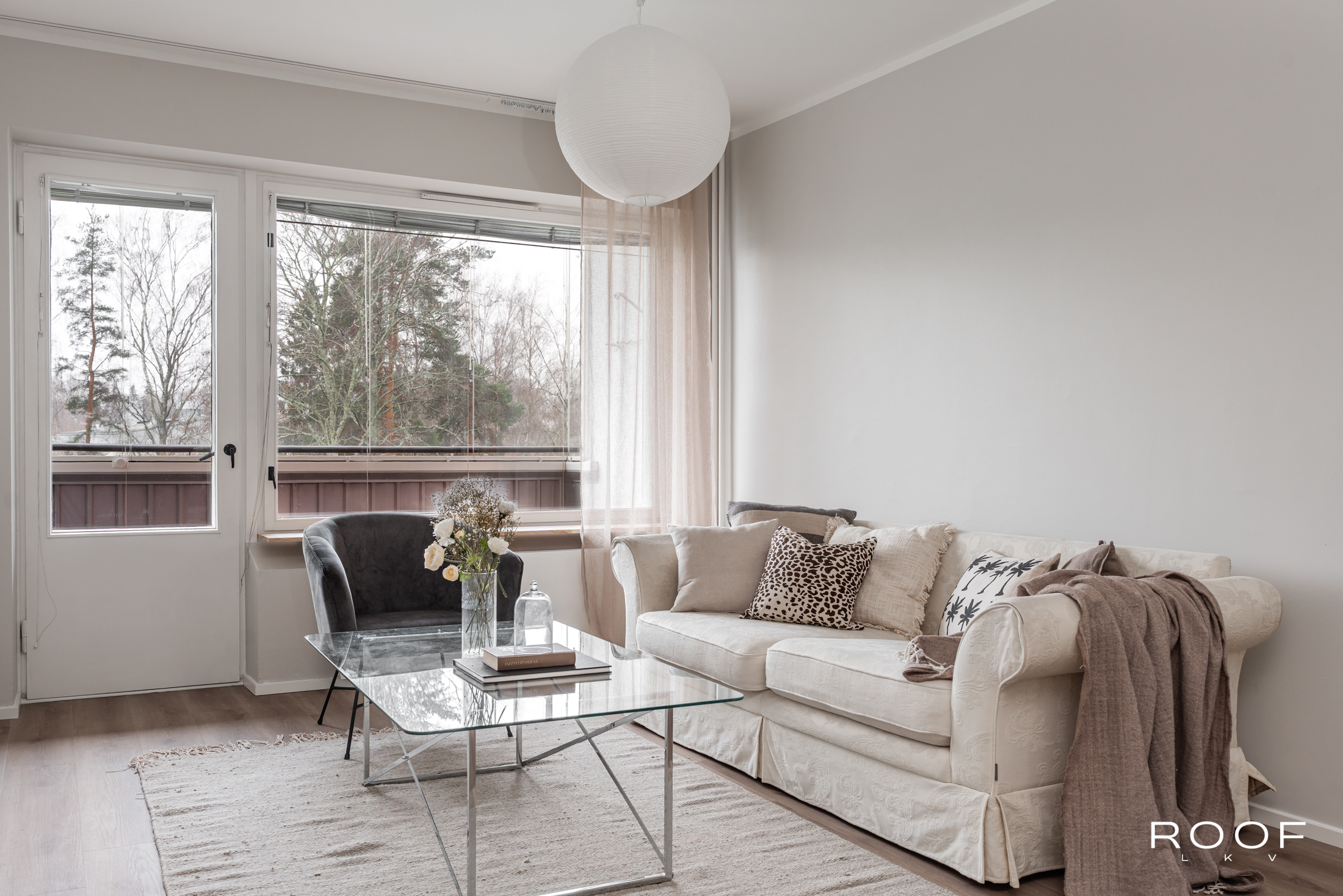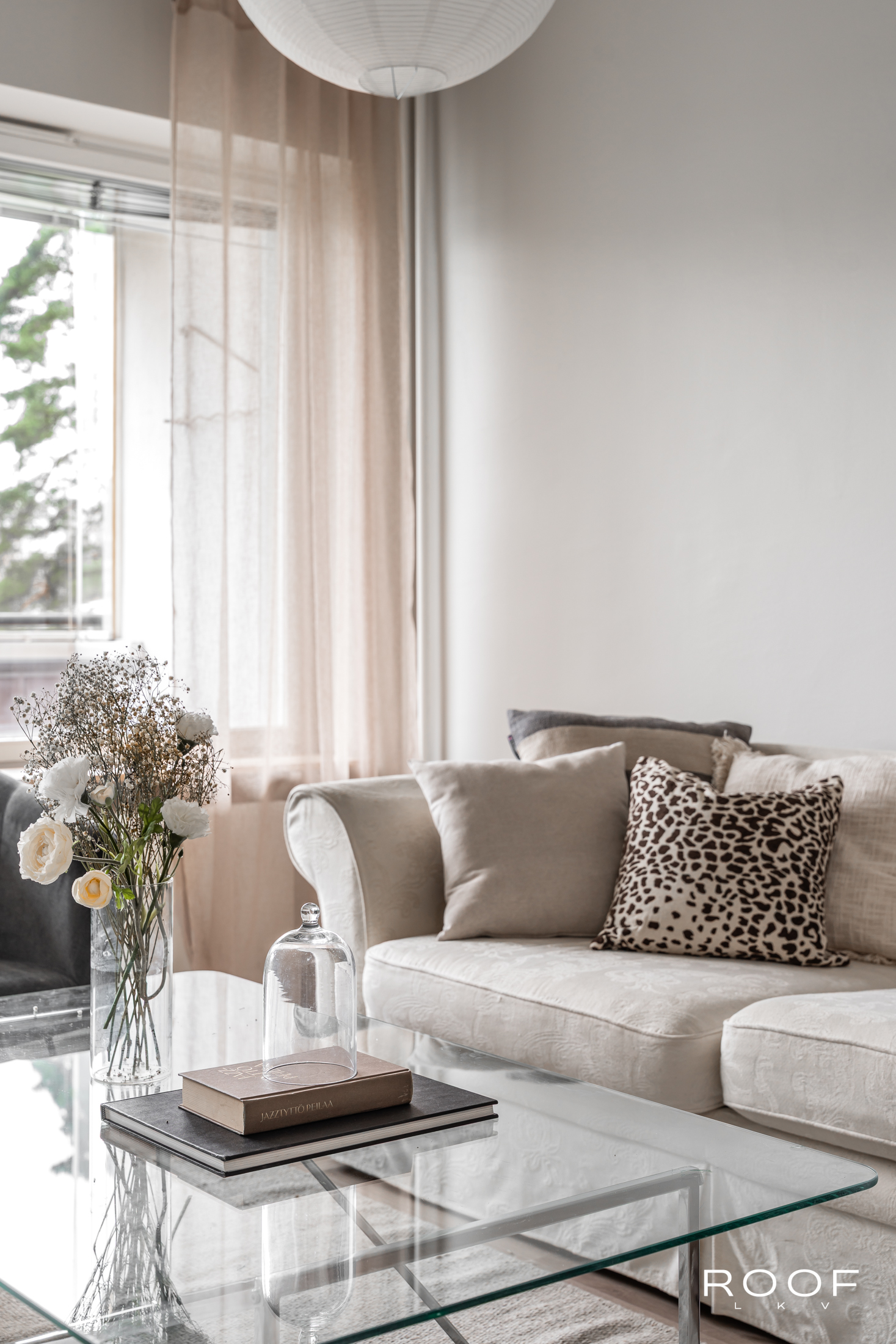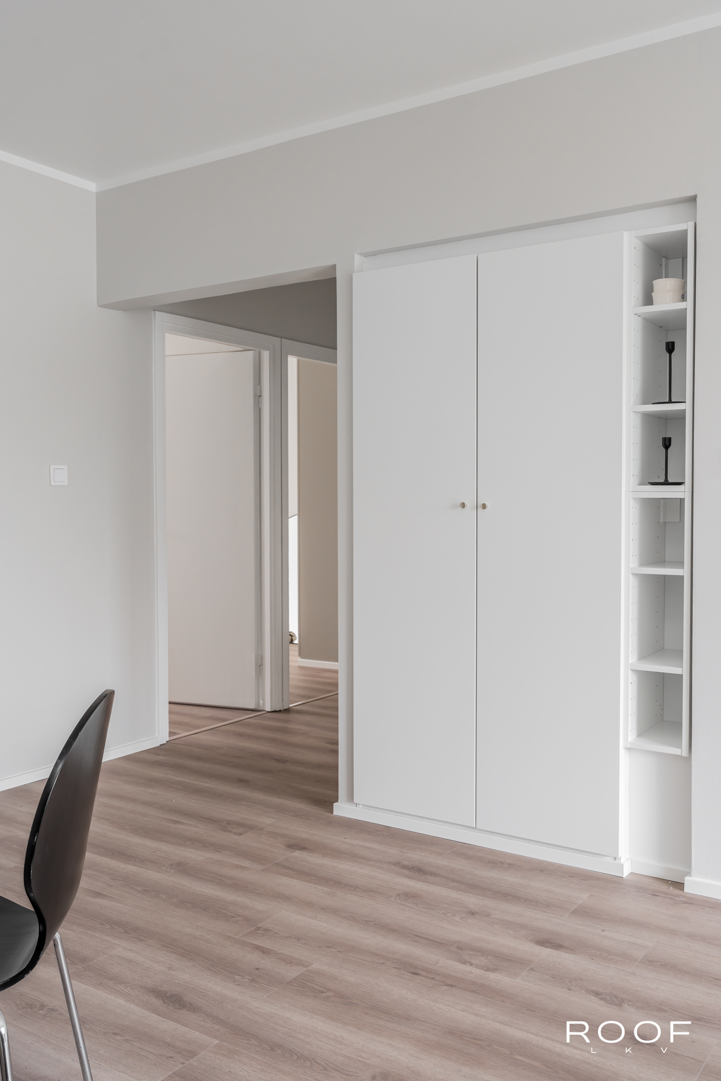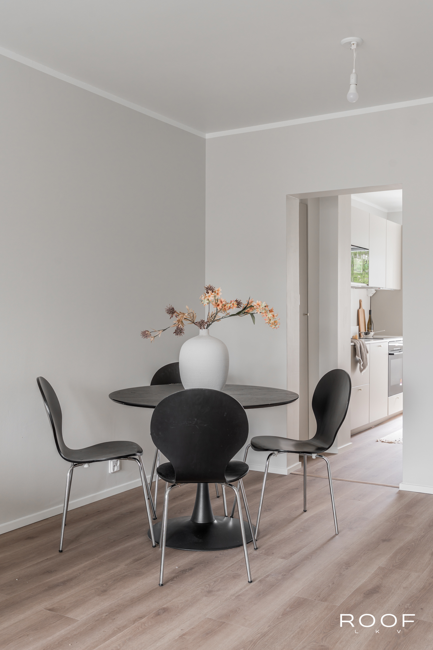 Tämä koti on saneerattu juuri hyödyntäen neutraaleja sekä luonnonmukaisia materiaaleja. Keittiössä on mukavasti lasku- sekä säilytystilaa, keittiö on osittain avonainen oleskelutiloihin. Kodinkoneet ovat integroidut Bosch-merkkiset ja työtaso on komposiittikivitaso. Oleskelutiloissa on hyvin tilaa ruokailu- sekä istuinryhmälle, olohuoneen puolella myös kaapistot. Kodin molemmissa makuuhuoneissa on myös kaapistot. Kylpyhuoneen laatoitus sekä vedeneriste on uusittu putkiremontin yhteydessä 2014, kalusteet on uusittu huoneiston muun remontin yhteydessä. Päivitetyt pinnat ja modernit ratkais...