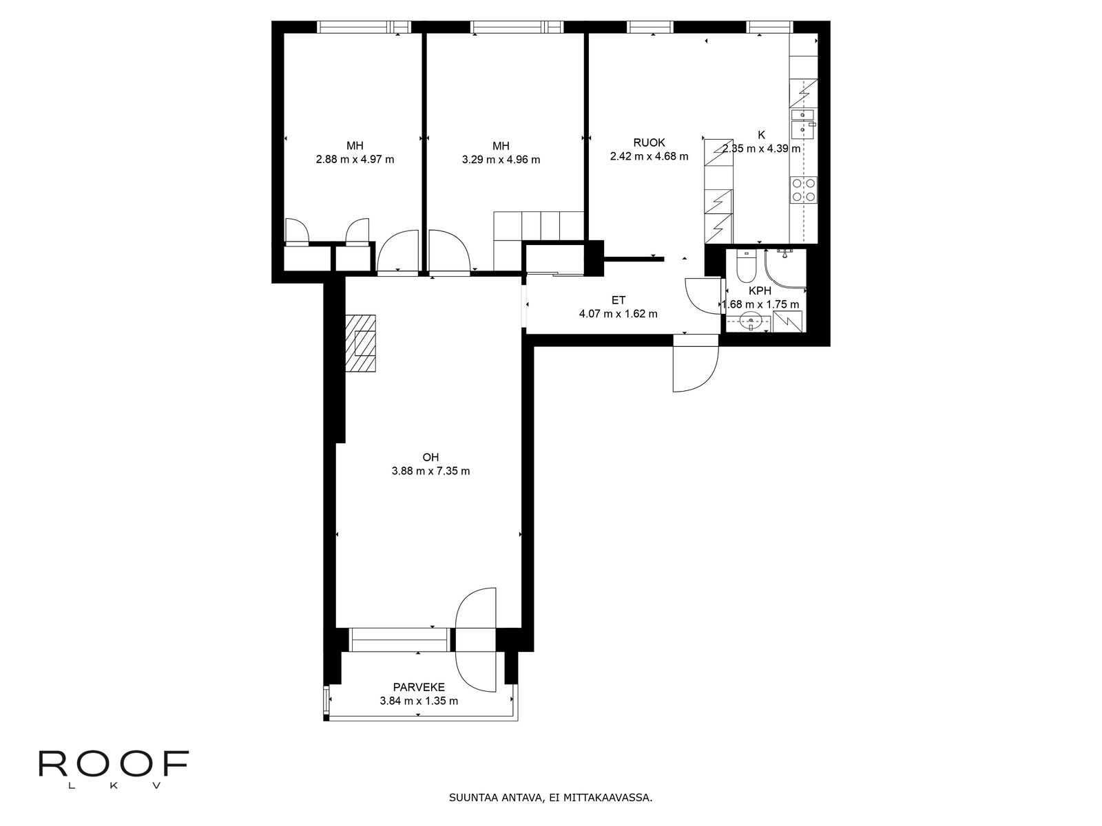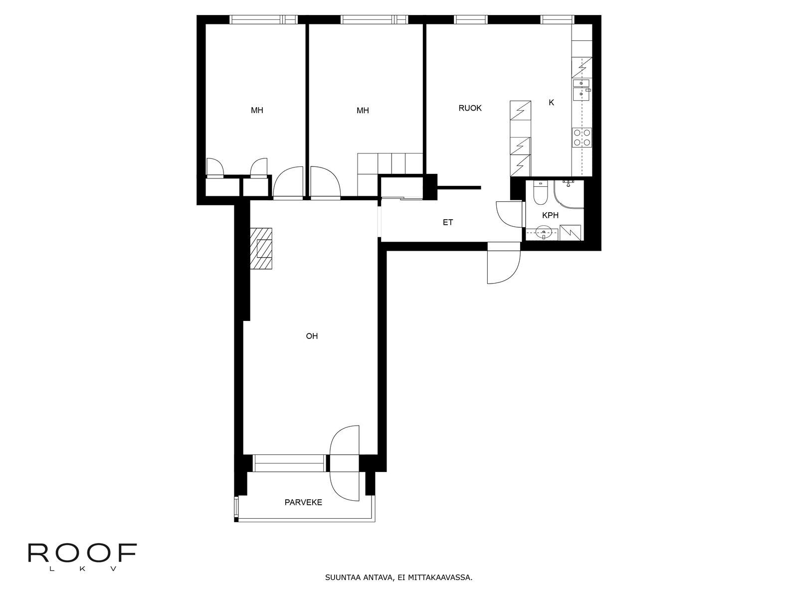 kerrostalo, 3h, k, kph, parveke