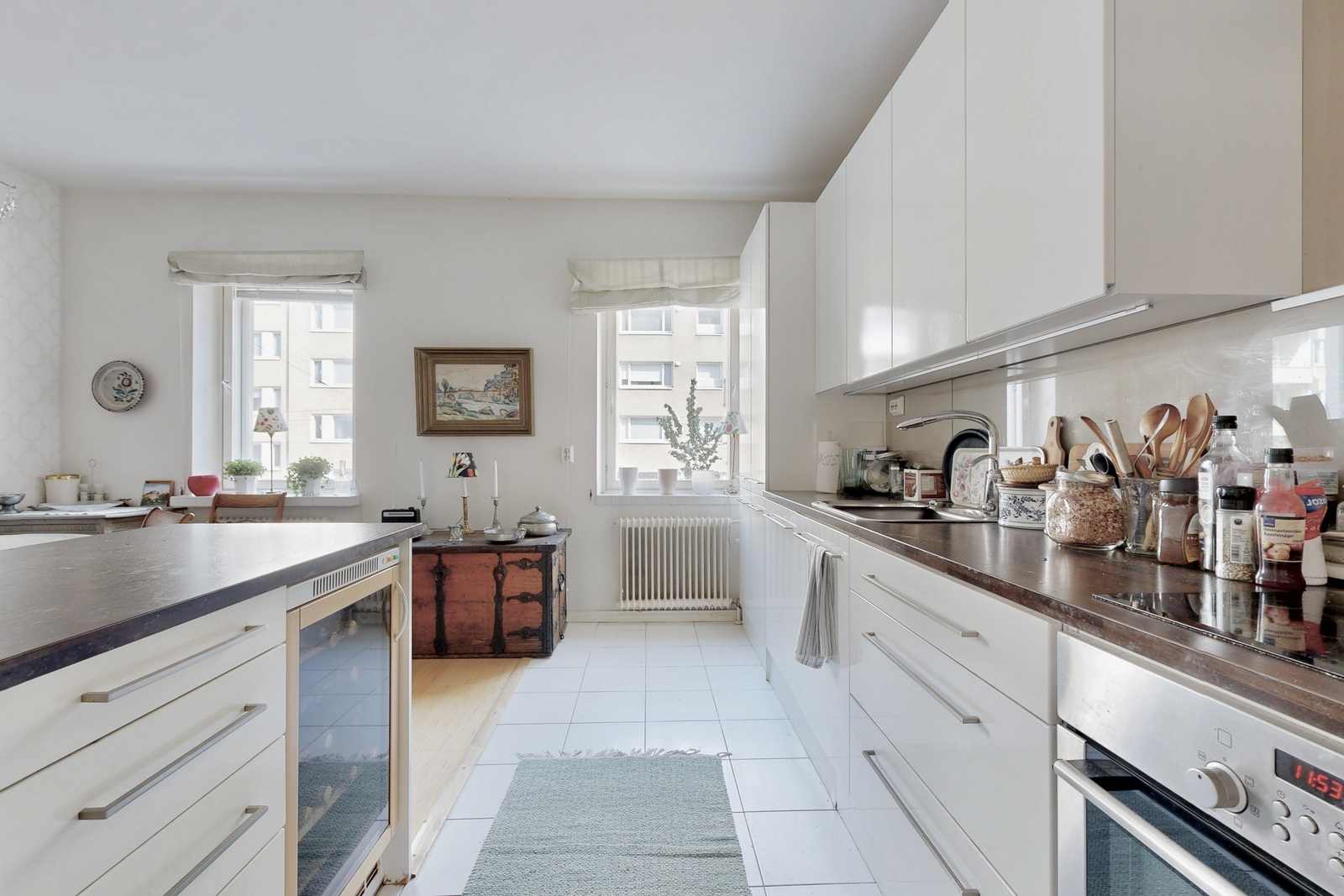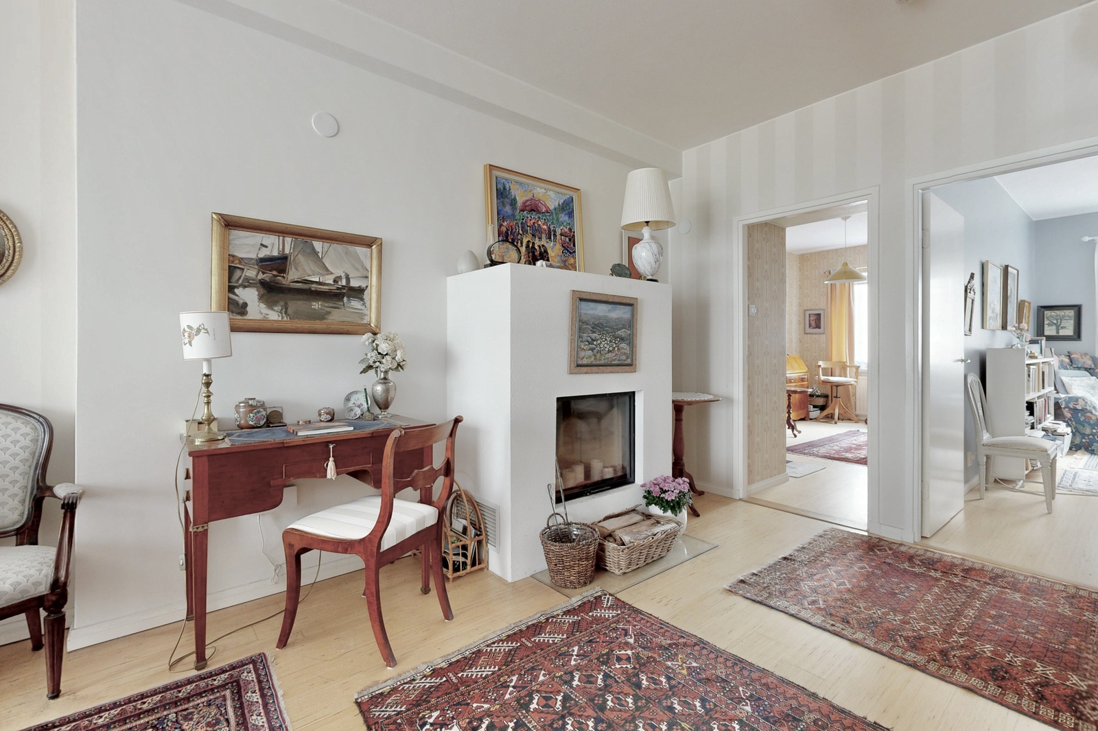 Tämän kodin pohjaratkaisuun on helppo ihastua. Avara olohuone saa lisää tunnelmaa kauniista takasta, ja sieltä on käynti sisäpihan puoleiselle parvekkeelle. Kaksi tilavaa makuuhuonetta tarjoavat monipuoliset käyttömahdollisuudet toinen toimii mainiosti esimerkiksi lapsen huoneena, työtilana tai vierashuoneena. Erillisessä keittiössä on runsaasti kaappi- ja laskutilaa sekä tilaa suurelle ruokapöydälle. Kylpyhuoneessa on paikka pyykinpesukoneelle.