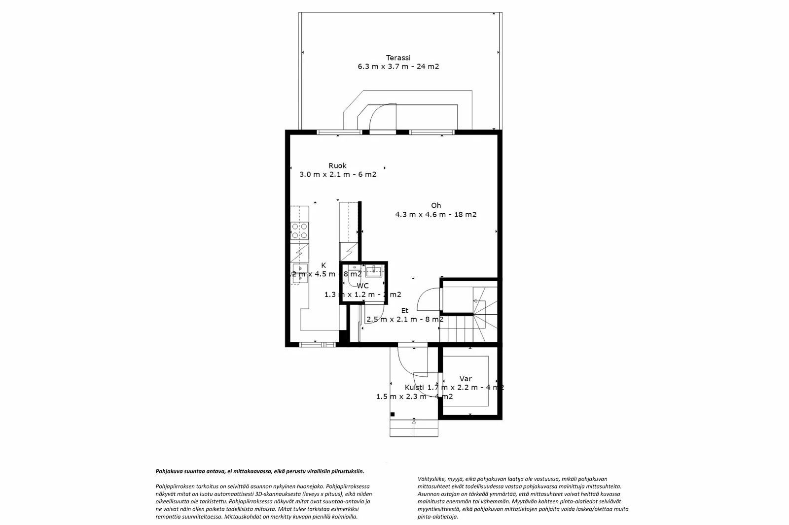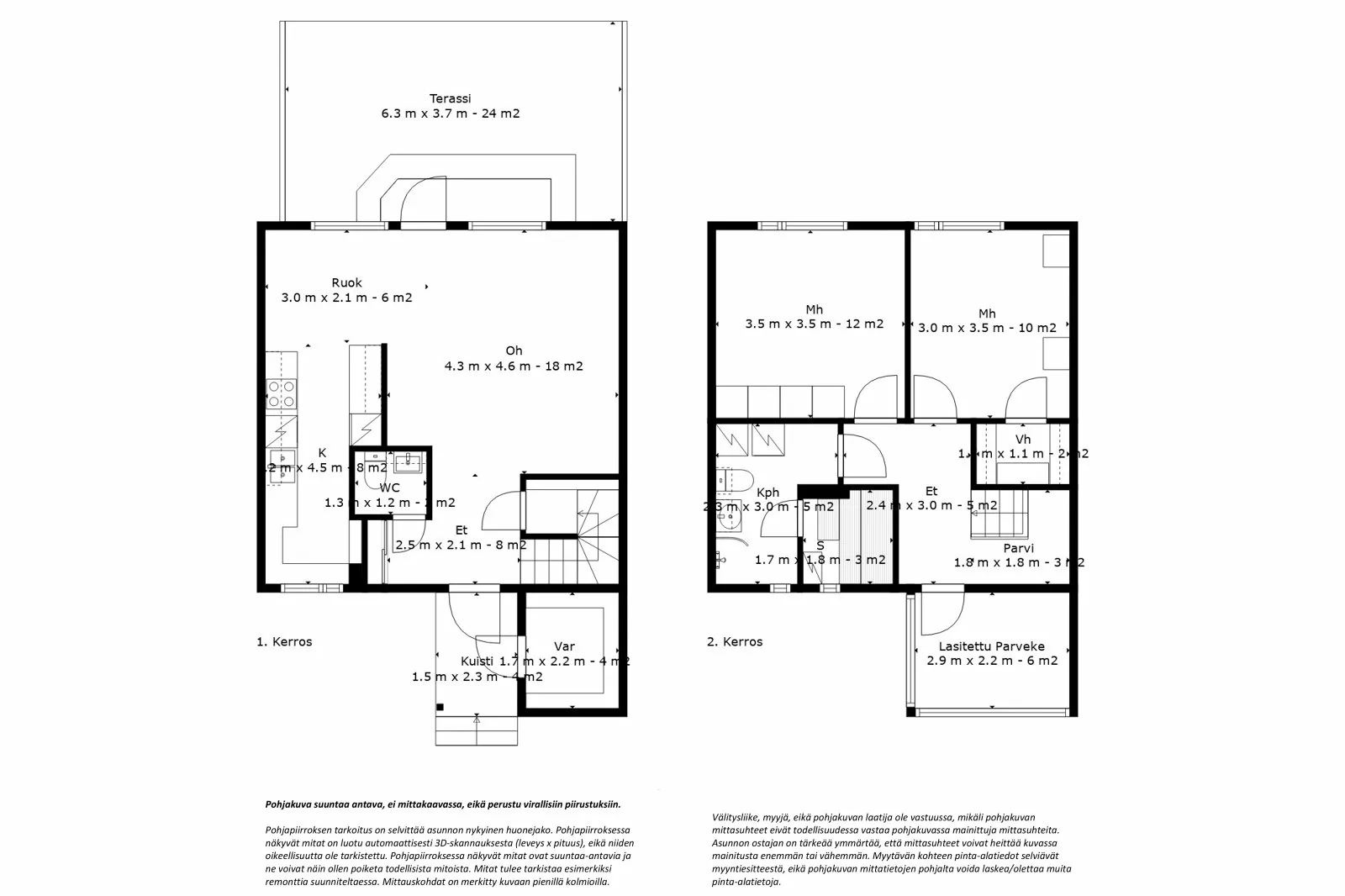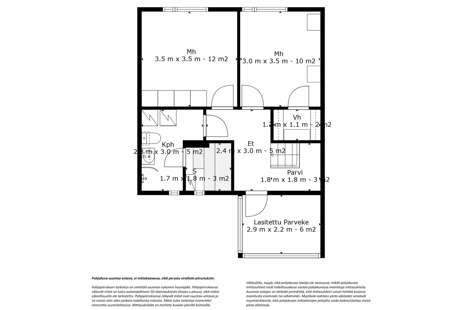 3h, k, kph, s, 2 wc, vh, terassi, las.parveke