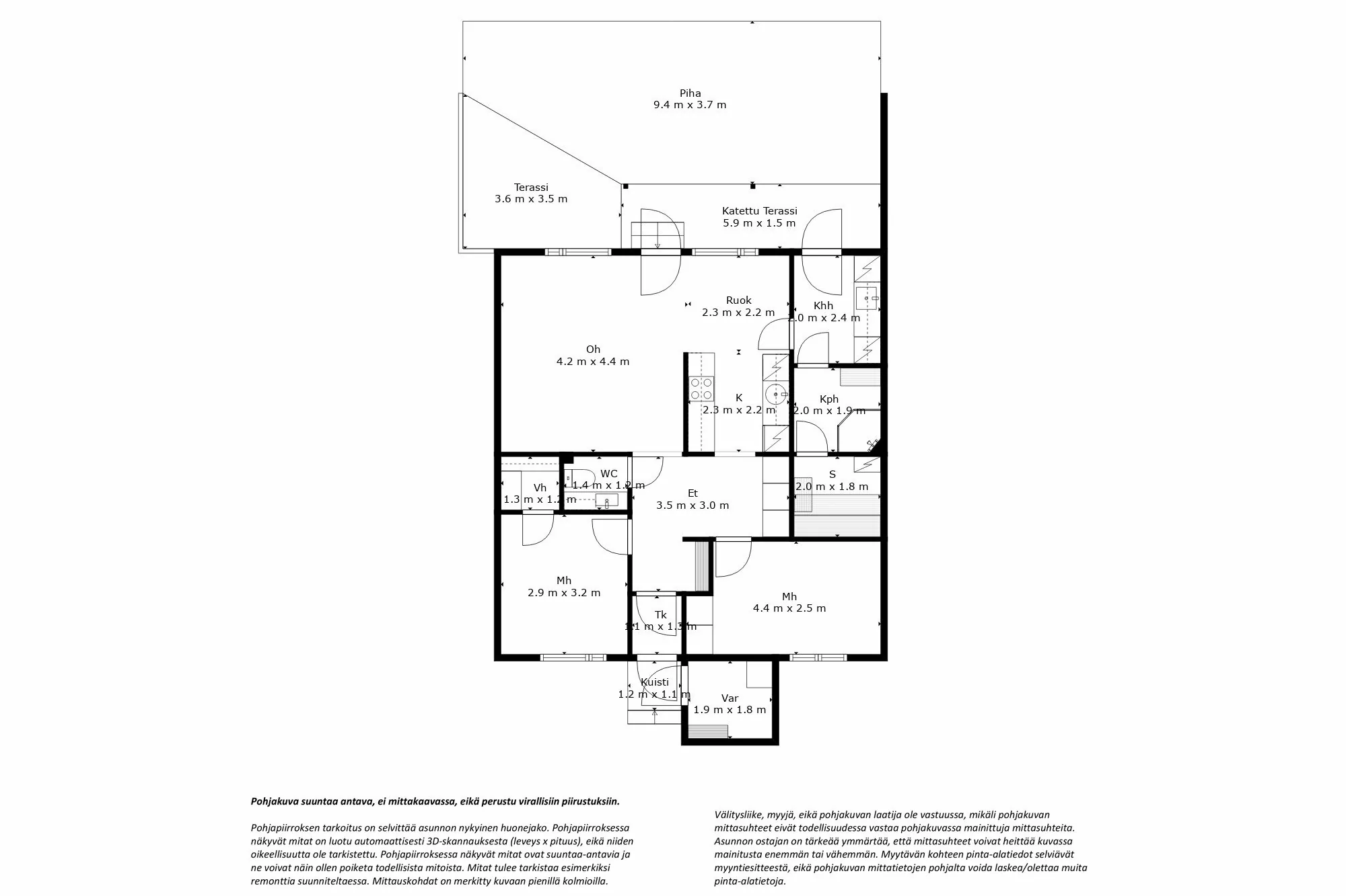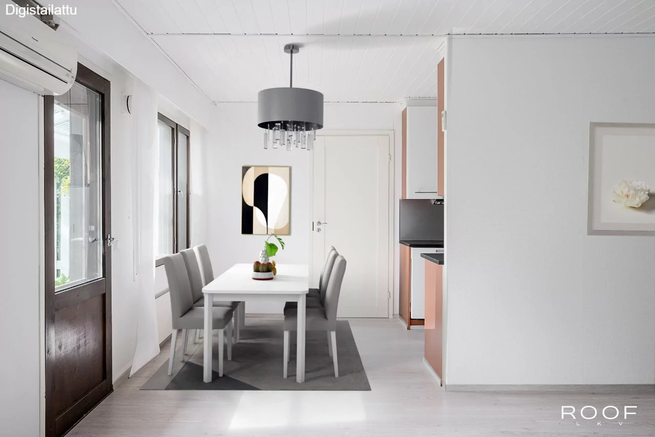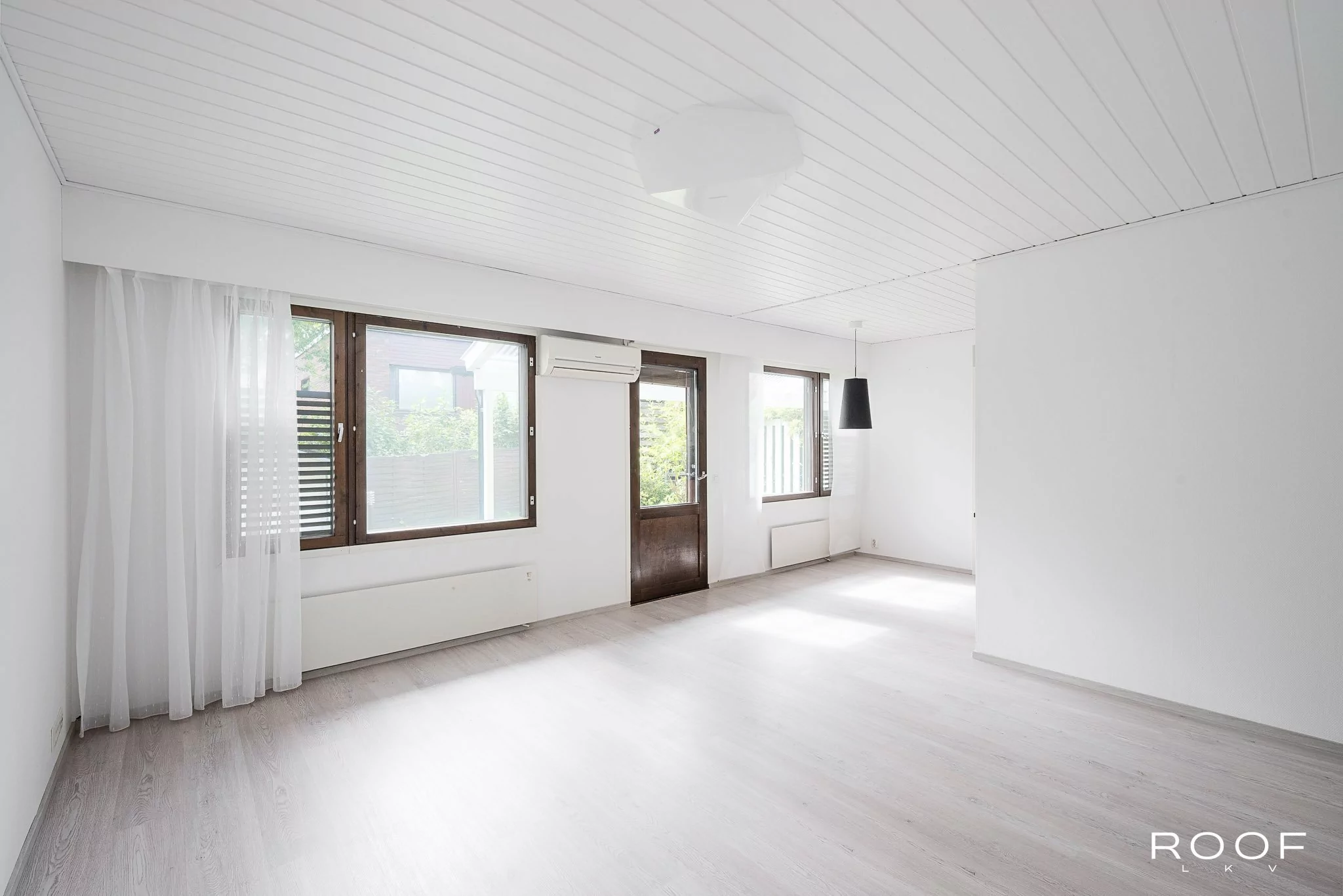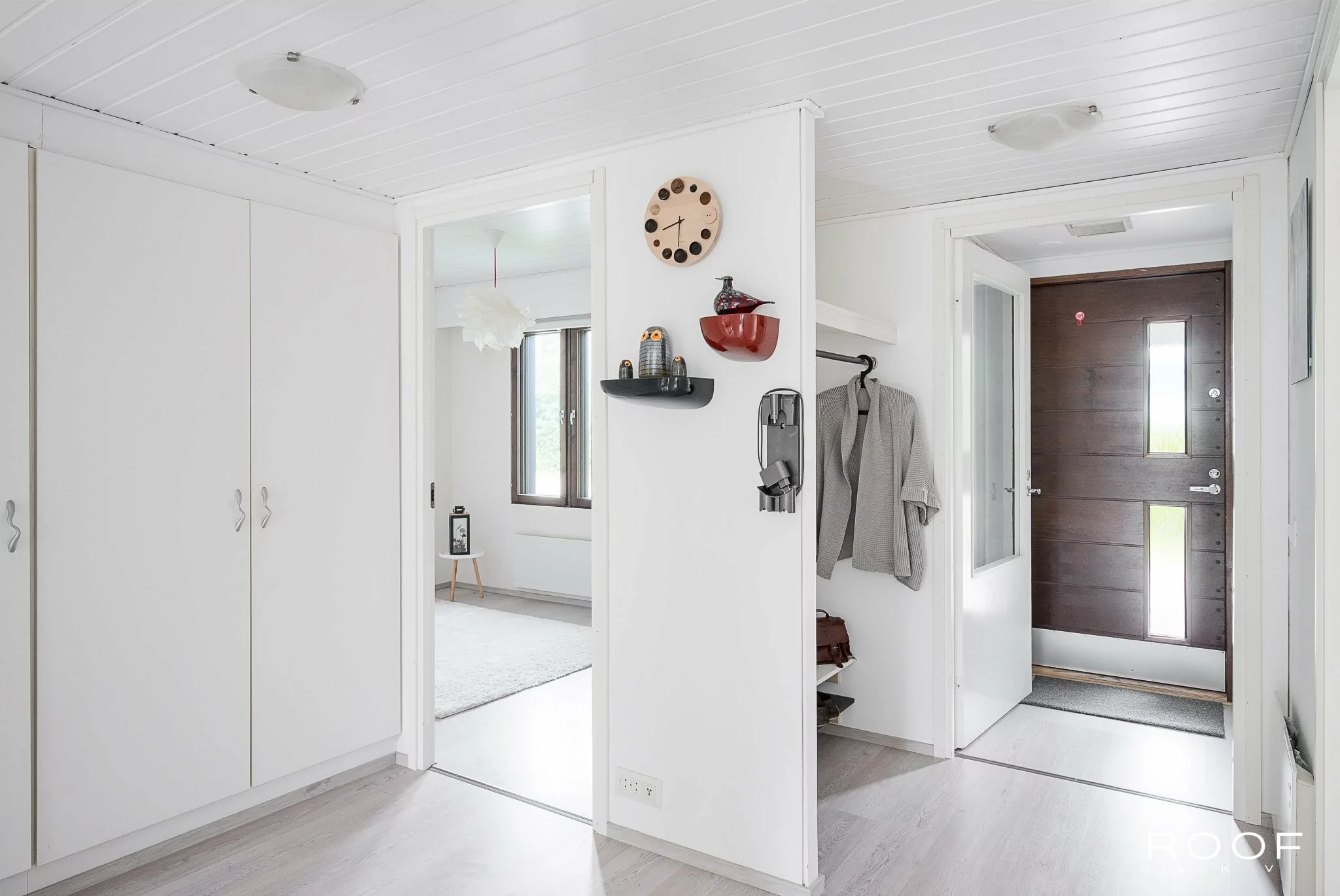 Tässä kodissa yhdistyvät sujuva arki, viihtyisä piha ja selkeä pohjaratkaisu. Olohuone, ruokailutila ja keittiö muodostavat avaran kokonaisuuden, josta on käynti omalle osittain katetulle terassille ja suurelle pihalle. Kahdesta makuuhuoneesta toisen yhteydessä on vaatehuone, ja kodinhoitohuone tuo arkeen käy...