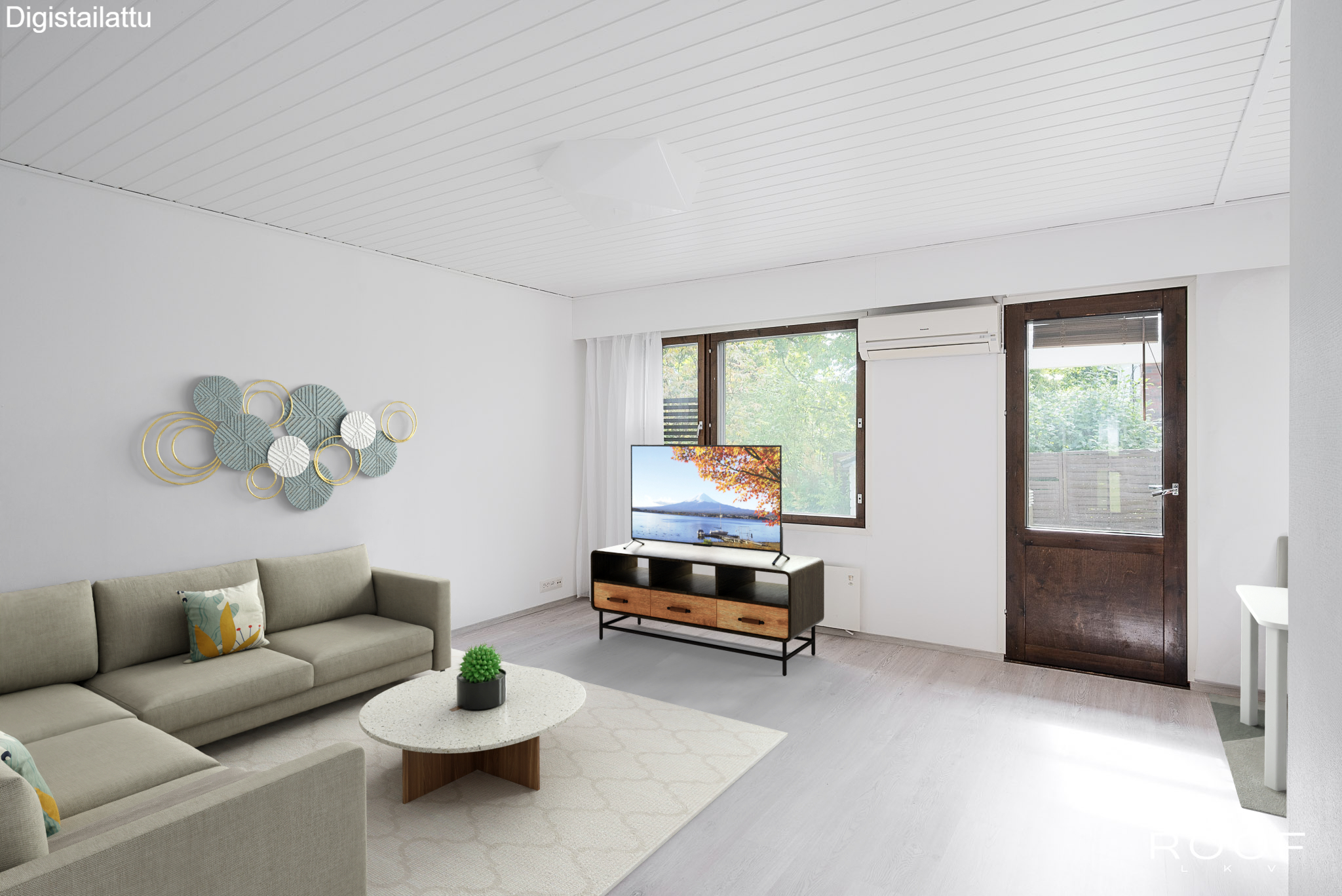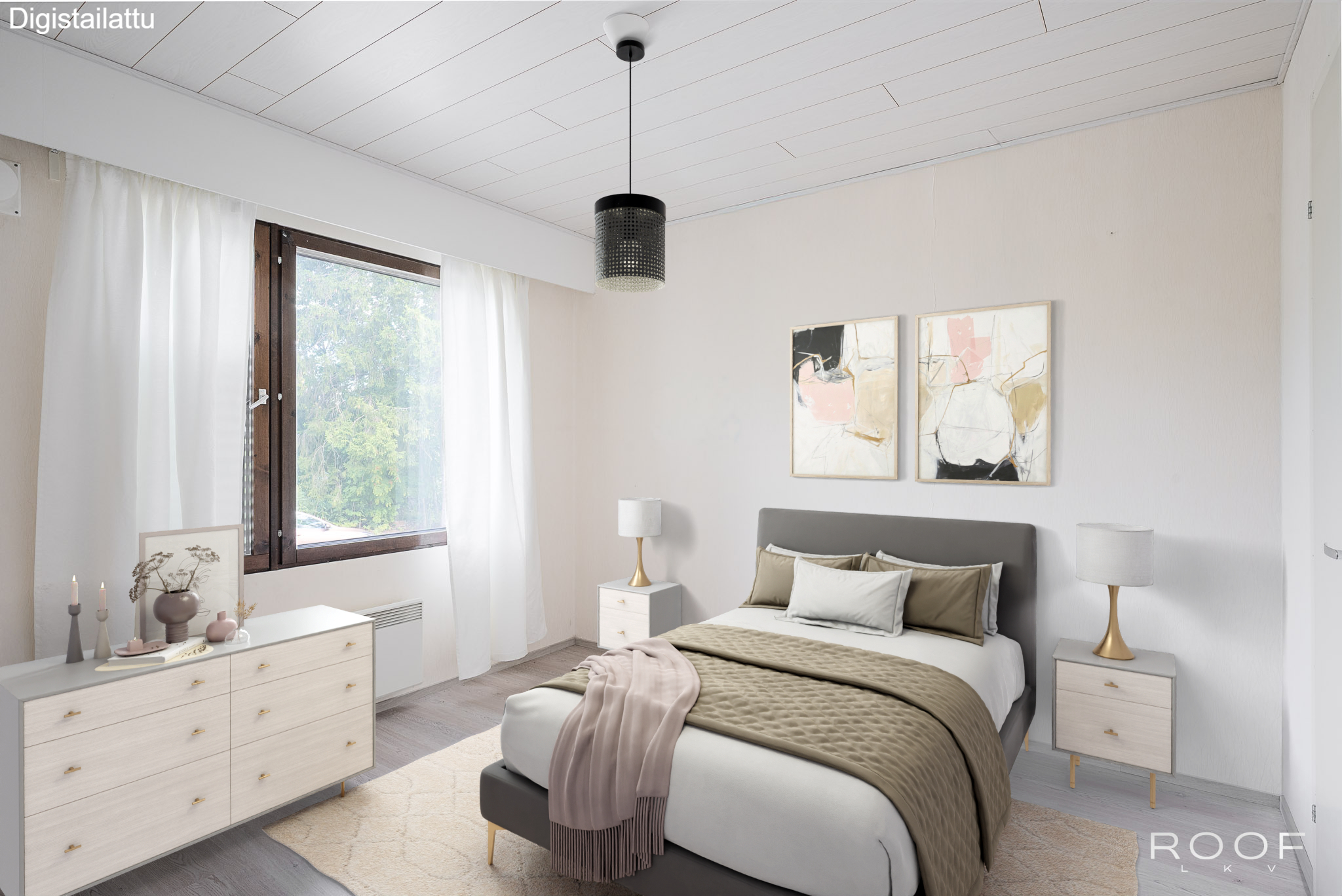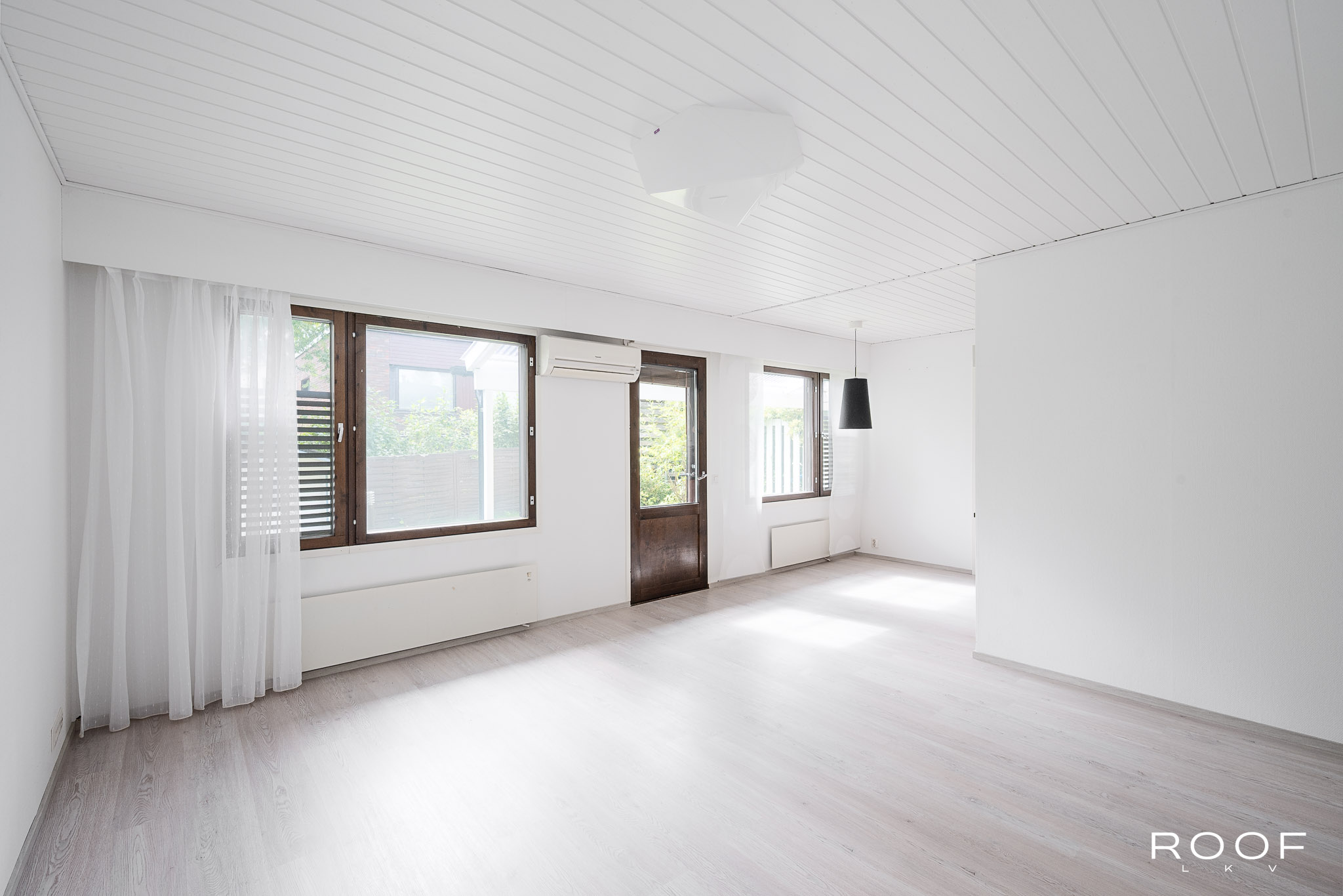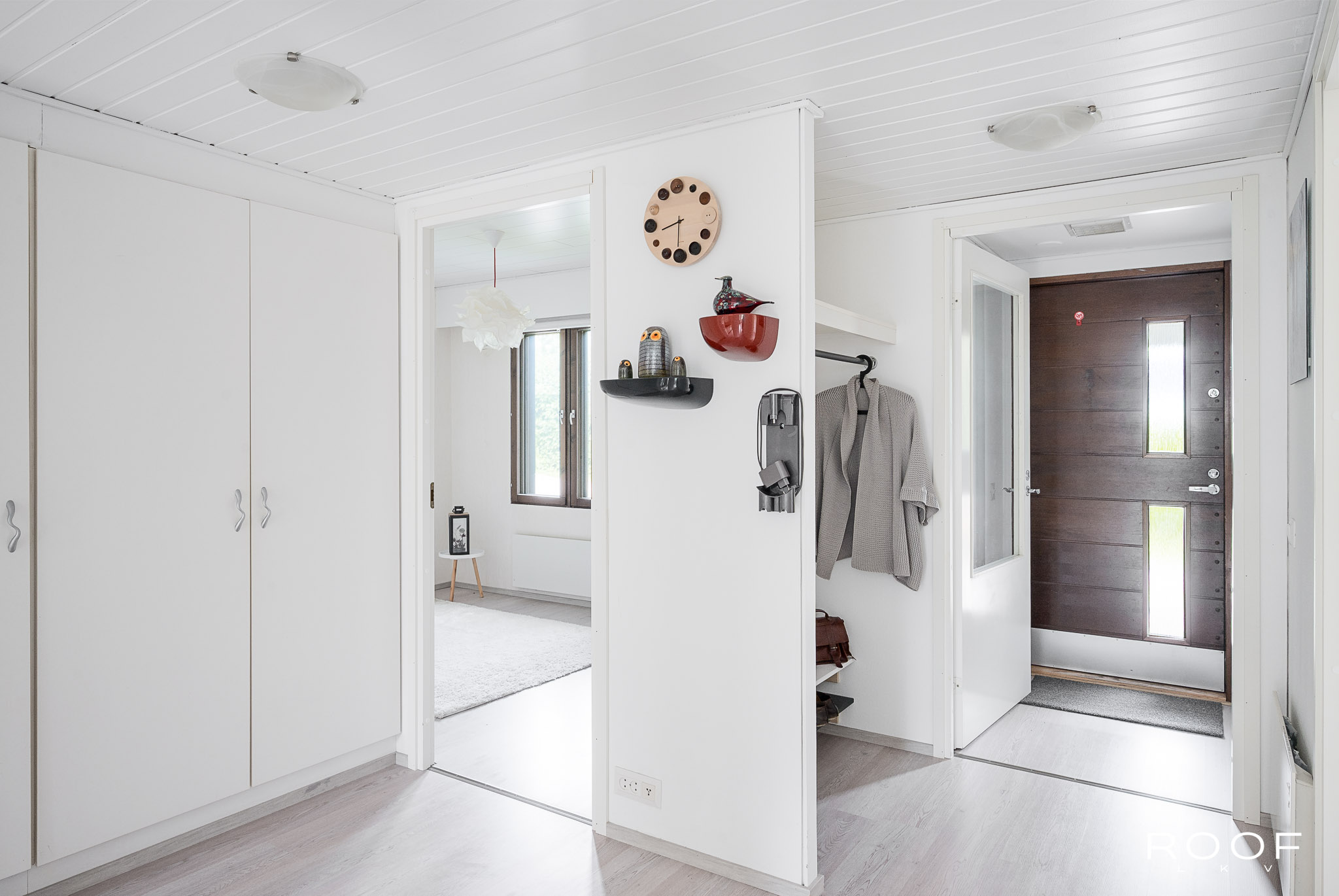 Tässä kodissa yhdistyvät sujuva arki, viihtyisä piha ja selkeä pohjaratkaisu. Olohuone, ruokailutila ja keittiö muodostavat avaran kokonaisuuden, josta on käynti omalle osittain katetulle terassille ja suurelle pihalle. Kahdesta makuuhuoneesta toisen yhteydessä on vaatehuone, ja kodinhoitohuone tuo arkeen käytännöllistä luksusta, sieltä on myös oma käynti takapihalle. Lisäksi kodissa on kylpyhuone, oma sauna ja erillinen wc. Ulkovarasto ja kaksi autopaikkaa sijaitsevat kätevästi aivan sisäänkäynnin vieressä.
