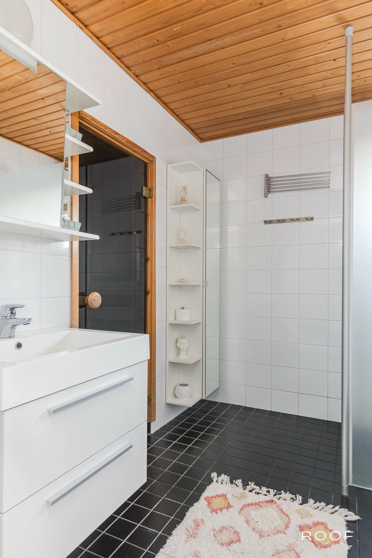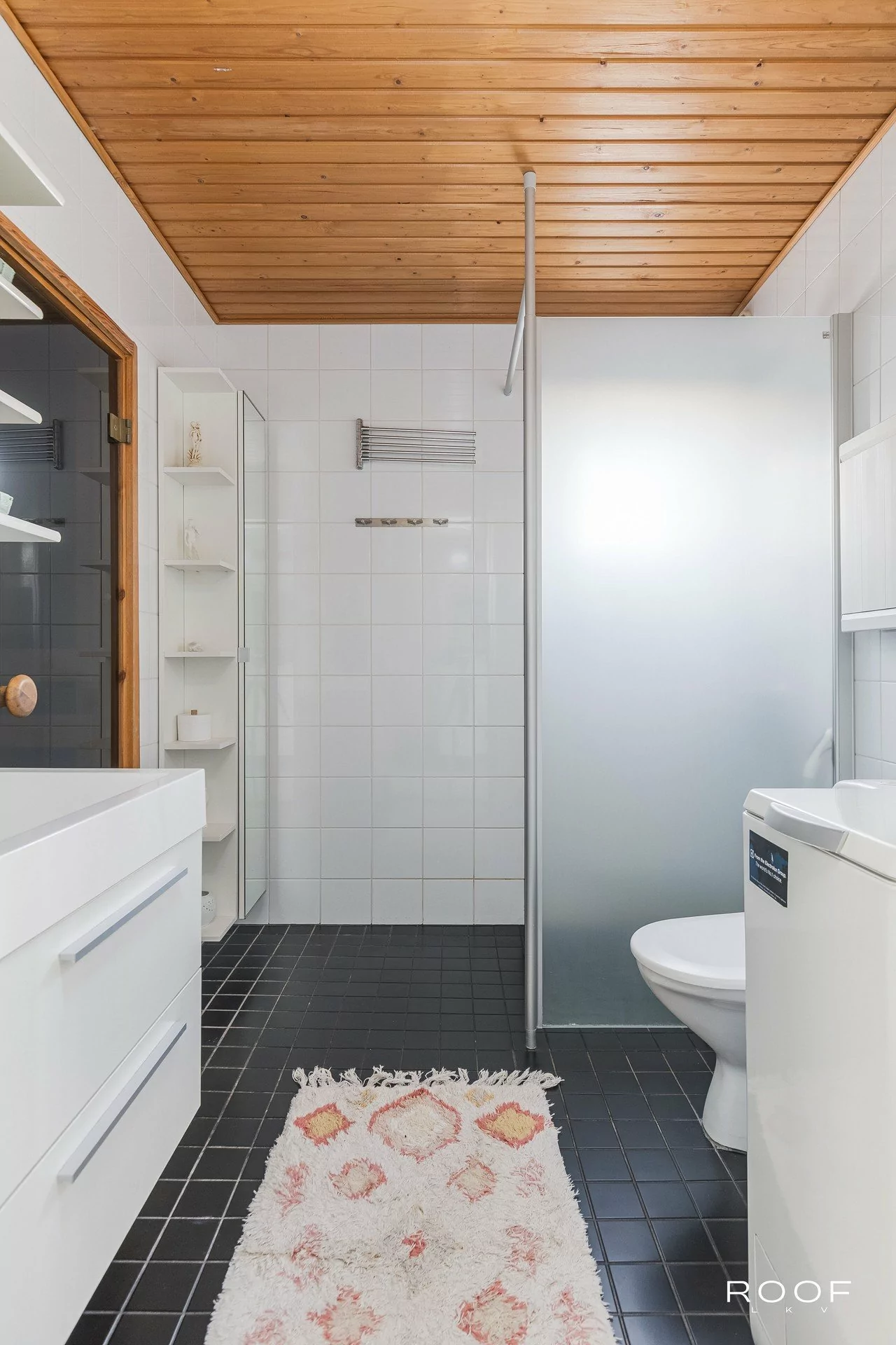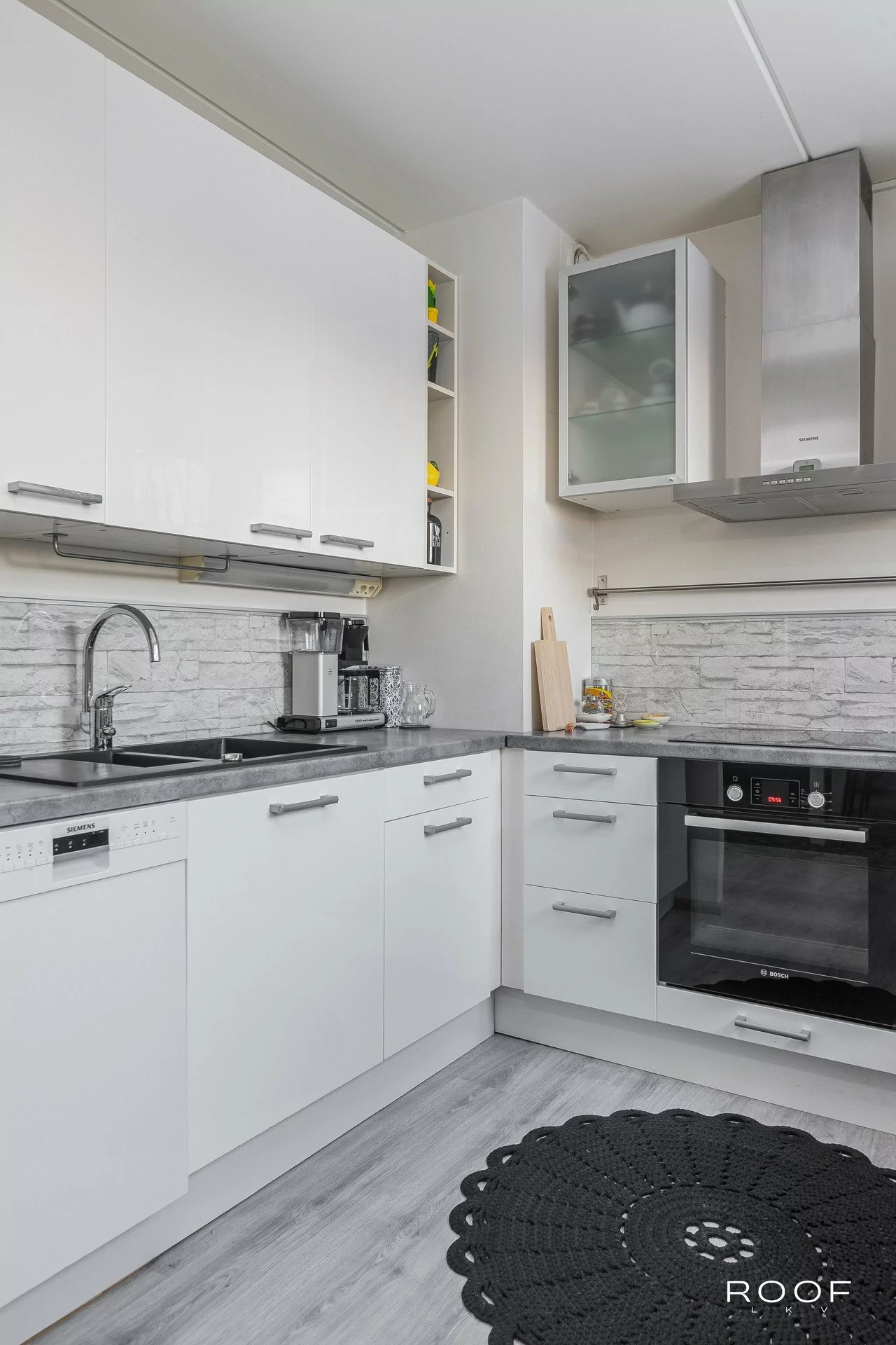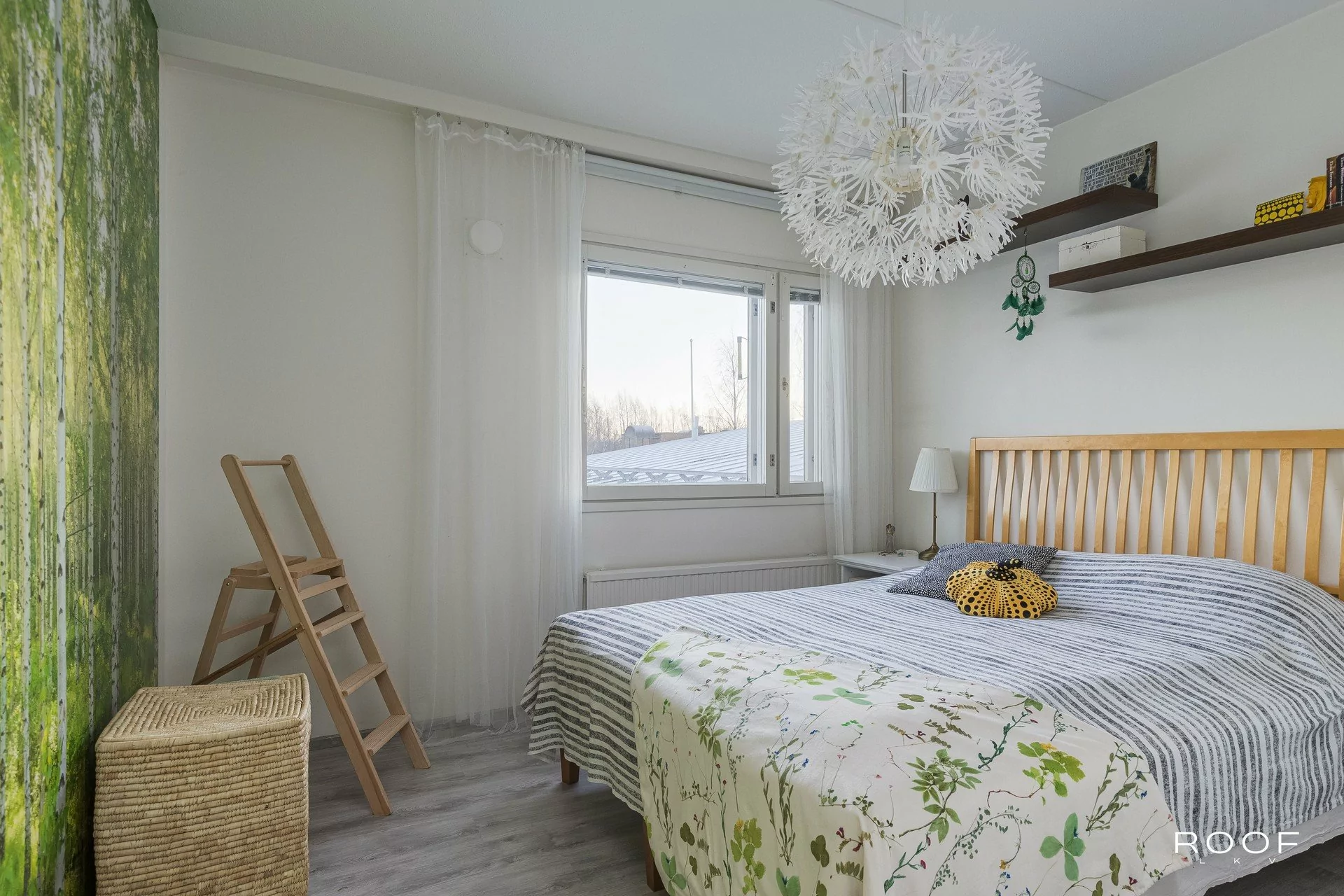 Vaalea ja siisti keittiö on hyvin varusteltu ja tarjoaa runsaasti kaappi- ja laskutilaa. Kaksi hyvänkokoista makuuhuonetta soveltuvat joustavasti eri tarpeisiin, ja säilytystilaa on hyvin sekä makuuhuoneiden että eteisen kaapistoissa. Kylpyhuone on ajanmuka...