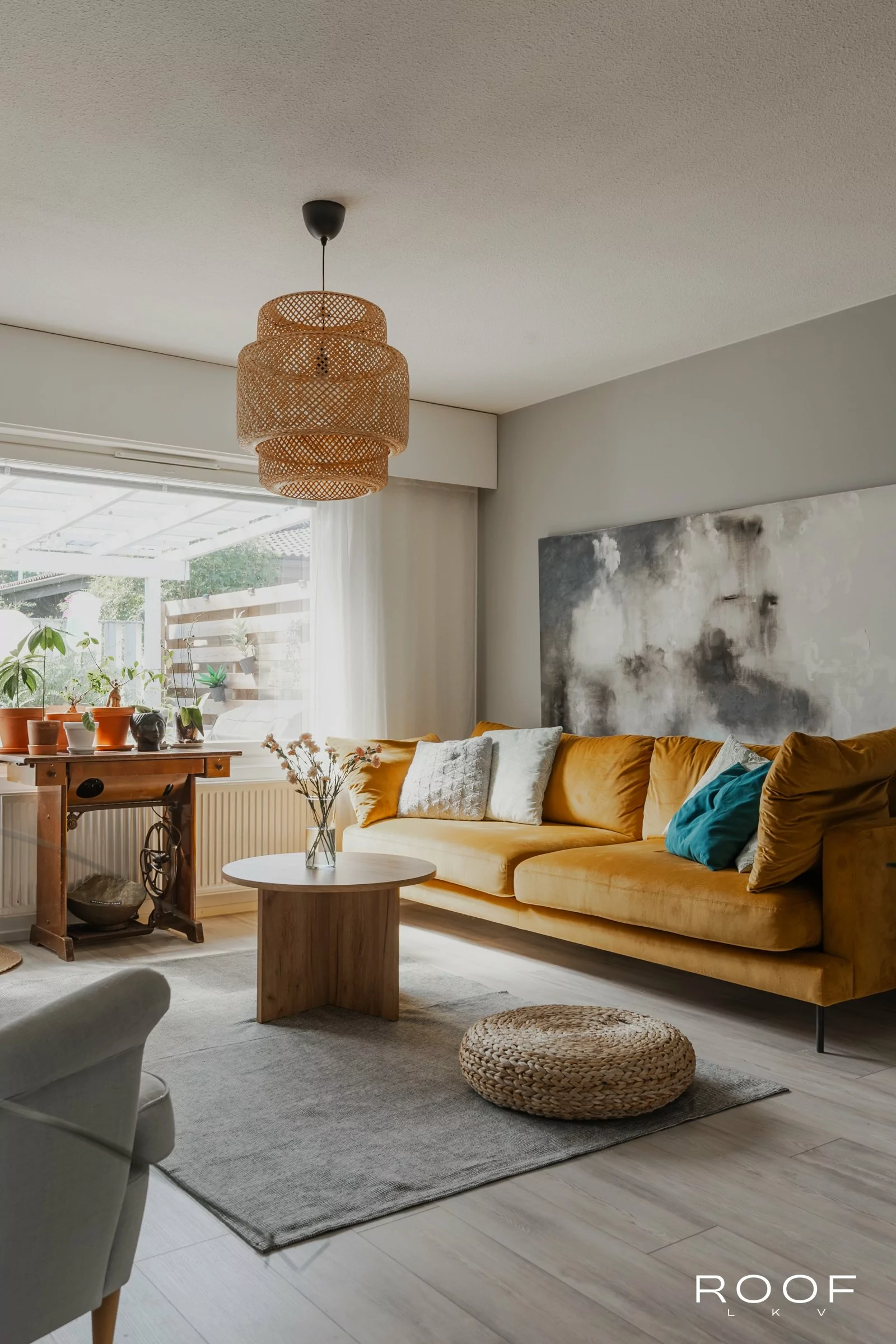 Kodin sydämenä on tilava olohuone, joka kutsuu yhte...