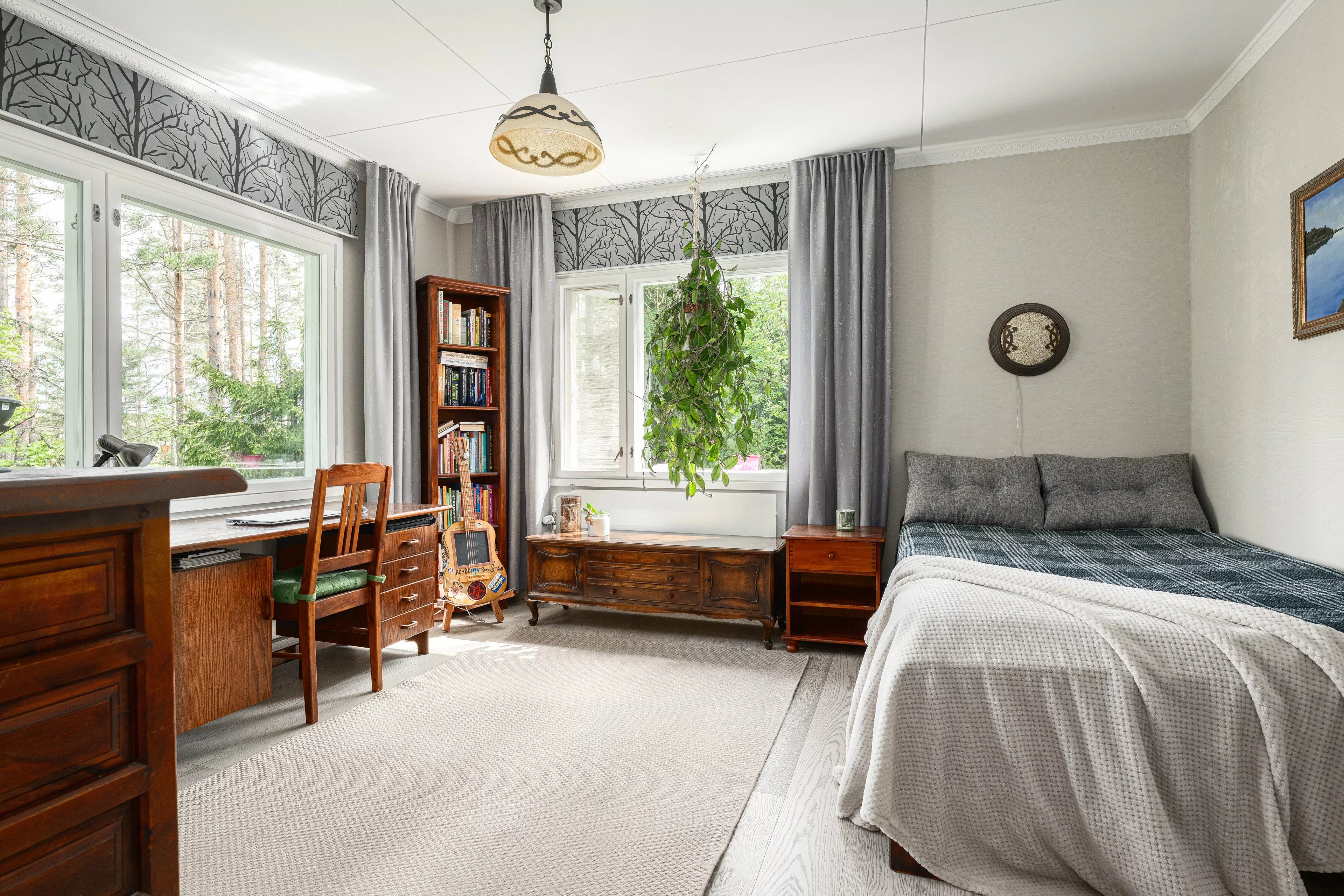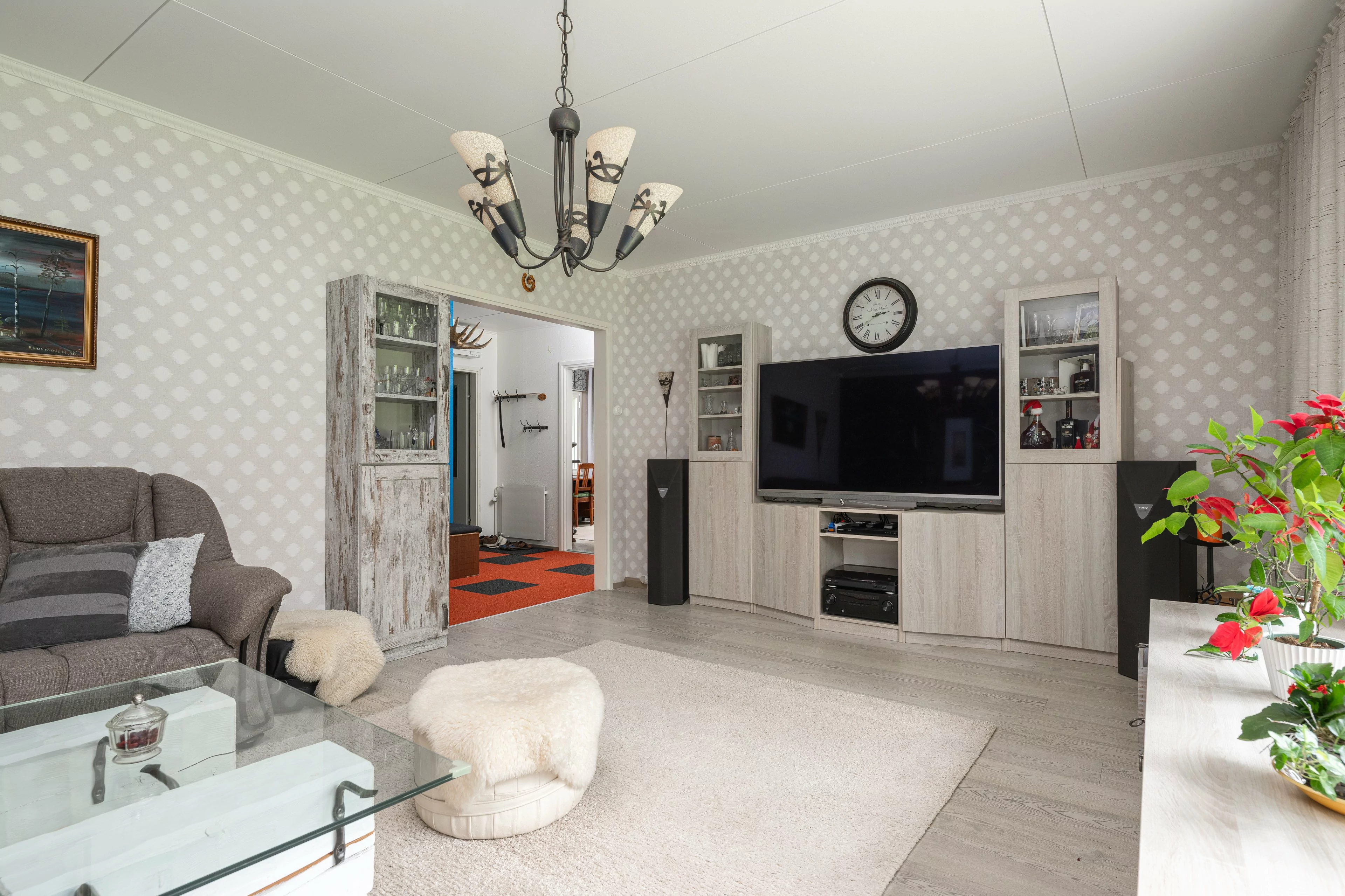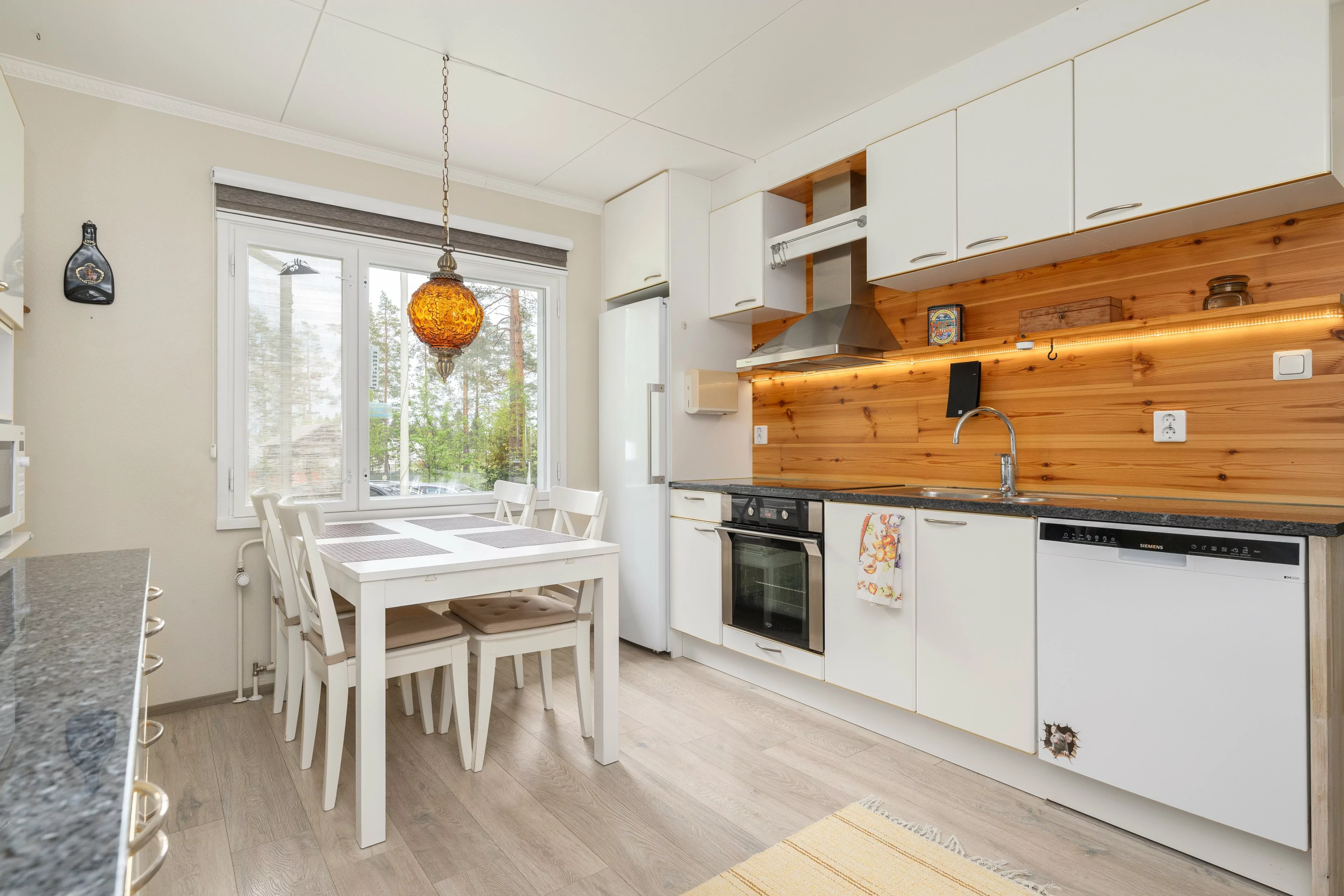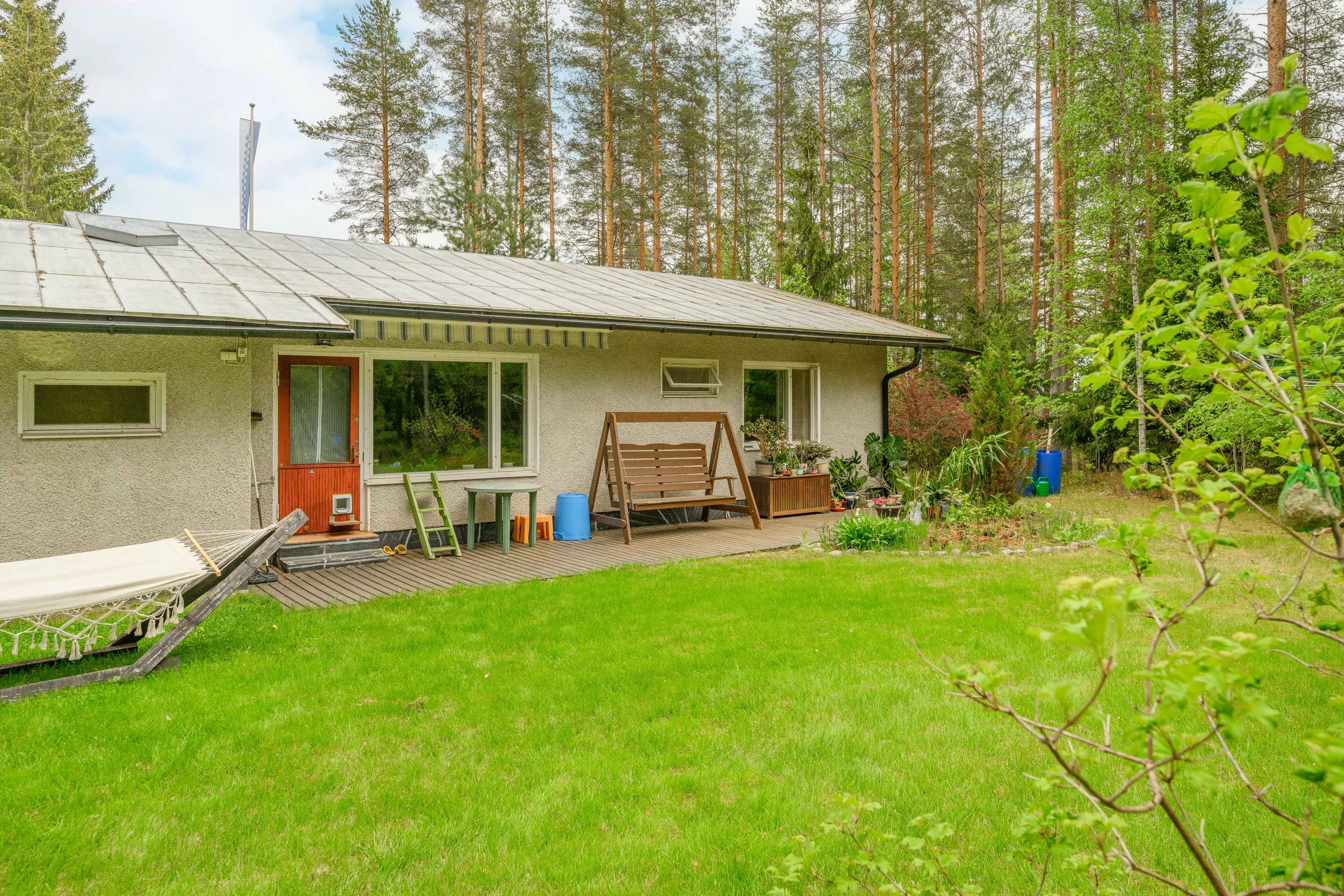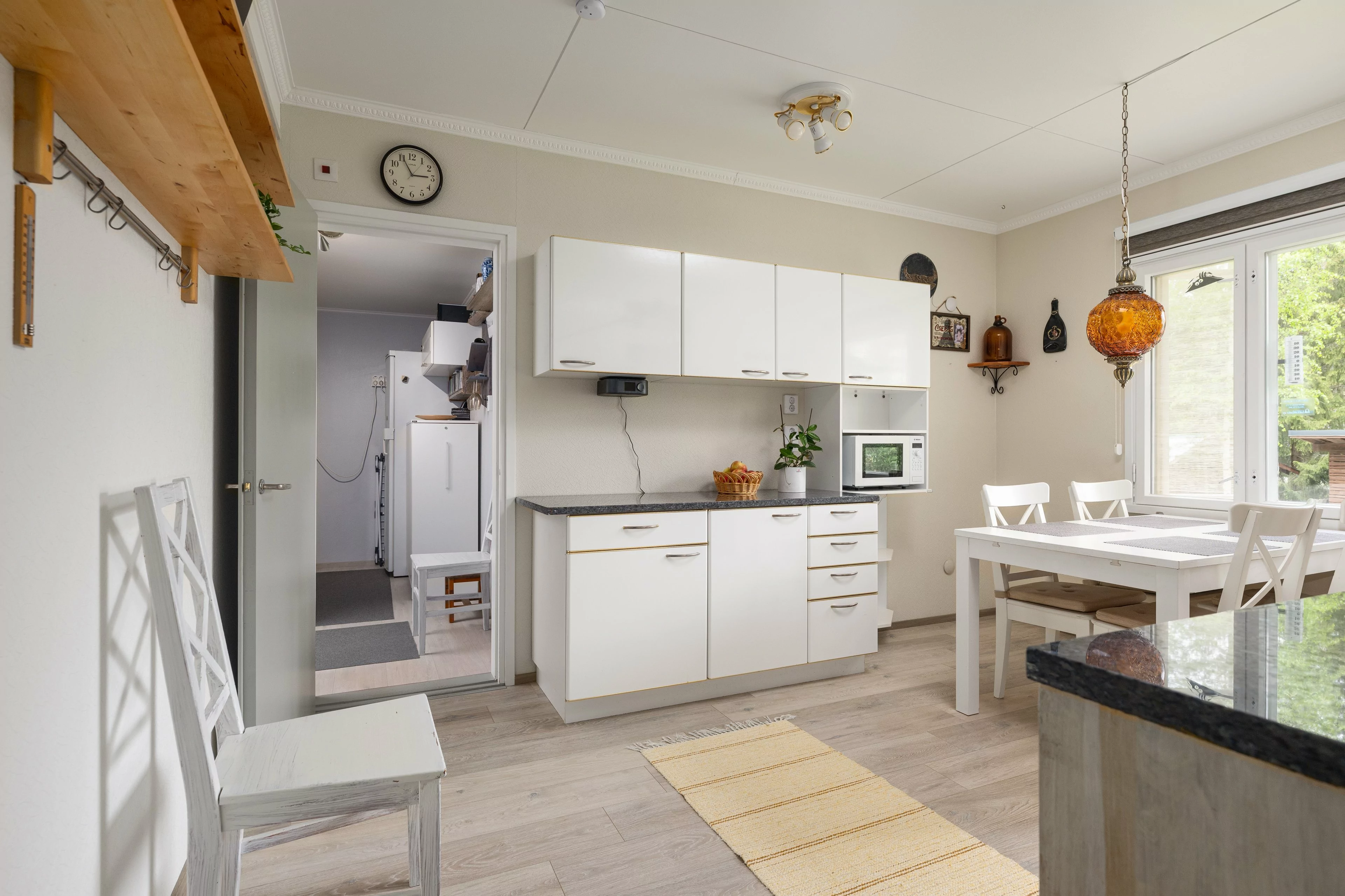Tämän kodin sydämenä toimii valoisa olohuone, josta on käynti suojaisalle, metsään rajautuvalle takapihalle. Erillinen keittiö on päivitetty kodikkaaksi ja haluttaessa keittiö ja olohuone on mahdollista yhdistää väliseinän poistamalla. Talossa on kaksi tilavaa makuuhuonetta, ja säilytystilaa täy...