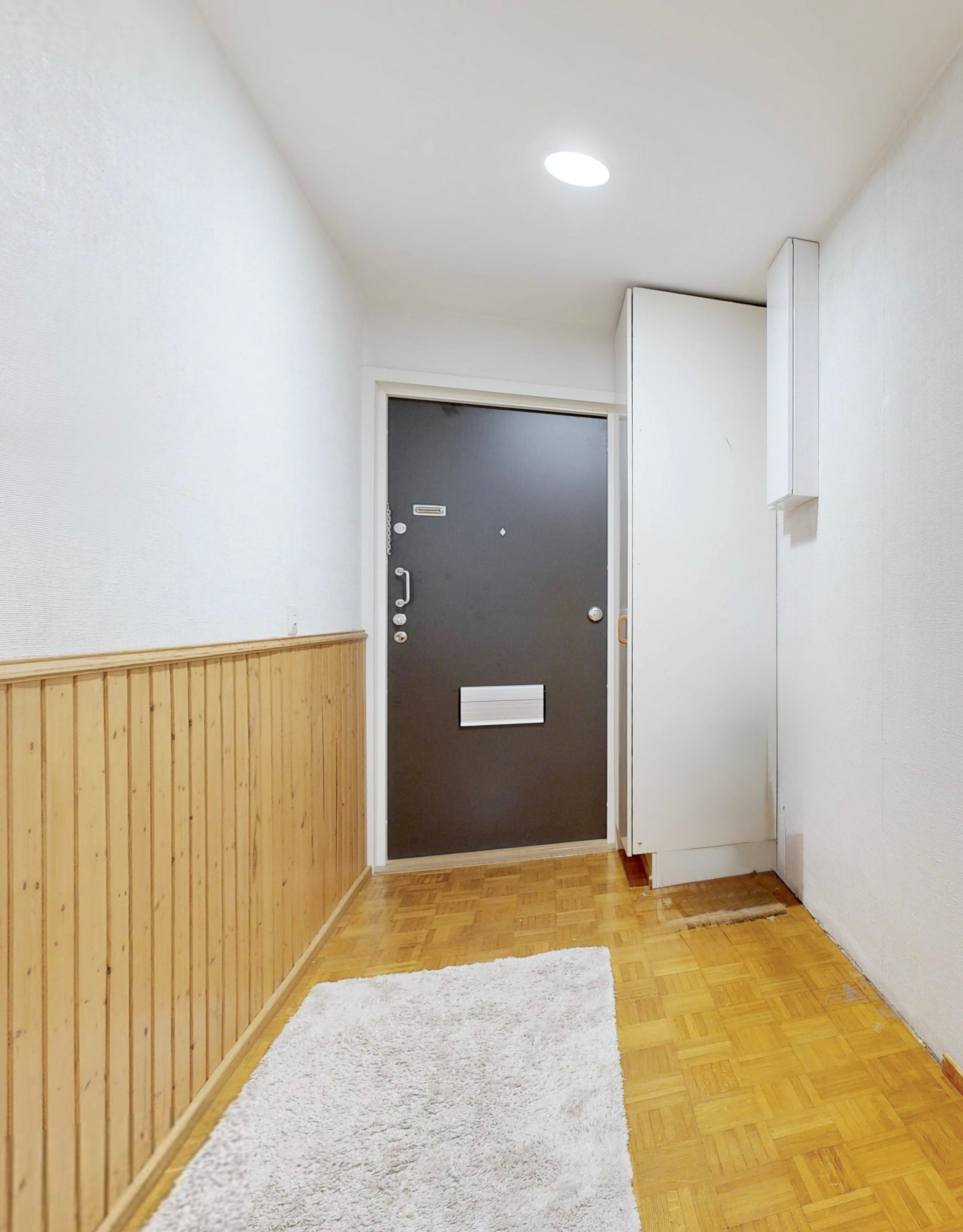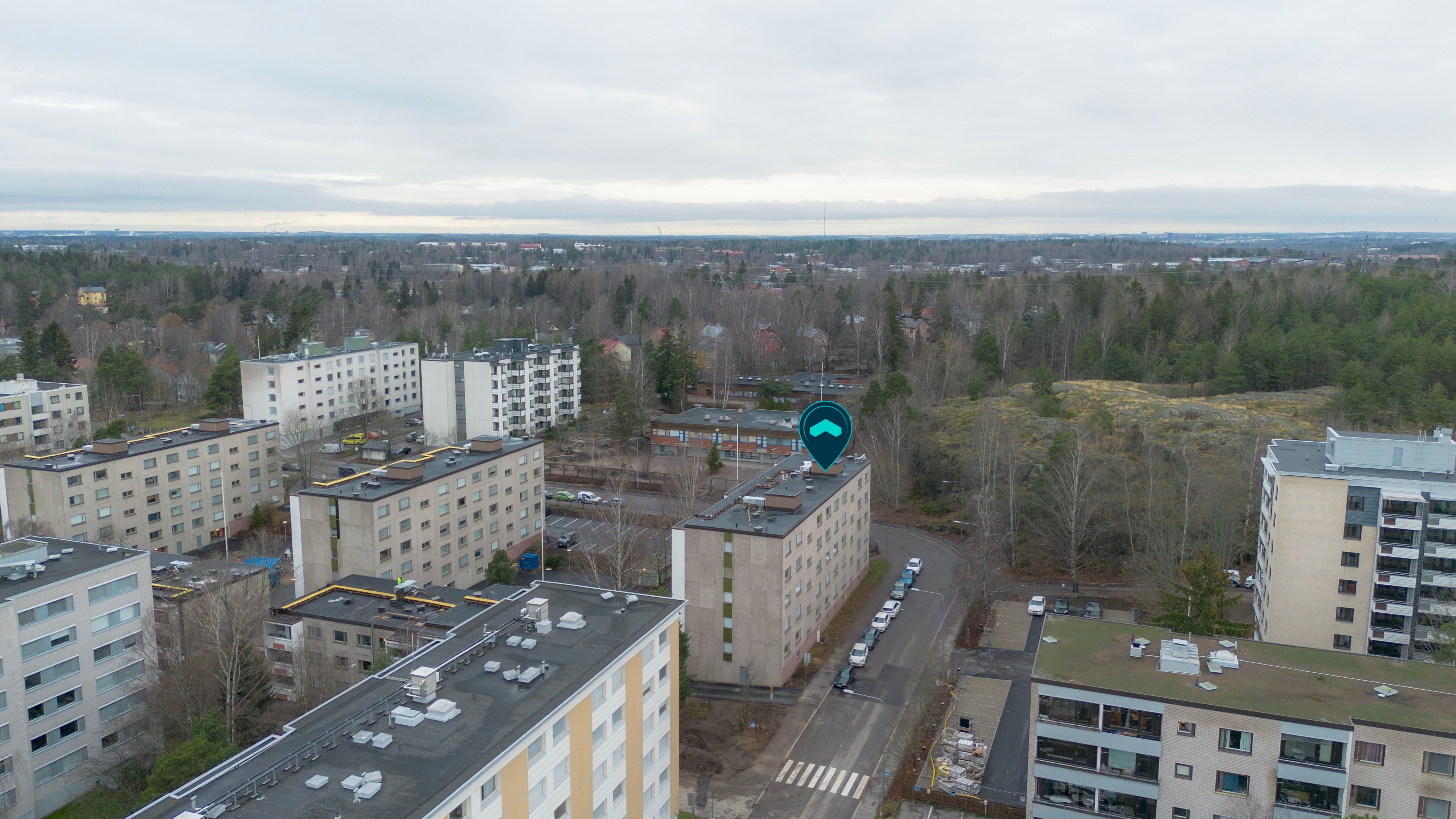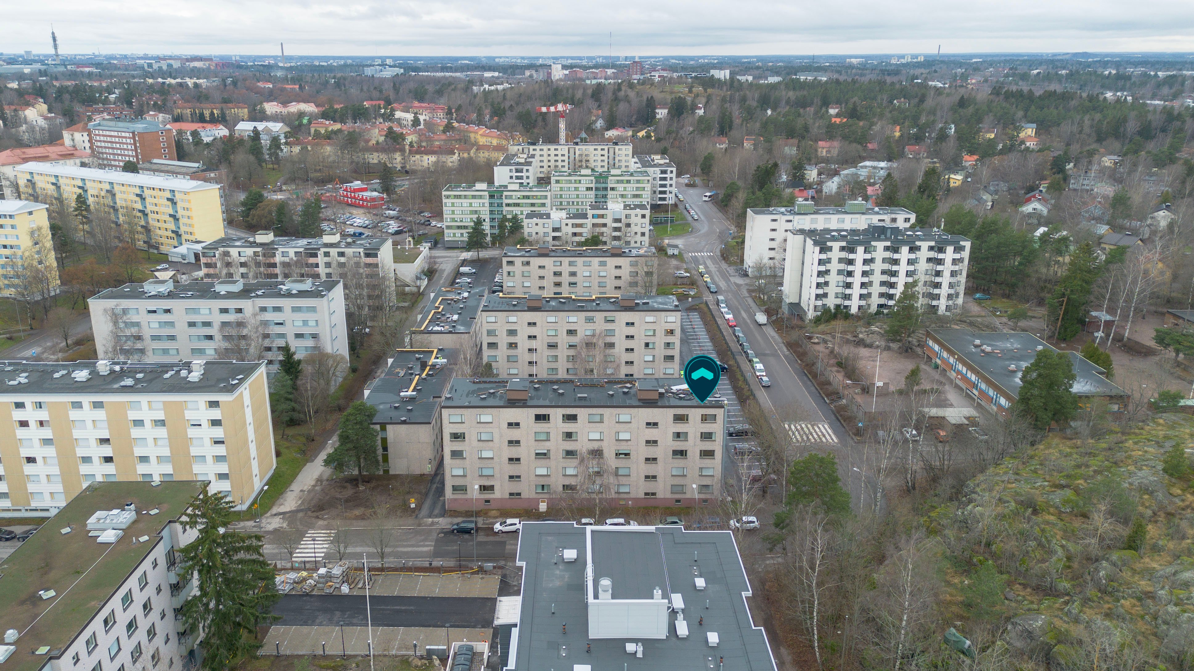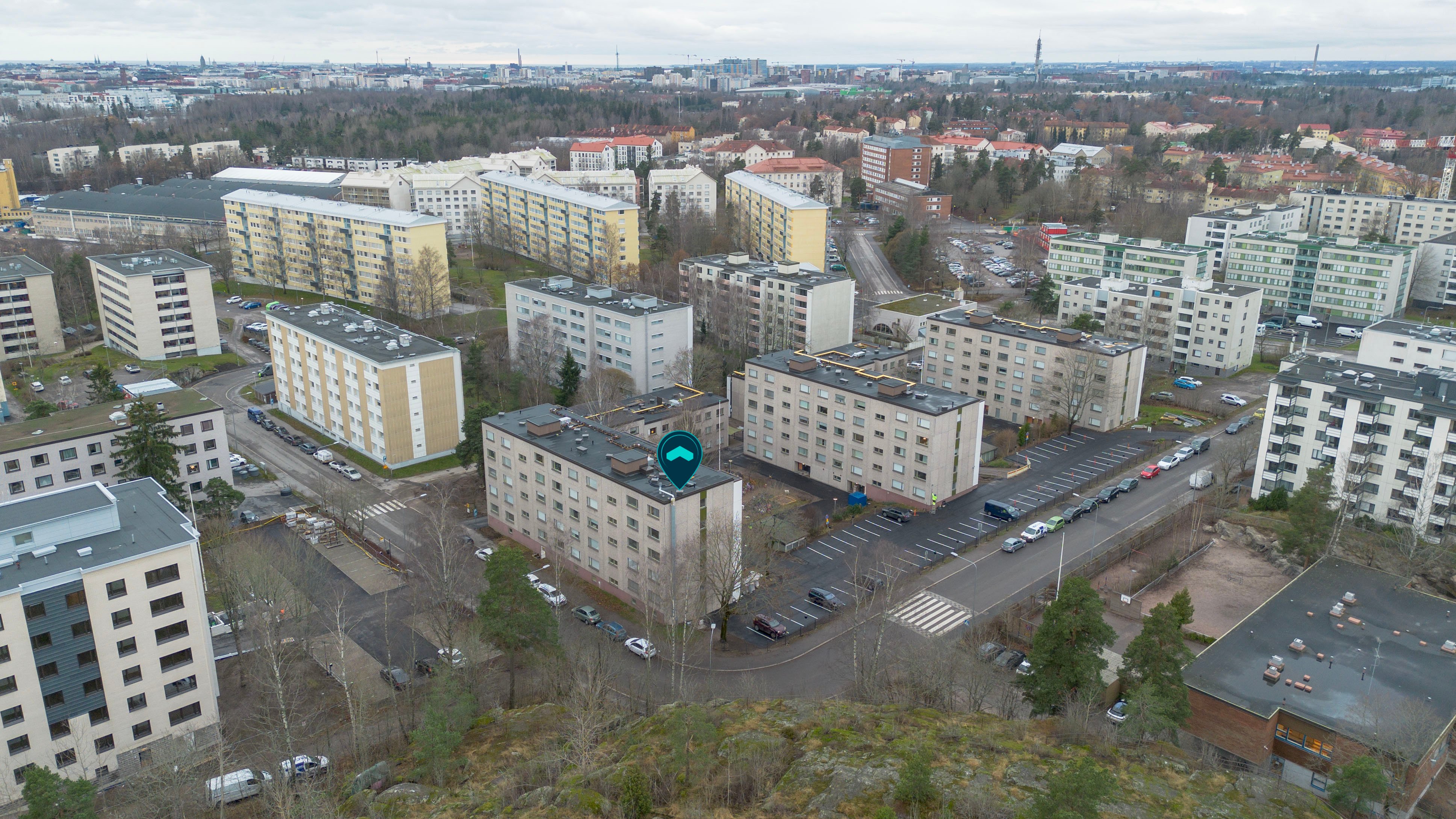 Tämä päätyhuoneisto tarjoaa mainion pohjaratkaisun ja valoisuutta kolmeen suuntaan. Tilava olohuone, minkä yhteydessä lasitettu parveke. Olohuoneen vieressä toinen makuuhuone, jonka vierestä löytyy reilun kokoinen vaatehuone. Pitkästä eteisestä on käynti toiseen makuuhuoneeseen, josta löytyy tilaa ison sängyn lisäksi esimerkiksi työpisteelle. Keittiöstä löytyy runsaasti kaappi- ja laskutilaa. Kylpyhuone on juuri uusittu putkiremontin yhteydessä.