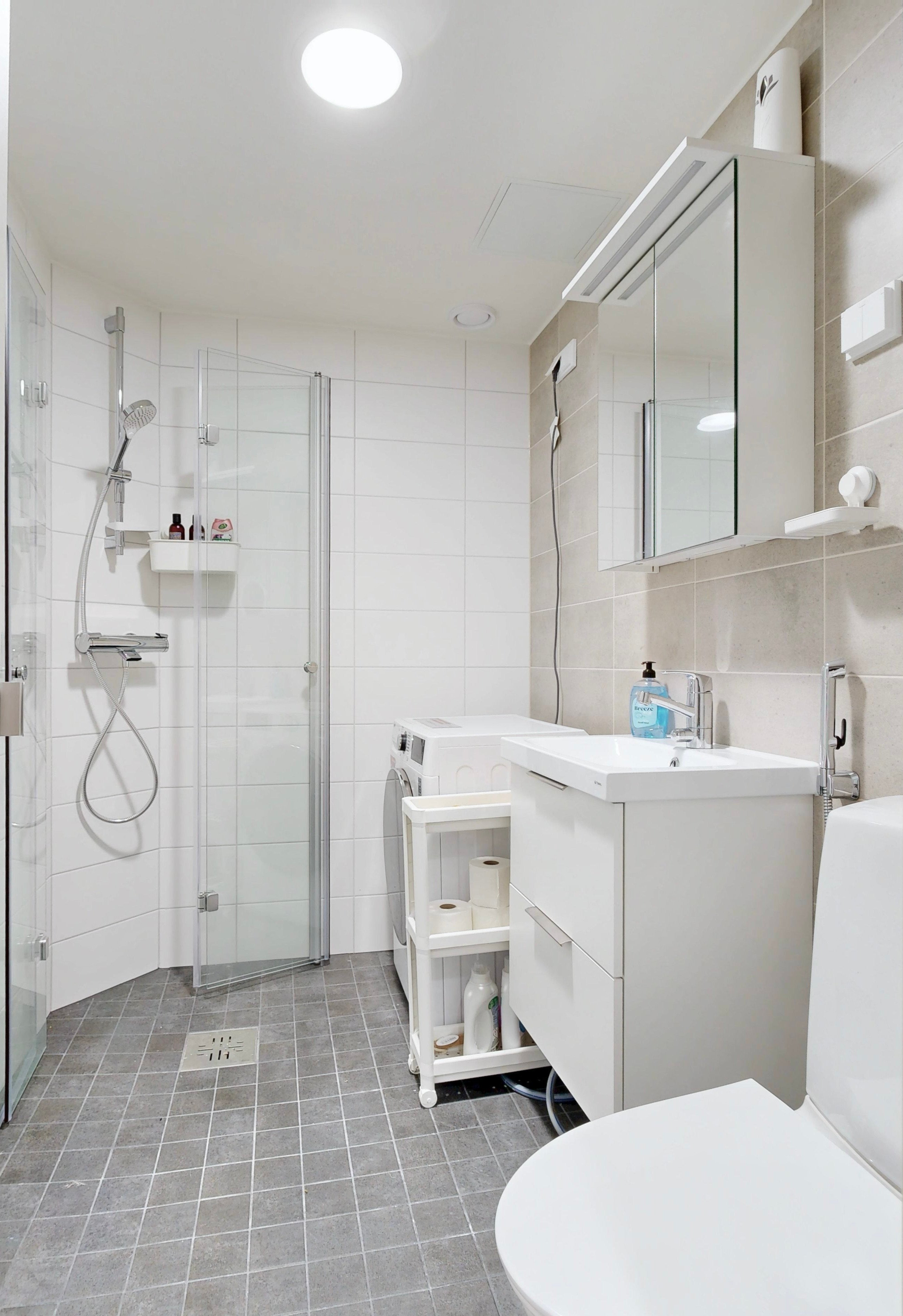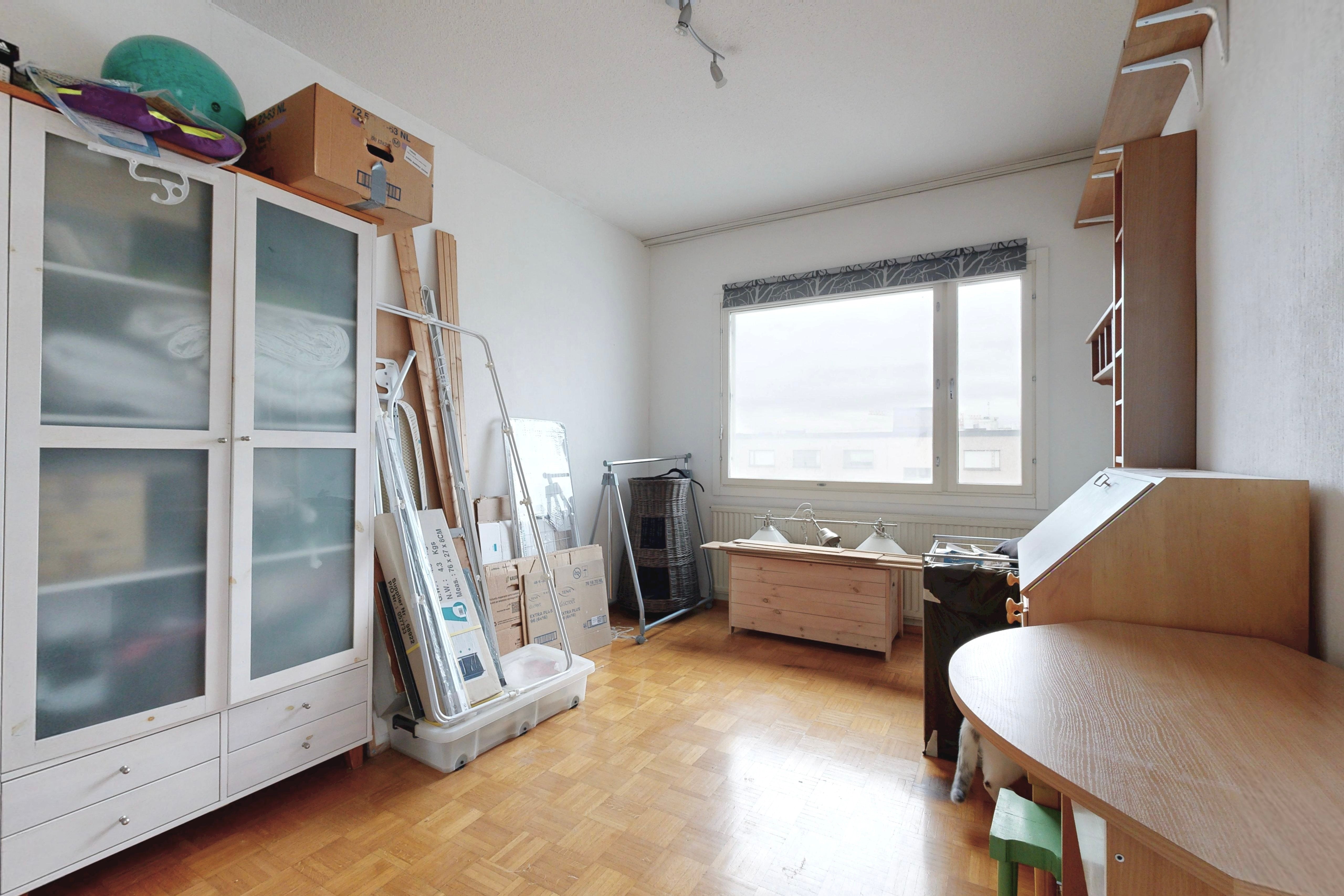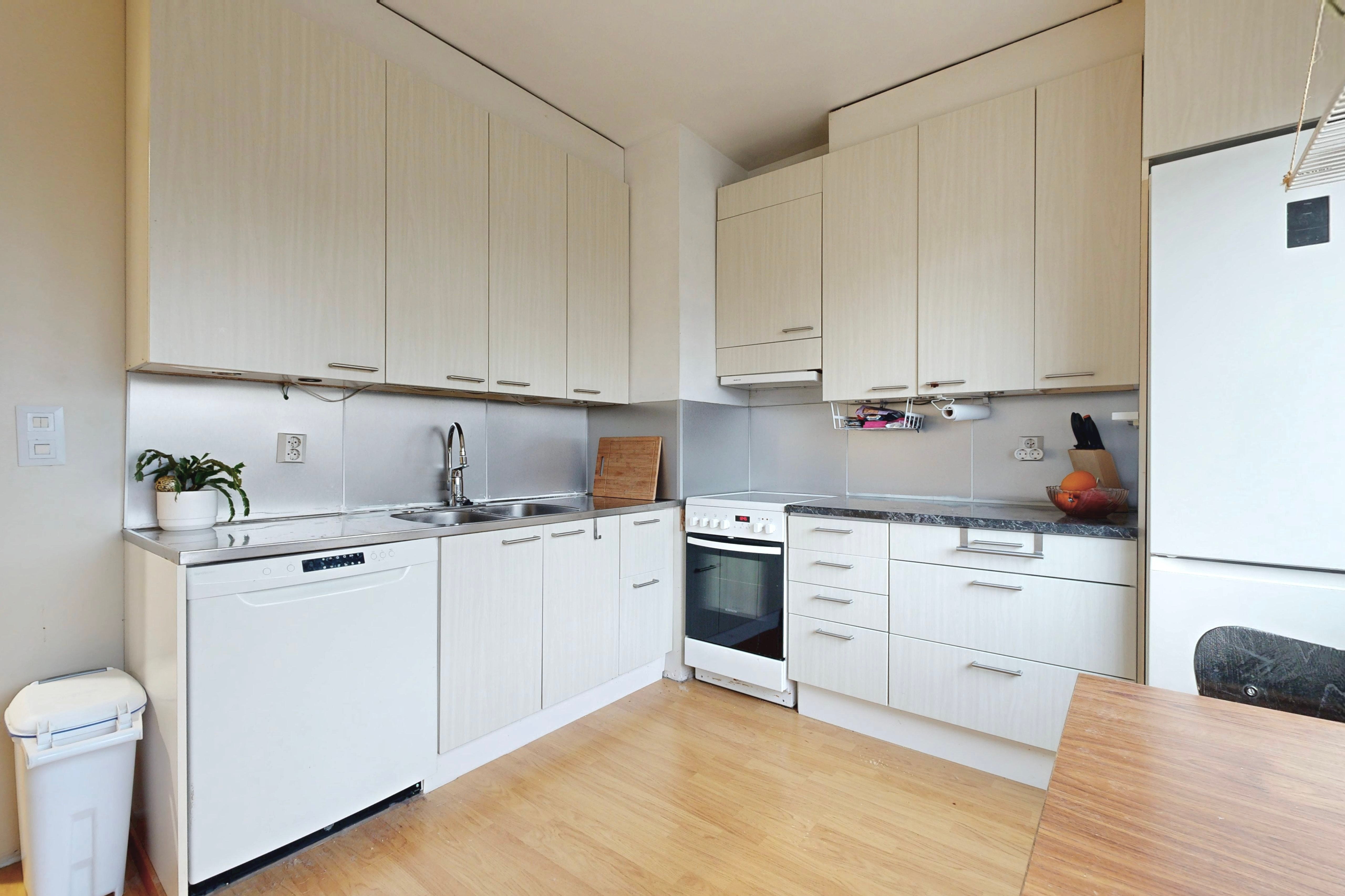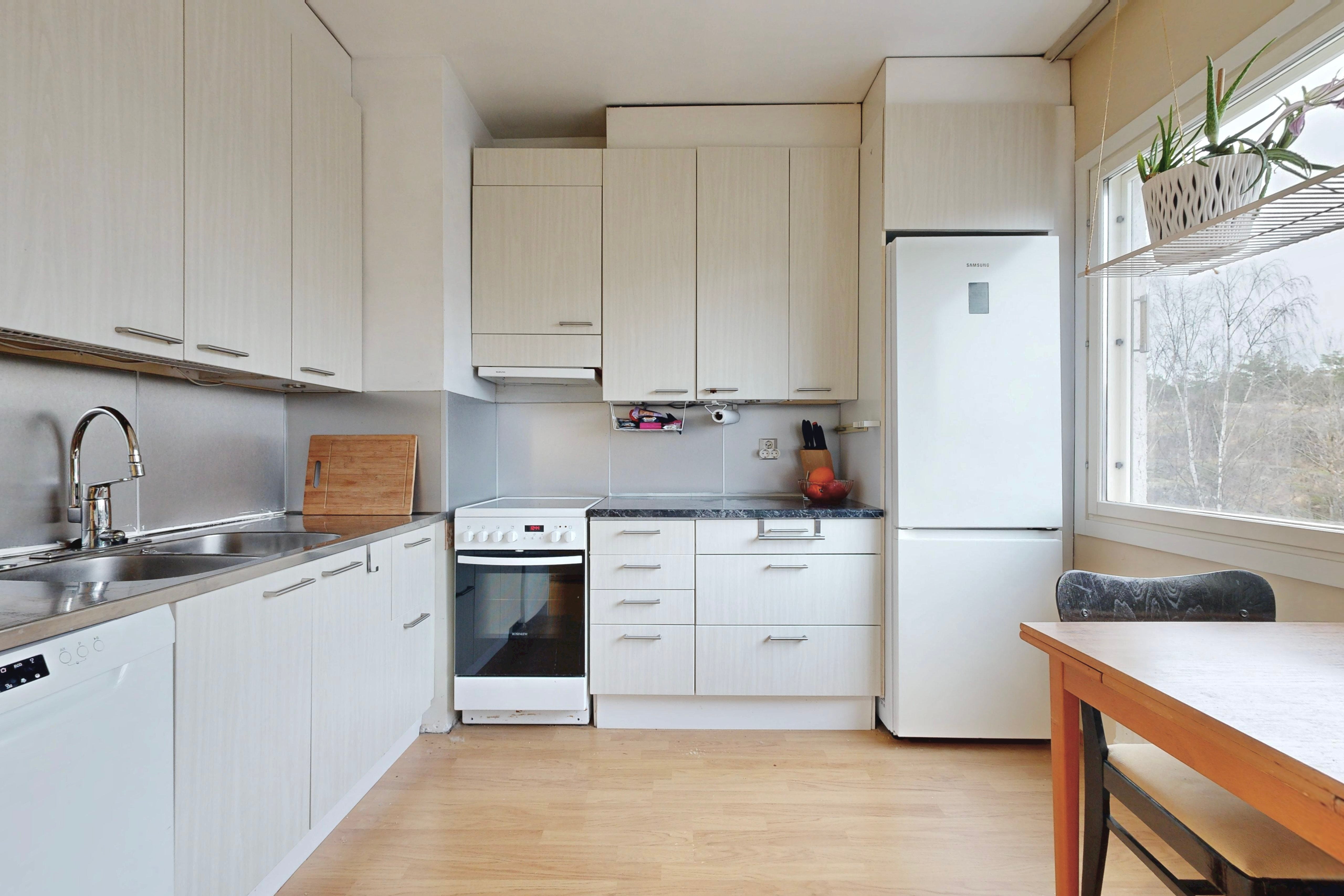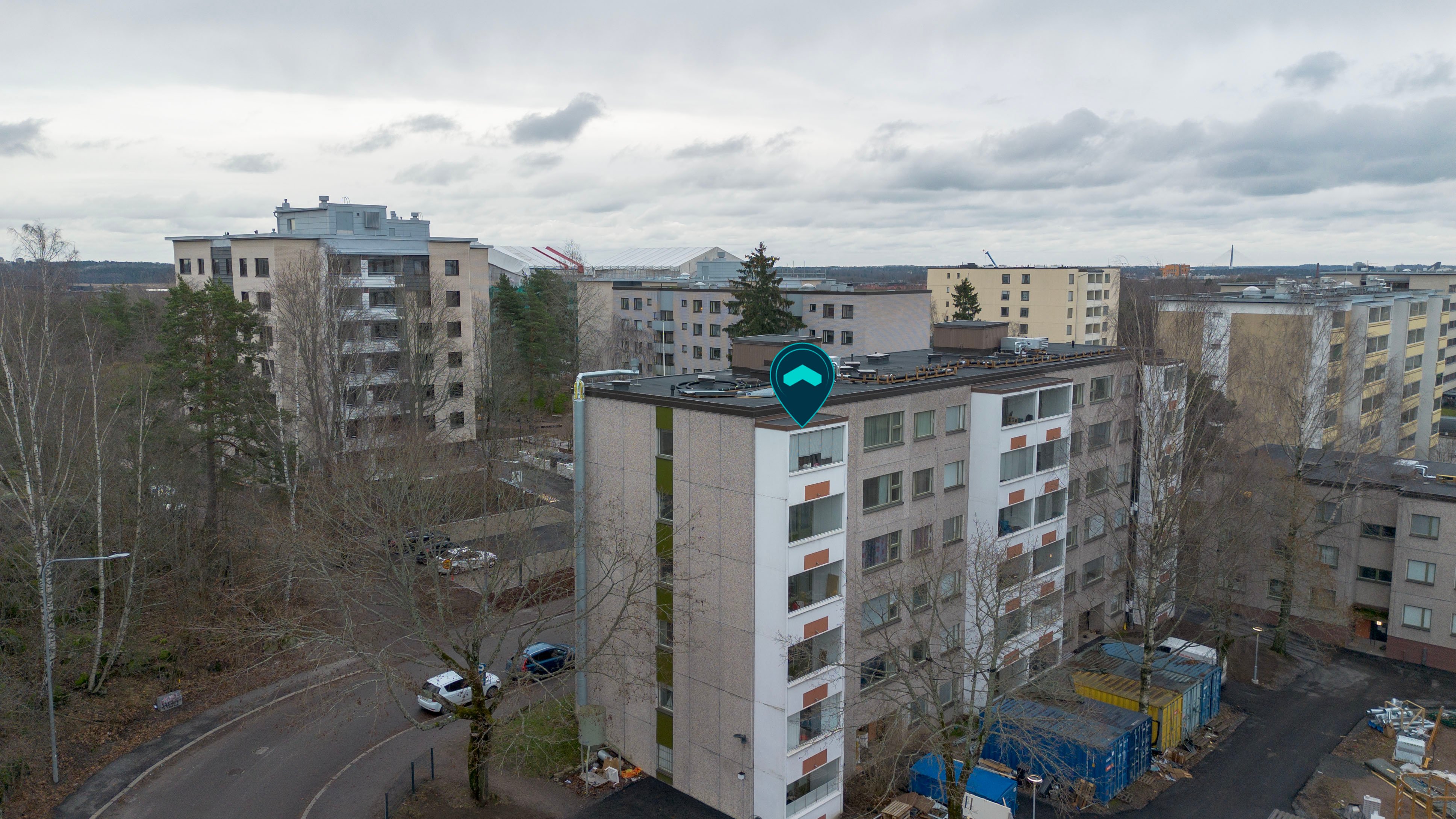 Tämä päätyhuoneisto tarjoaa mainion pohjaratkaisun ja valoisuutta kolmeen suuntaan. Tilava olohuone, minkä yhteydessä lasitettu parveke. Olohuoneen vieressä toinen makuuhuone, jonka vierestä löytyy reilun kokoinen vaatehuone. Pitkästä eteisestä on käynti toiseen makuuhuoneeseen, josta löytyy tilaa ison sängyn lisäksi esimerkiksi työpisteelle. Keittiöstä löytyy runsaasti kaappi- ja laskutilaa. Kylpyhuone on juuri uusittu putkiremontin yhteydessä.