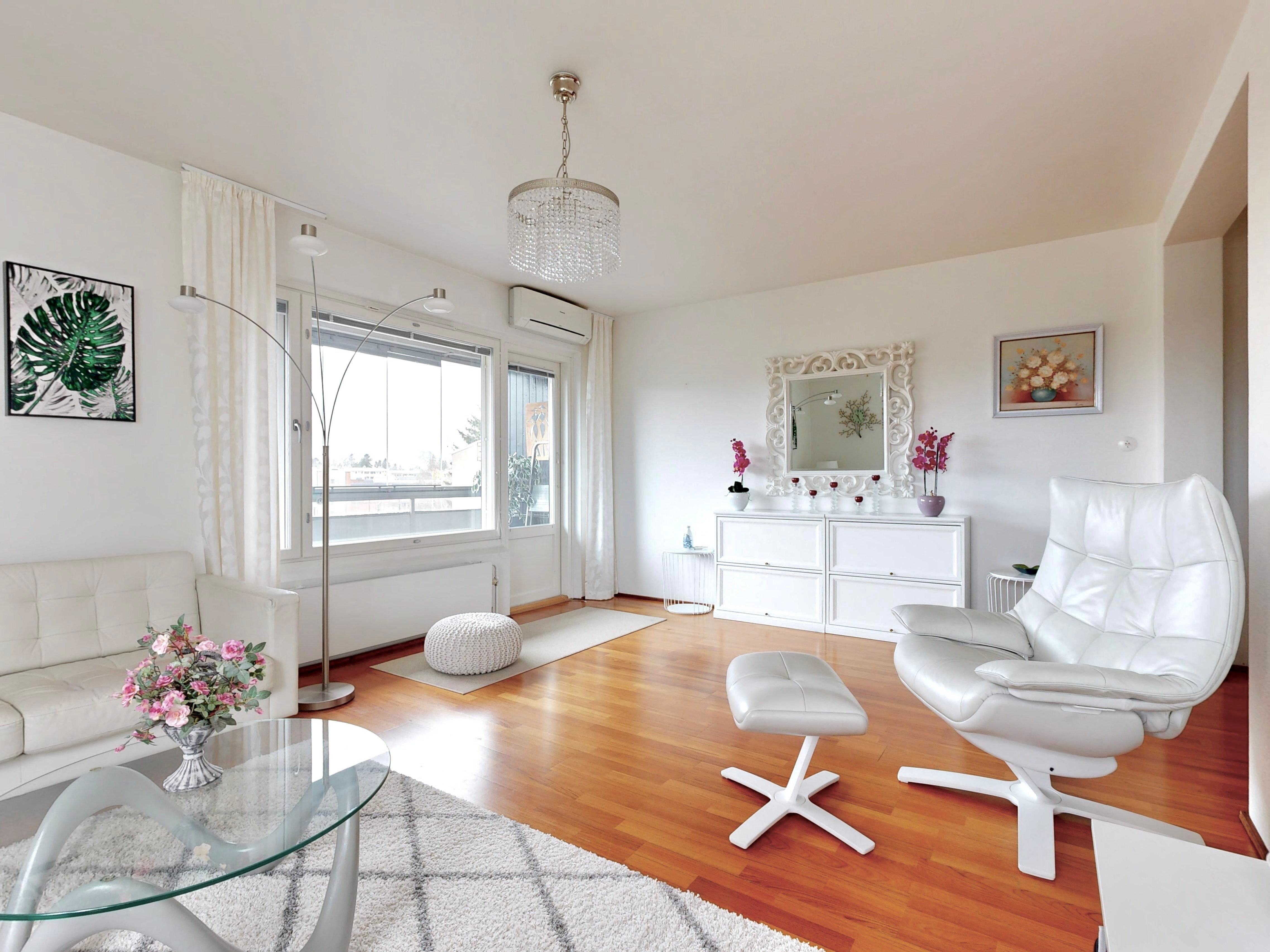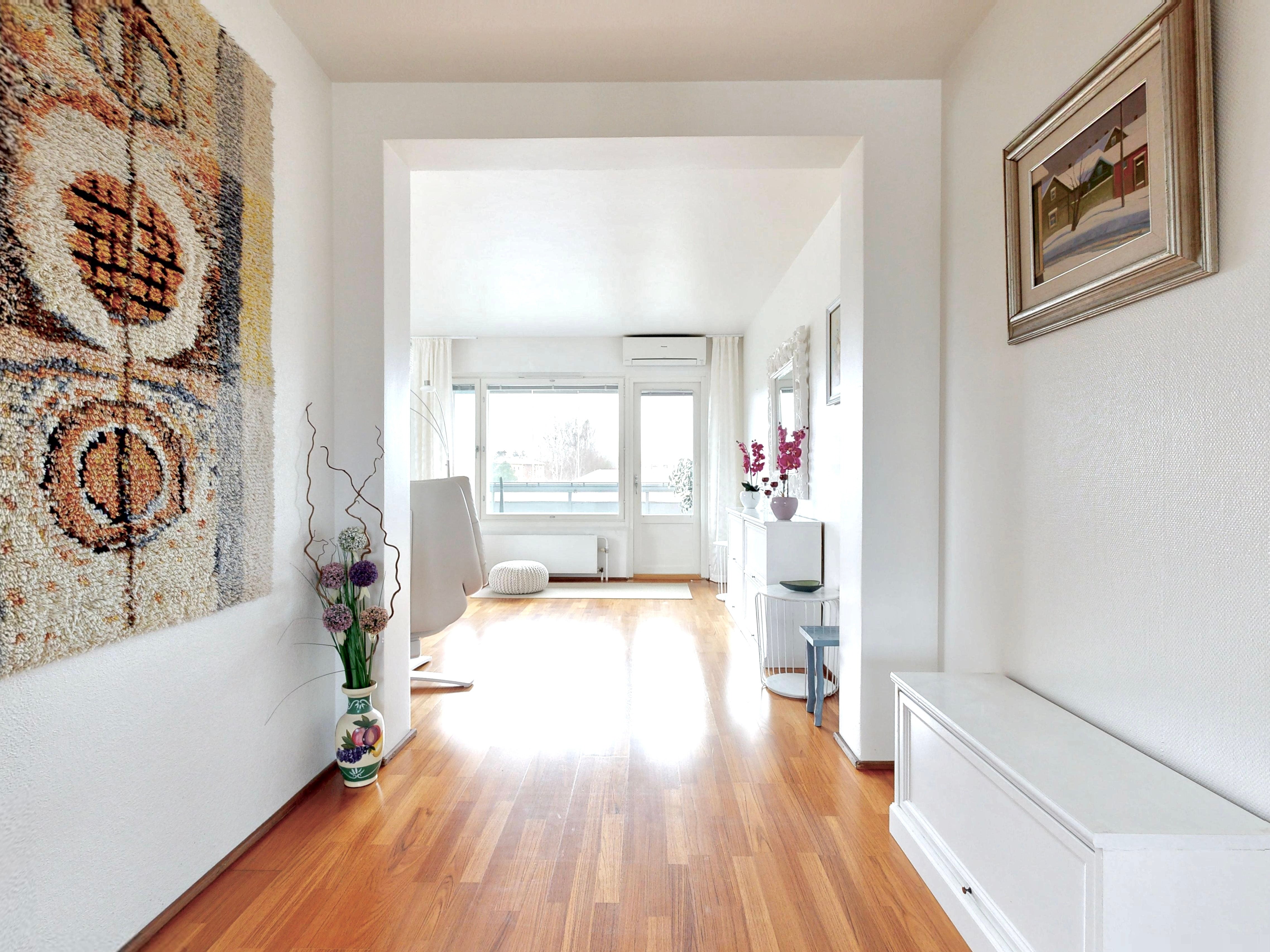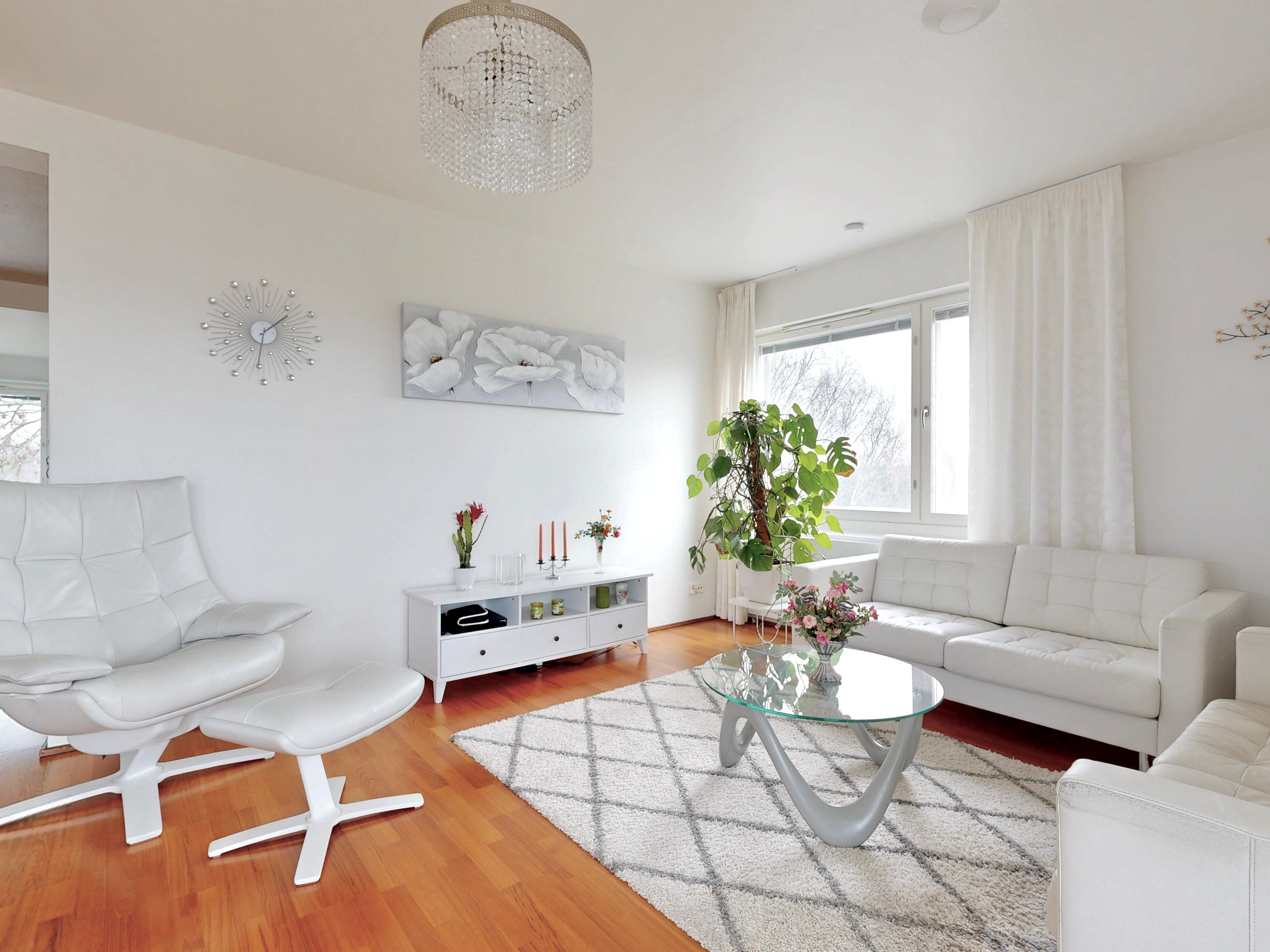 Tässä kodissa hurmaa kolmeen suuntaan avautuvat ikkunat, jotka tuovat valoa asuntoon. Kodin keskiössä ovat avarat oleskelutilat, jossa on mukava viettää yhteistä aikaa niin perheen kuin vieraiden kesken. Olohuoneesta käynti lasitetulle parvekkeelle. Erillinen keittiö, jossa alkuperäiset