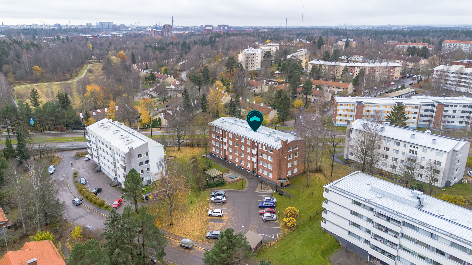 Hyvä ja rauhaisa sijainti Maunulan pientaloalueen kupeessa. Palvelut: S-Market, kirjasto sekä terveysasema löytyvät kivenheiton päästä. Vierestä kulkee useampi bussilinja ja pikaraitiolinja Raide-Jokeri. Käpylän juna-asema nopeasti saavutettavissa. Keskuspuisto sekä Pirkkolan liikuntapuisto löytyvät läheltä ja tarjoavat hyvät ulkoilu-ja liikuntamahdollisuudet.