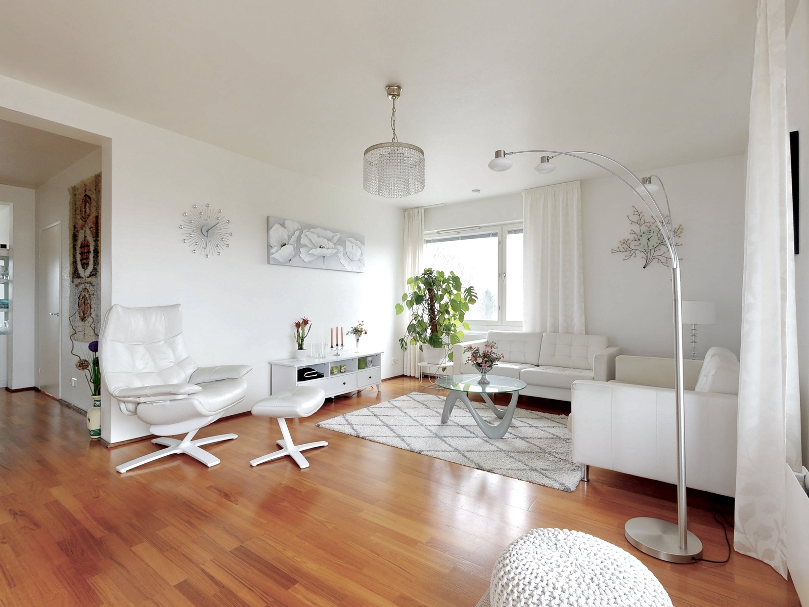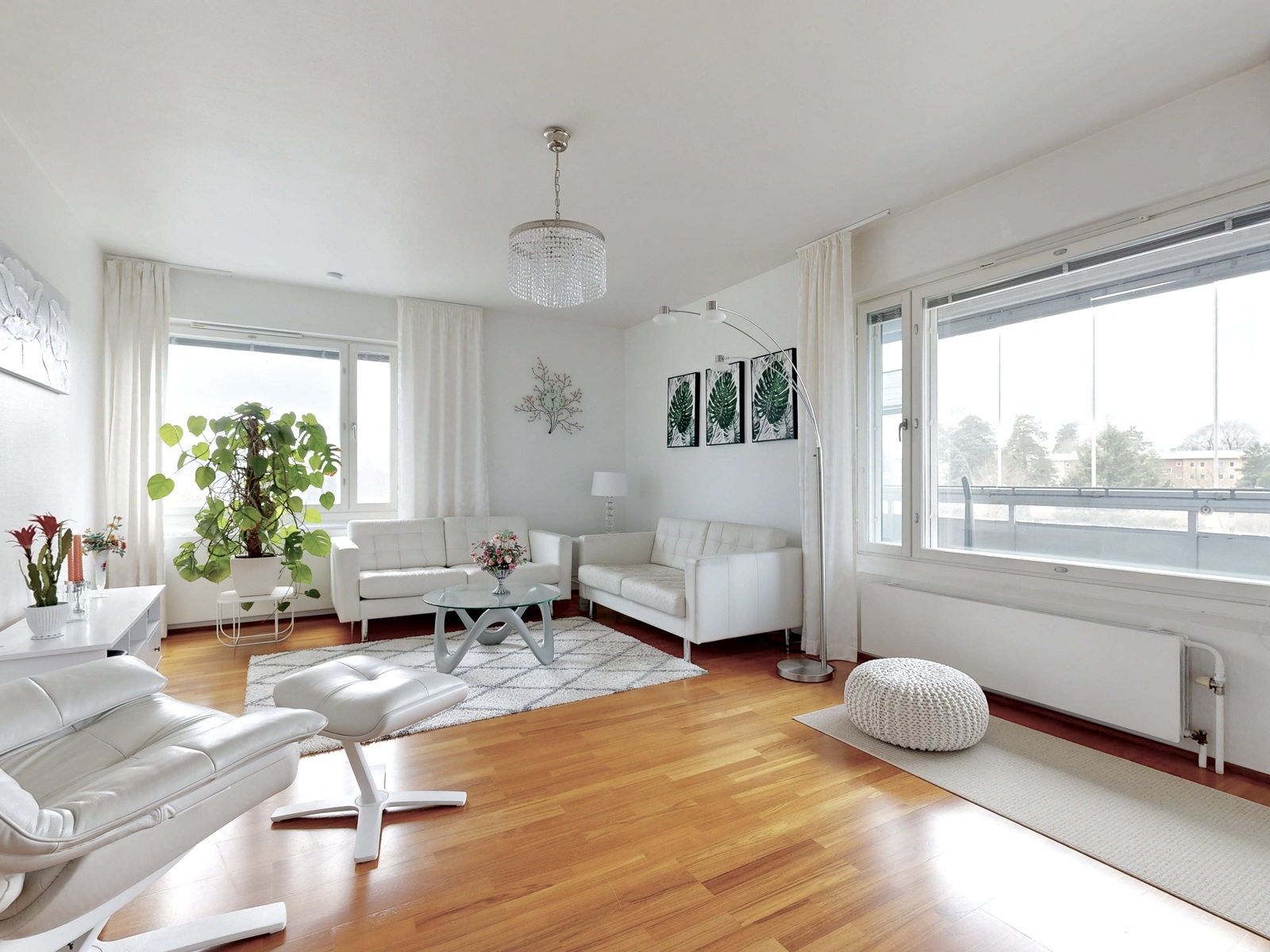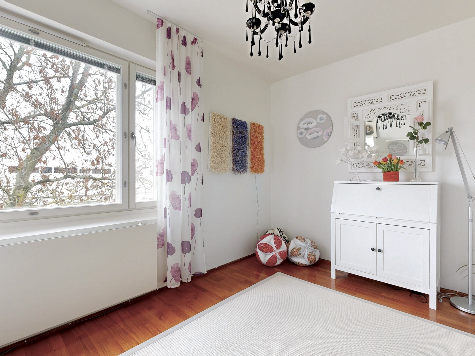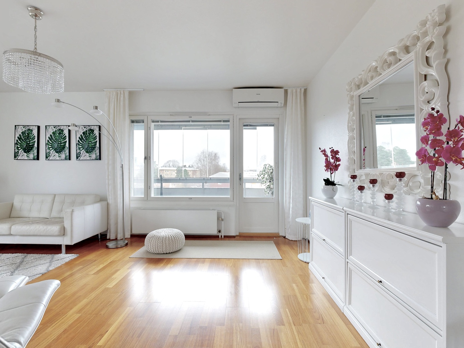 Tässä kodissa hurmaa kolmeen suuntaan avautuvat ikkunat, jotka tuovat valoa asuntoon. Kodin keskiössä ovat avarat oleskelutilat, jossa on mukava viettää yhteistä aikaa niin perheen kuin vieraiden kesken. Olohuoneesta käynti lasitetulle parvekkeelle. Erillinen keittiö, jossa alkuperäiset